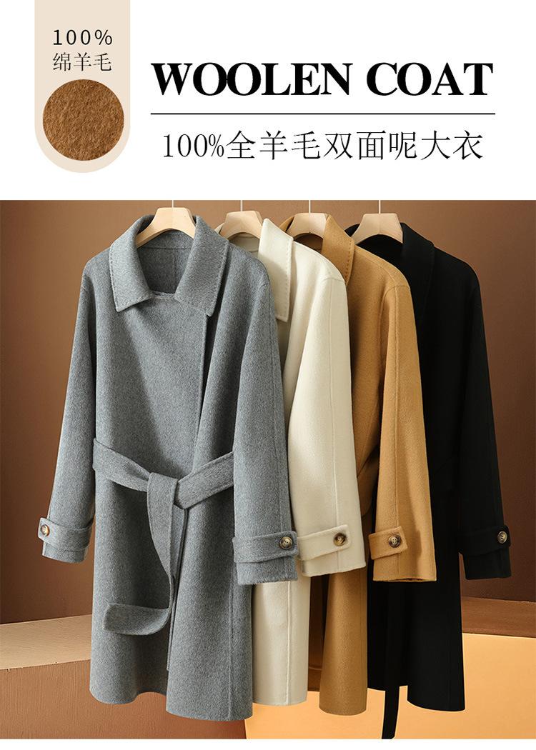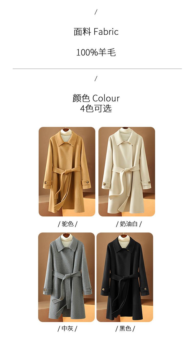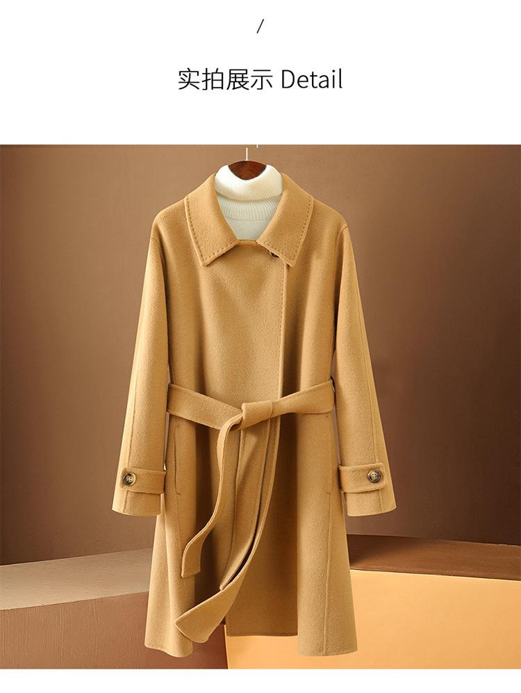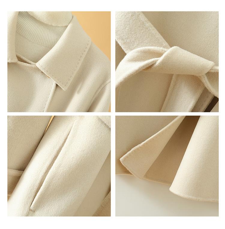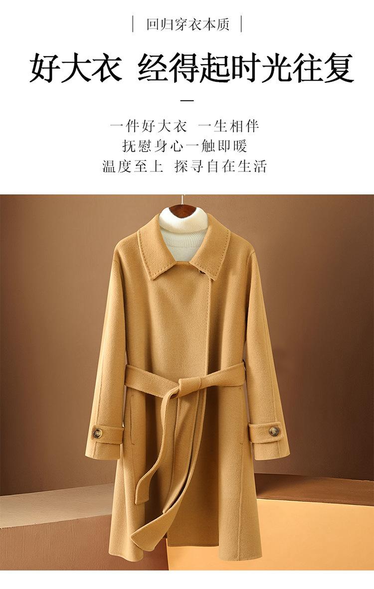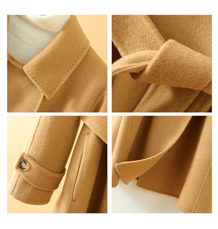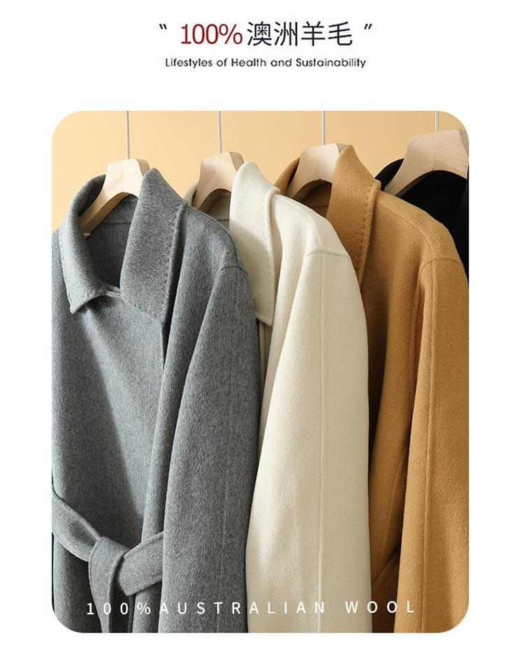Abrigo de lana de doble cara para mujer, otoño e invierno, nuevo, elegante, estilo coreano, sencillo, largo, 2024