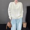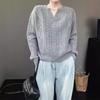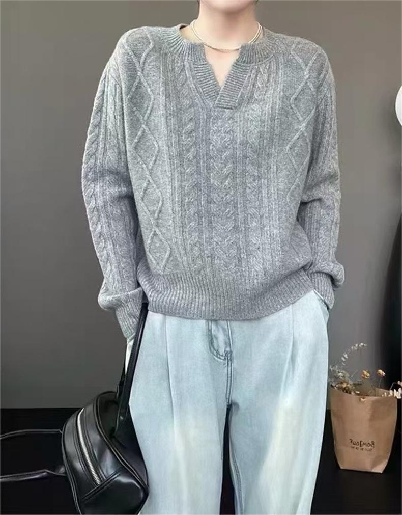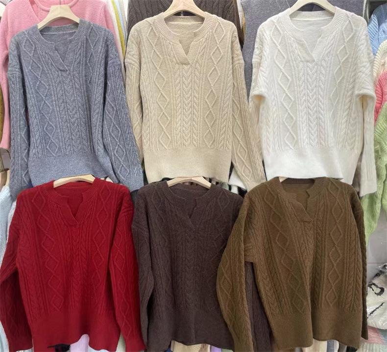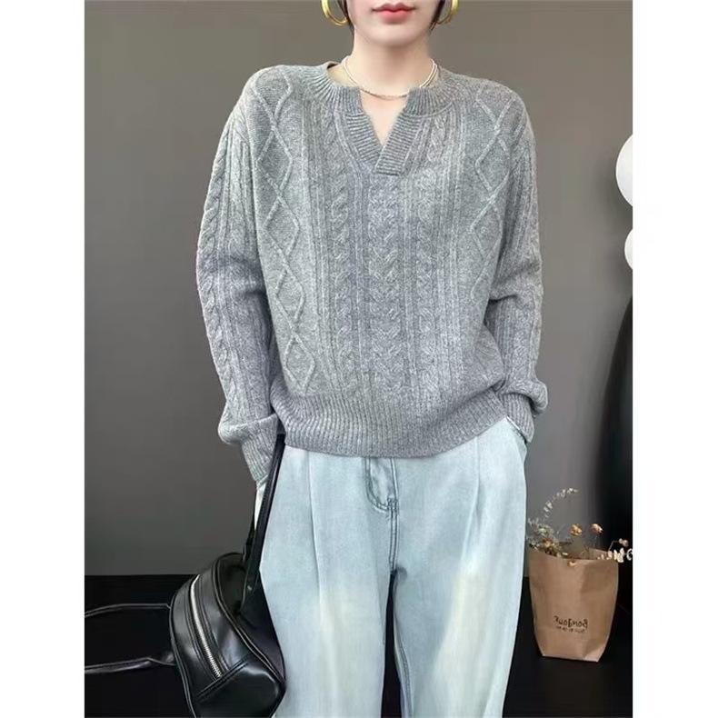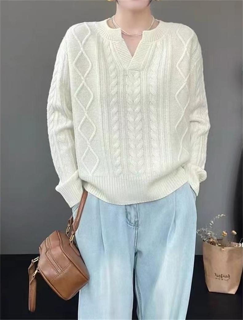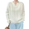 Otoño e Invierno Nuevo Suéter Tejido Transfronterizo Europeo y Americano para Mujer Trenzado Cuello en V Pequeño Suelto Casual Top de Mujer