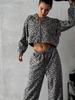 Terno de moletom com capuz e zíper com estampa de leopardo estilo europeu e americano, feminino, de alta qualidade, cintura baixa, solto, casual, calças largas