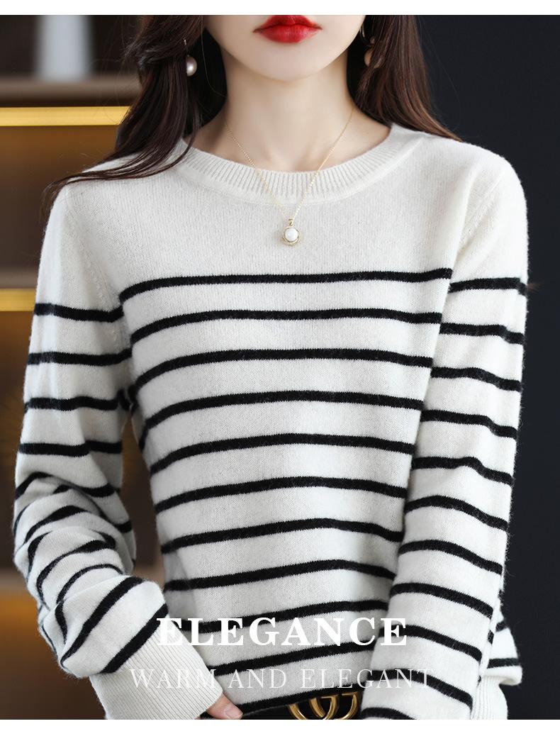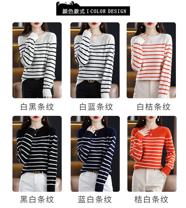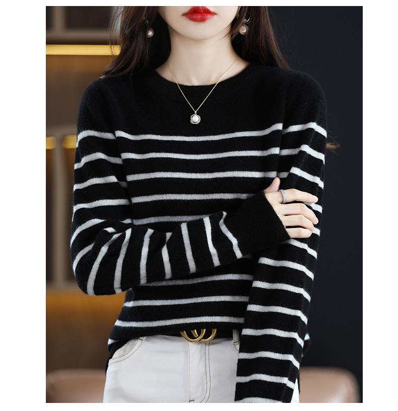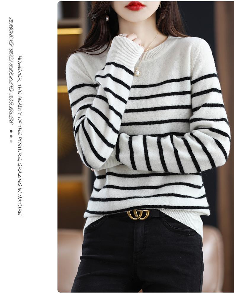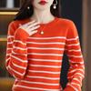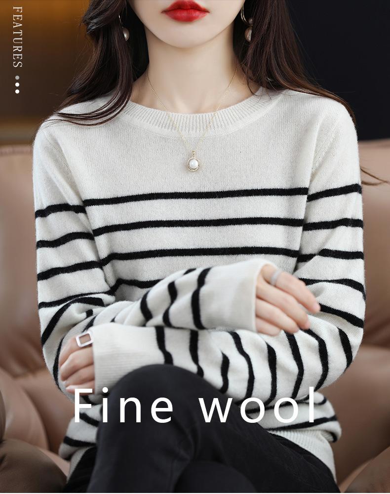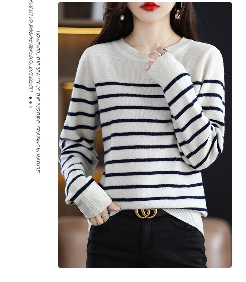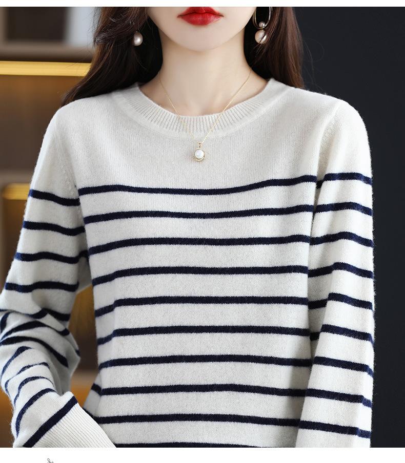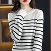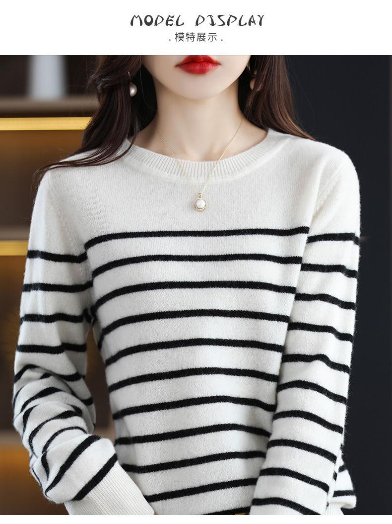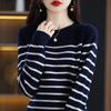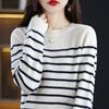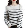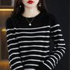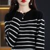 Suéter de mujer, camisa básica de punto, novedad de otoño e invierno de 2024, top holgado de manga larga a rayas coreanas para mujer