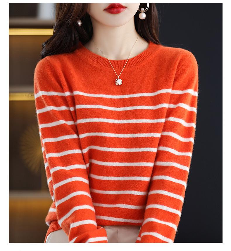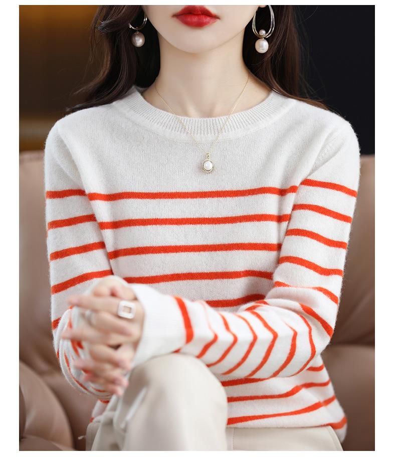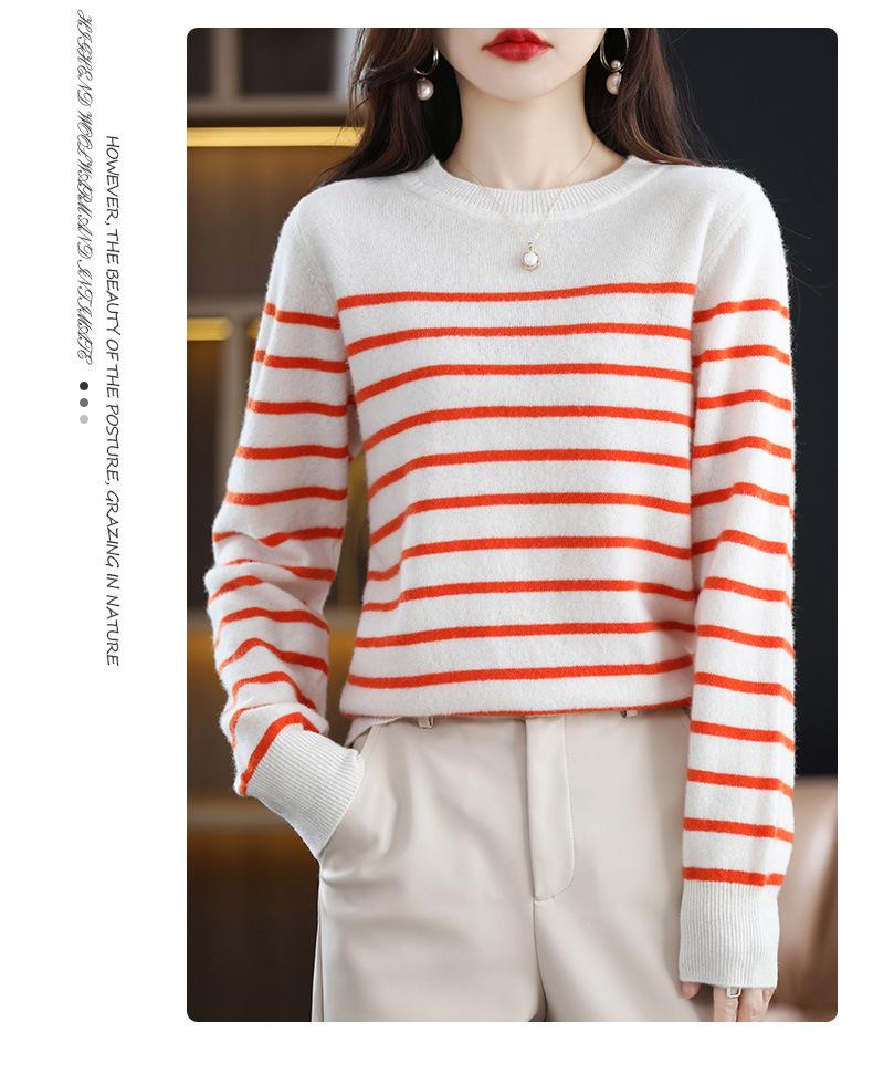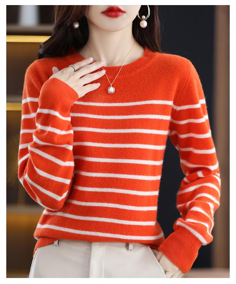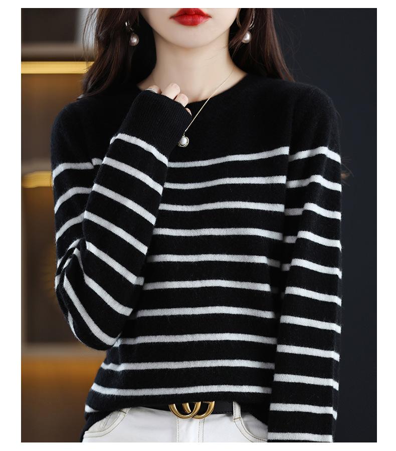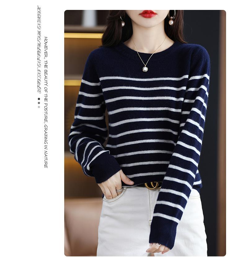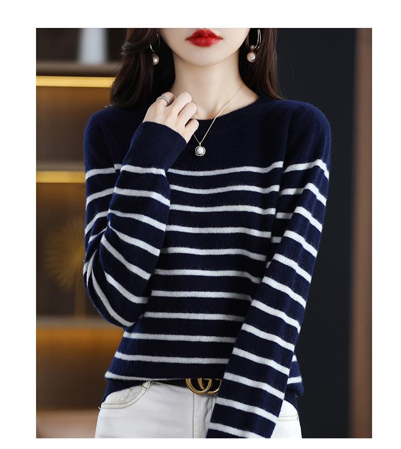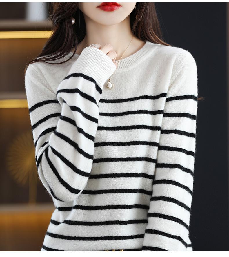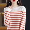 Suéter de mujer, camisa básica de punto, novedad de otoño e invierno de 2024, top holgado de manga larga a rayas coreanas para mujer