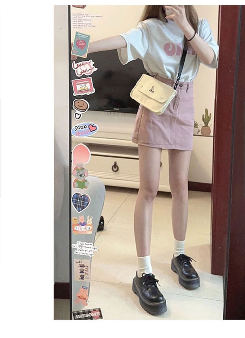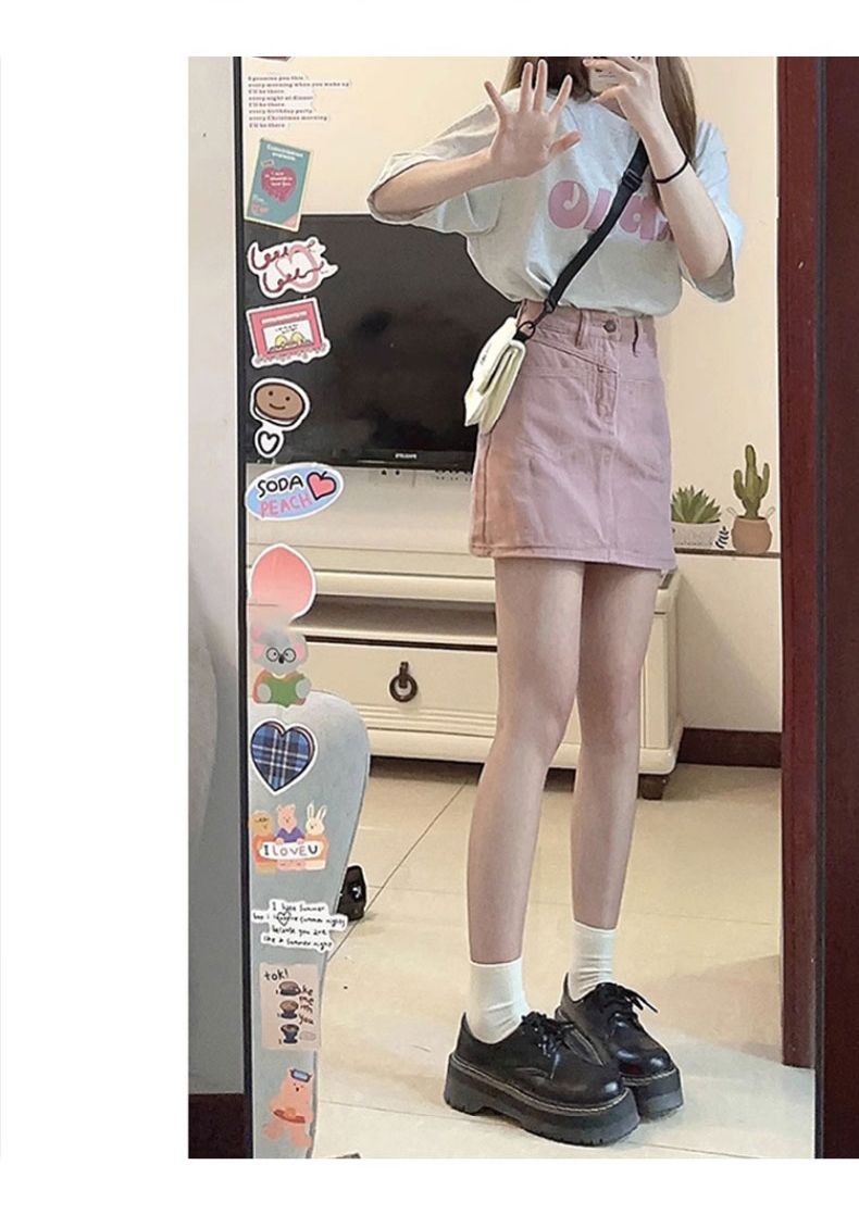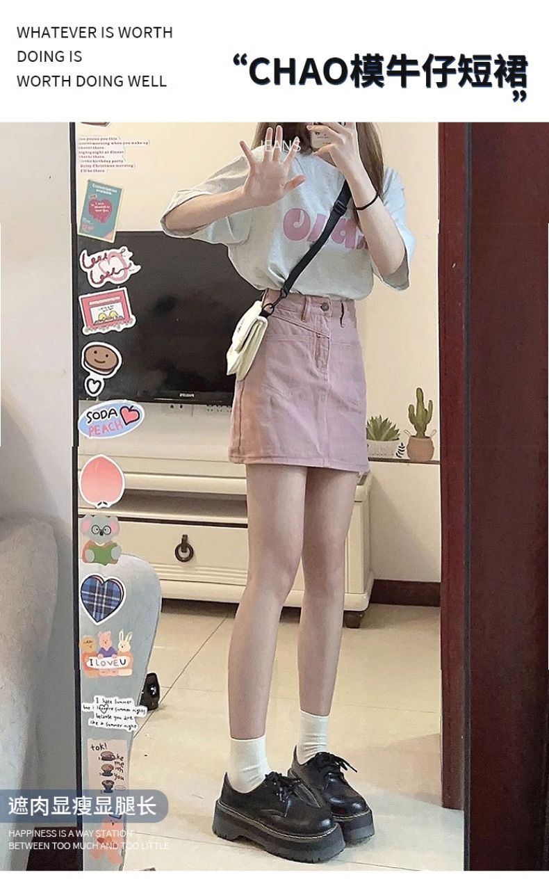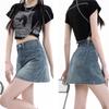 Falda vaquera retro estilo americano de verano 2024 para mujer, de otoño, de cintura alta, adelgazante, combina con todo, de corte A, falda corta a la cadera, a la moda