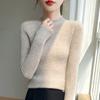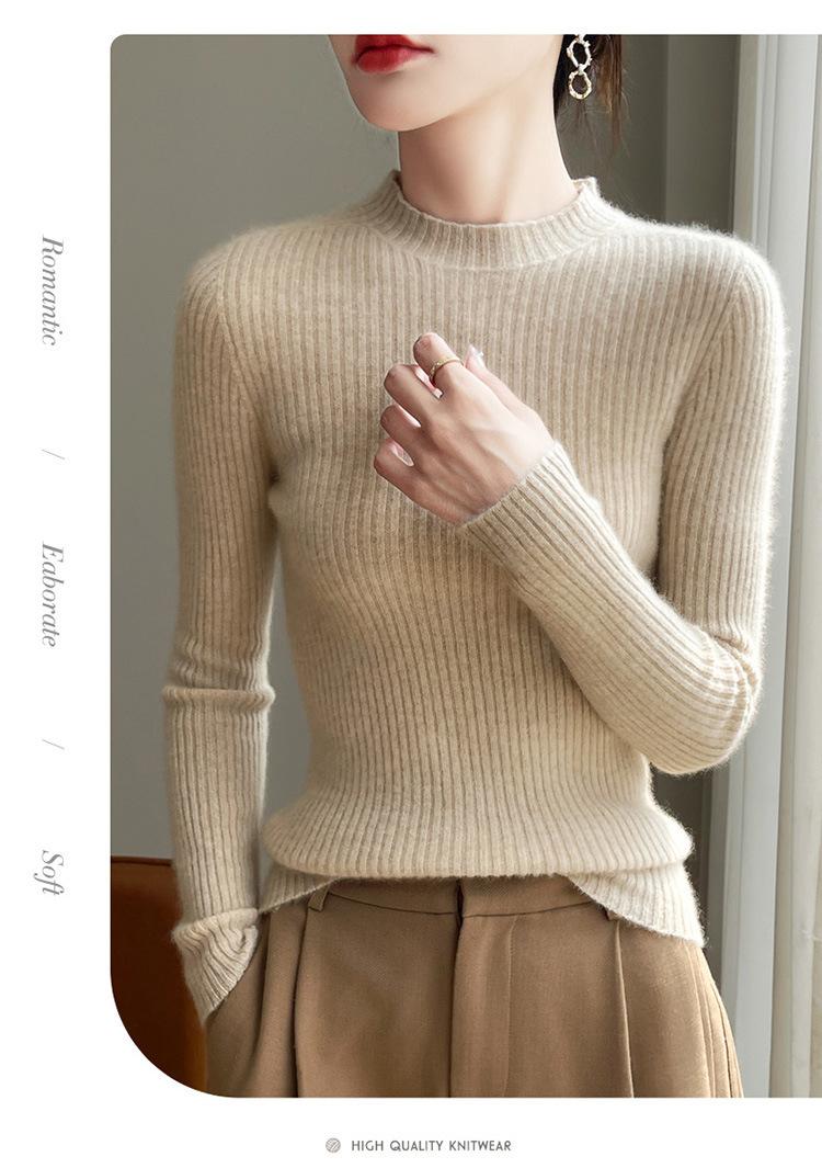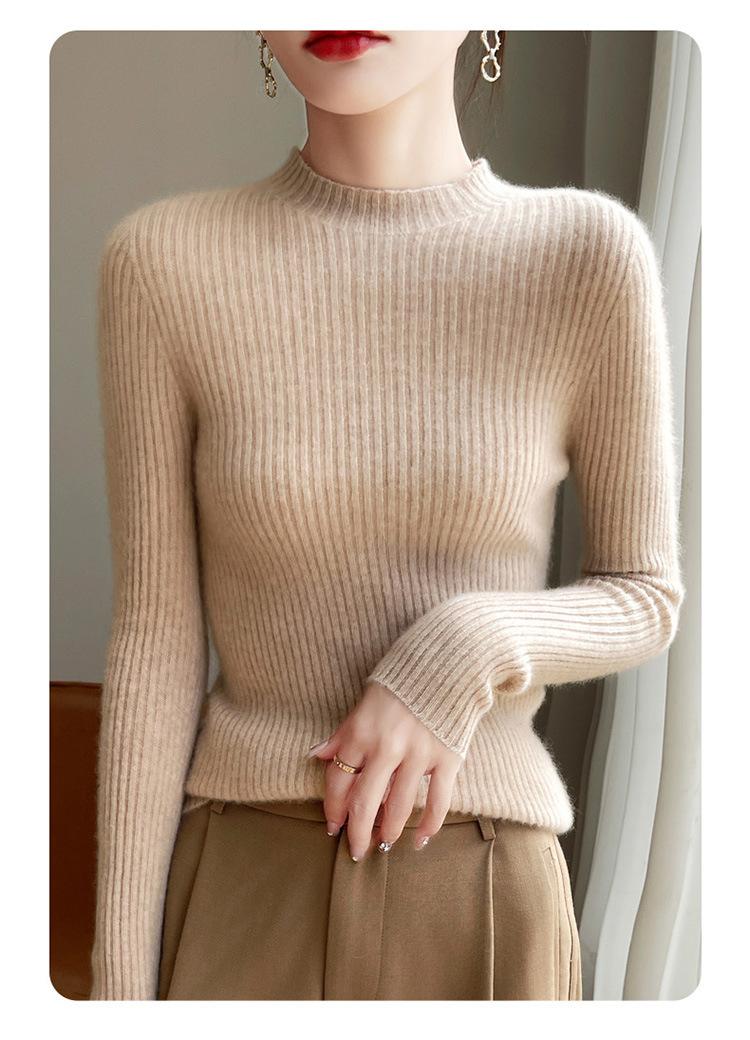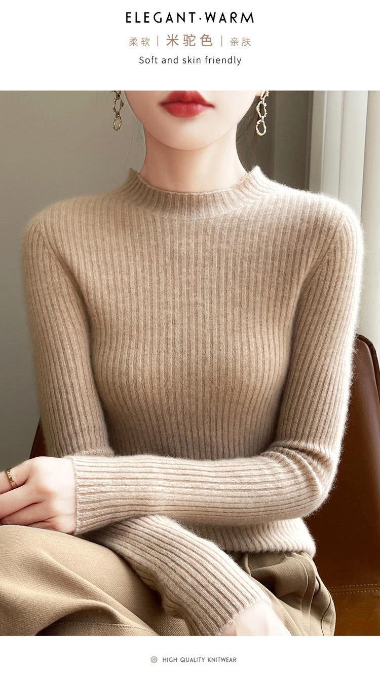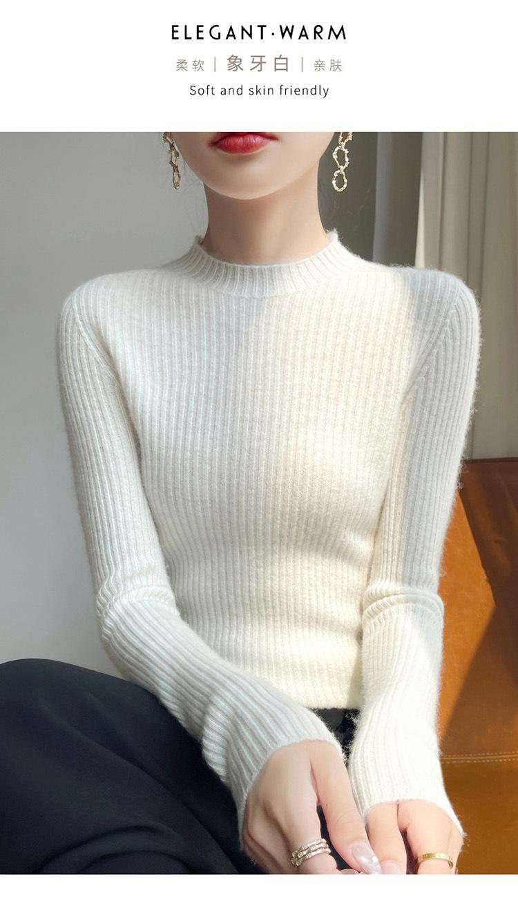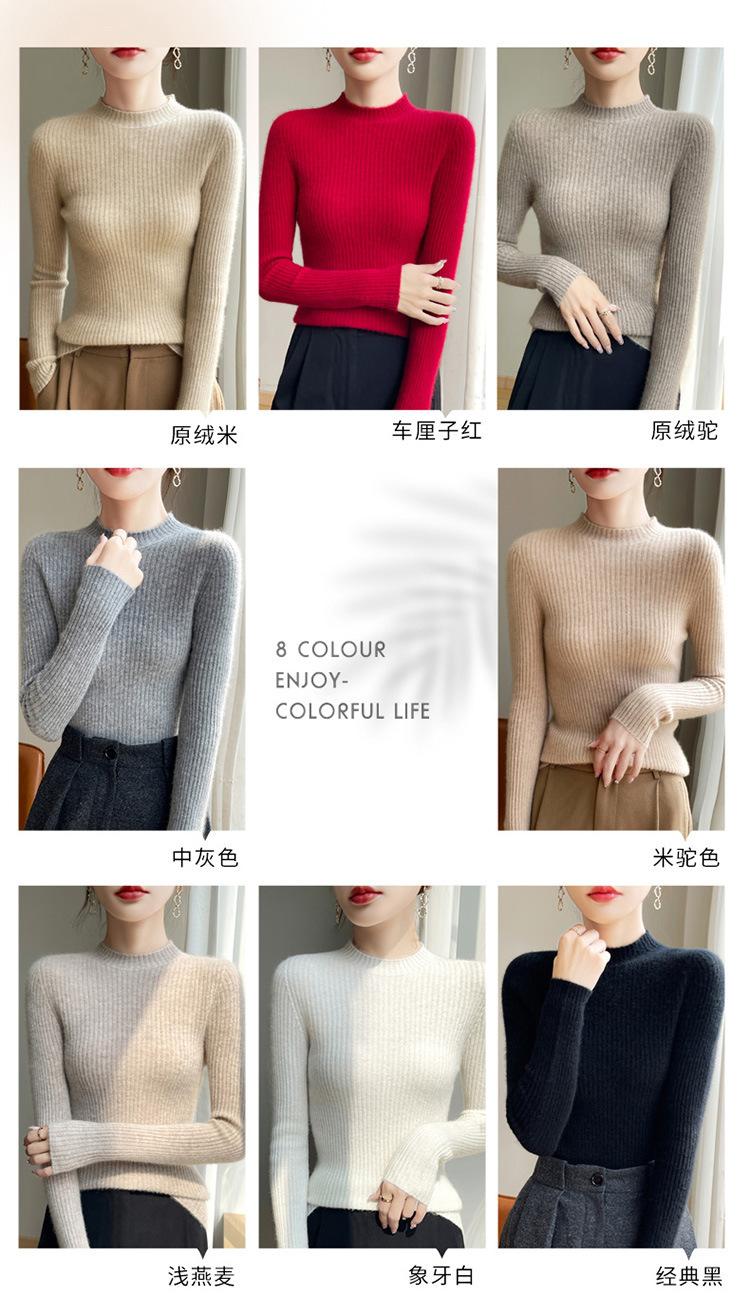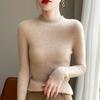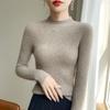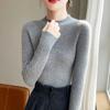 Suéter de cuello semialto de primera línea para mujer, camisa básica, suéter corto de otoño e invierno, suéter ajustado de manga larga.