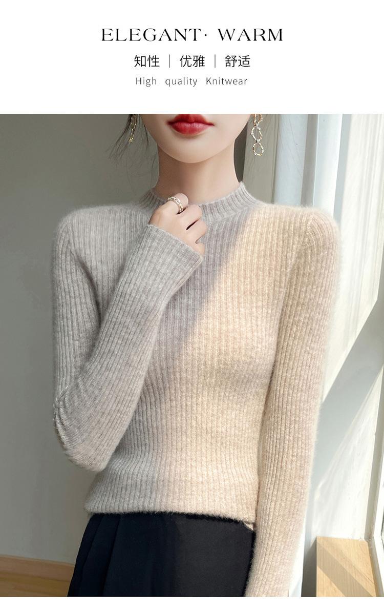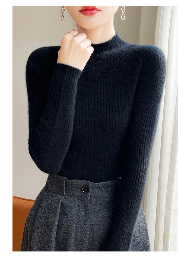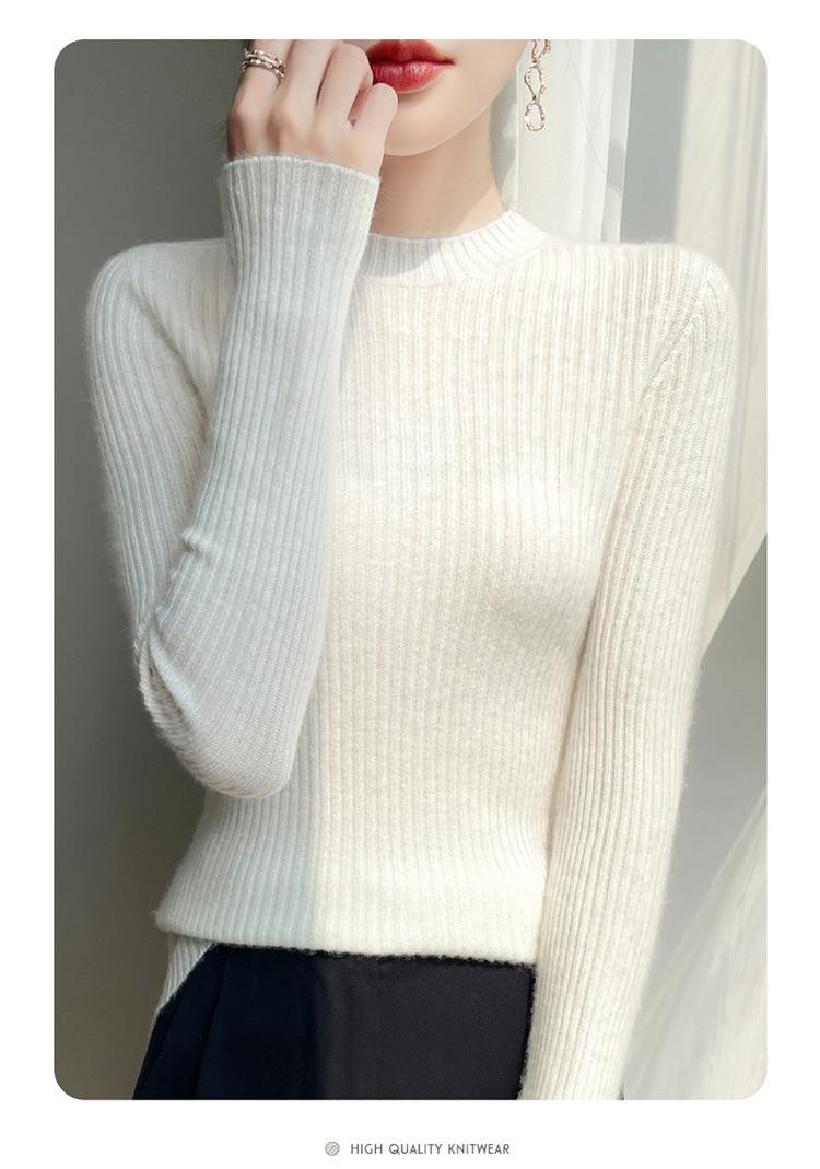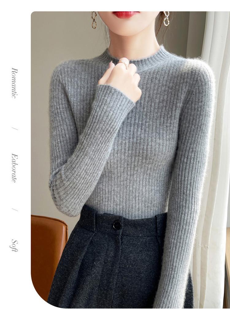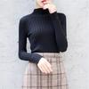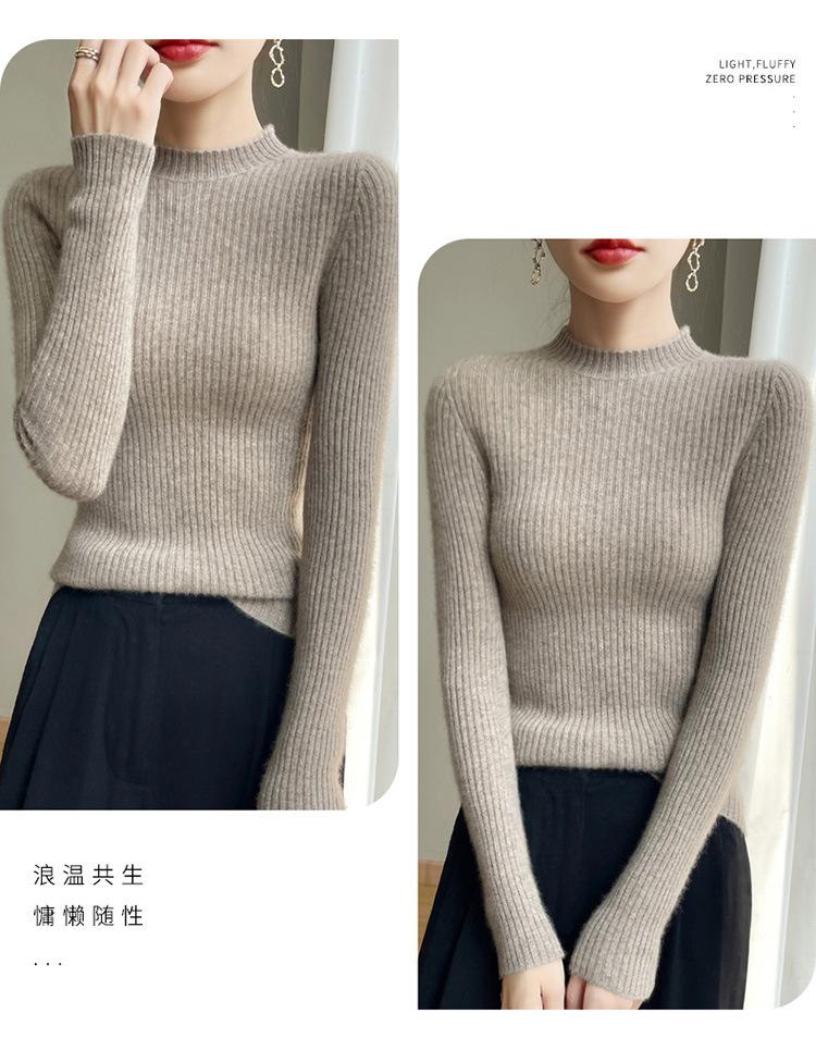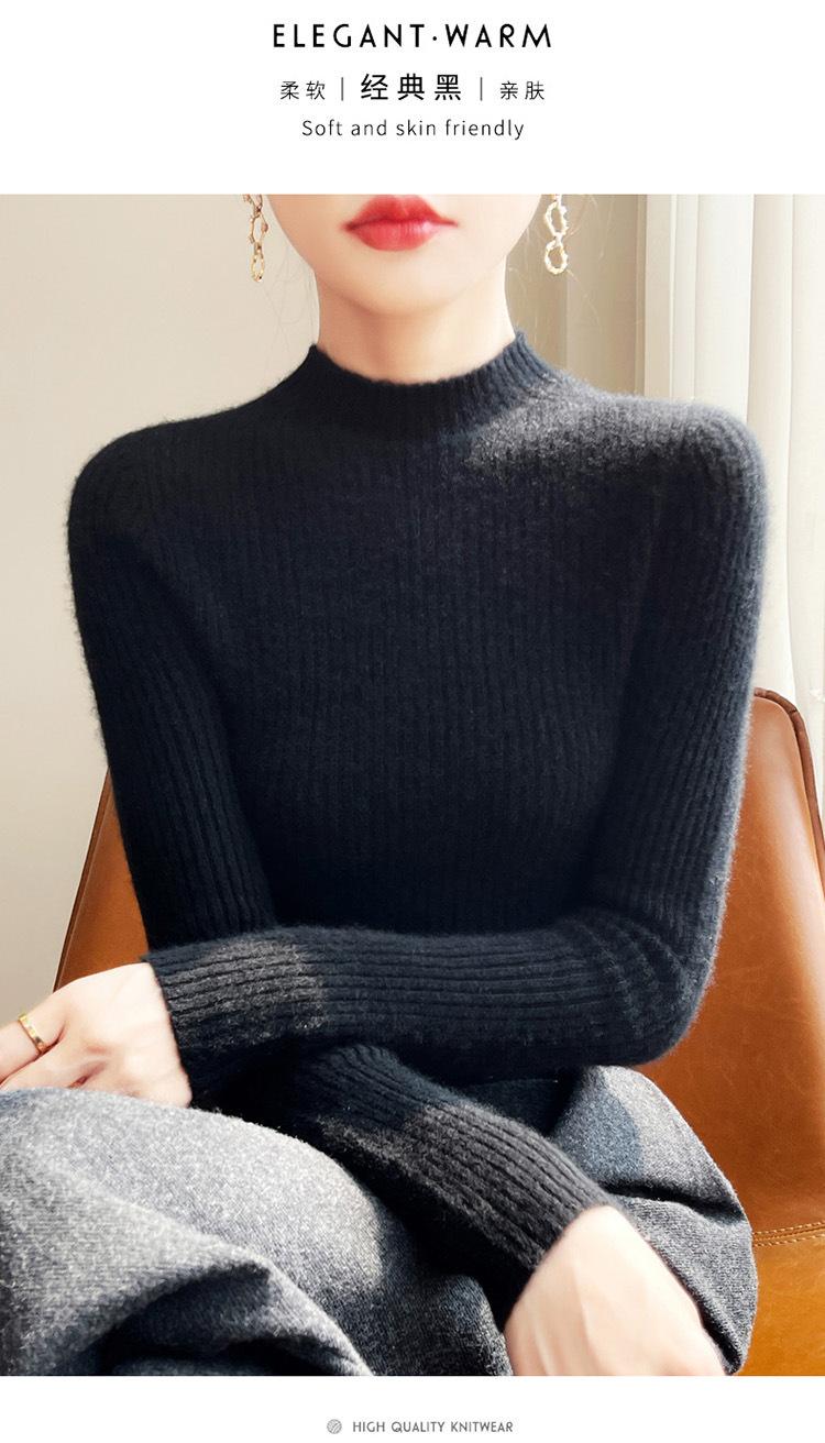 Suéter de cuello semialto de primera línea para mujer, camisa básica, suéter corto de otoño e invierno, suéter ajustado de manga larga.
