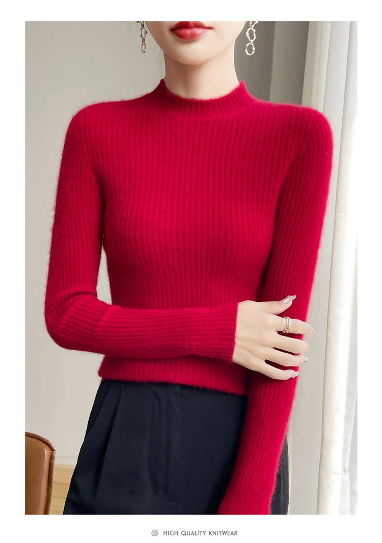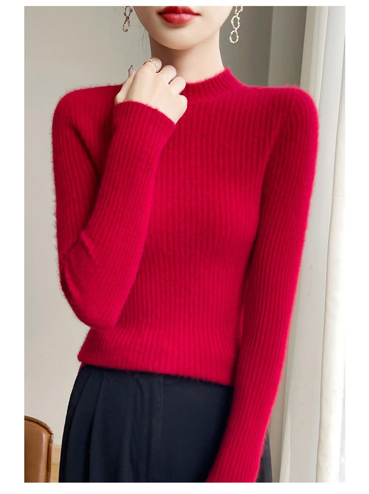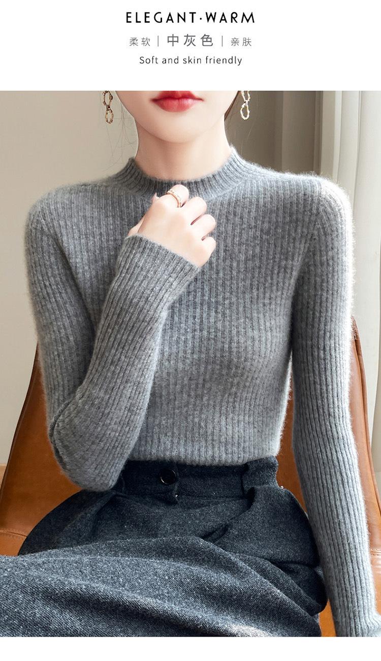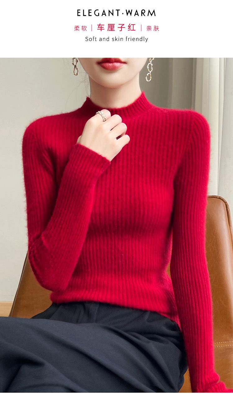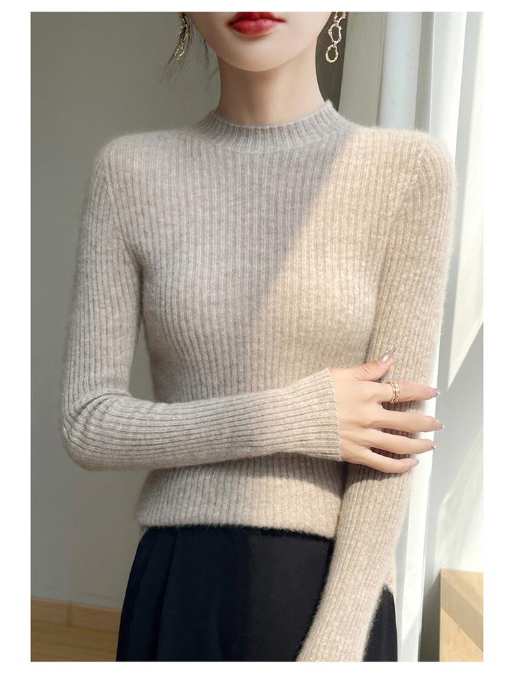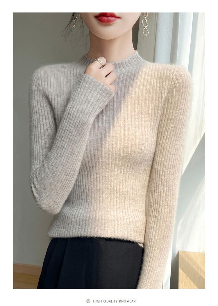 Suéter de cuello semialto de primera línea para mujer, camisa básica, suéter corto de otoño e invierno, suéter ajustado de manga larga.