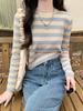 Suéter de punto de manga larga a rayas con cuello alto pequeño y diseño de estilo coreano para mujer, camiseta corta holgada de estilo perezoso para otoño e invierno, top de moda