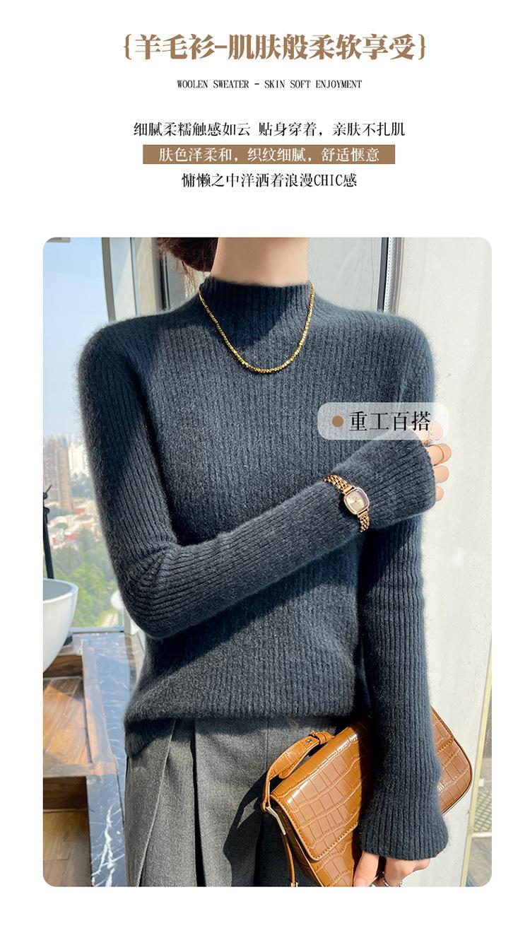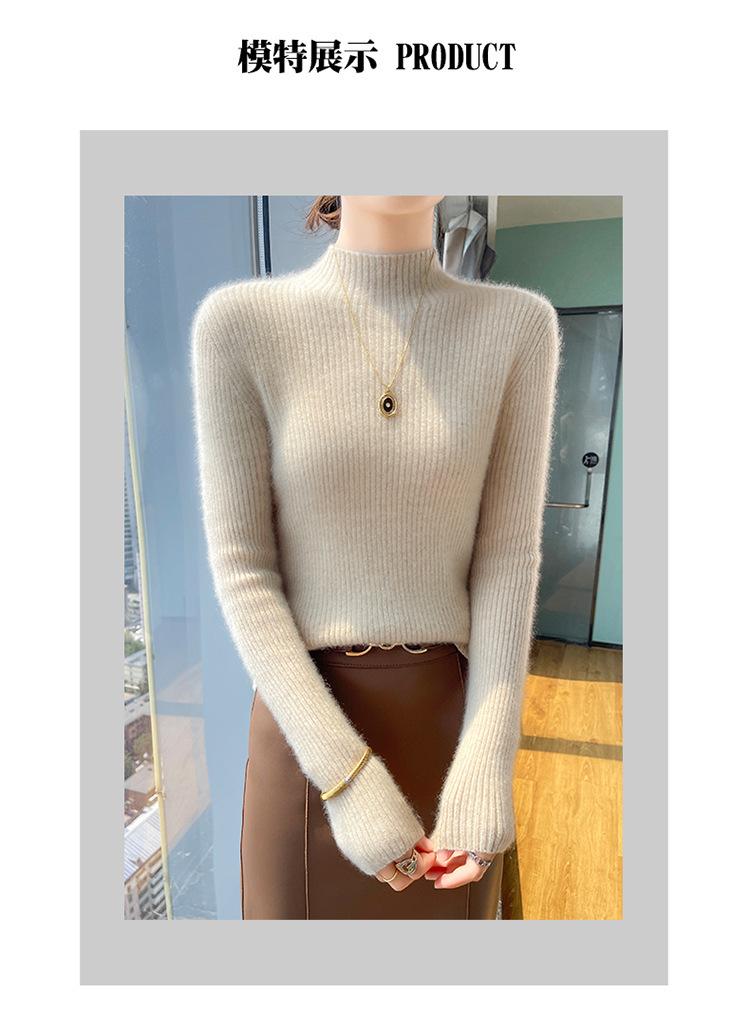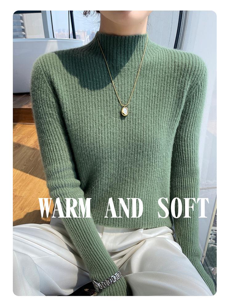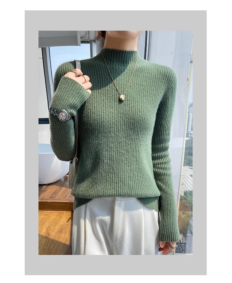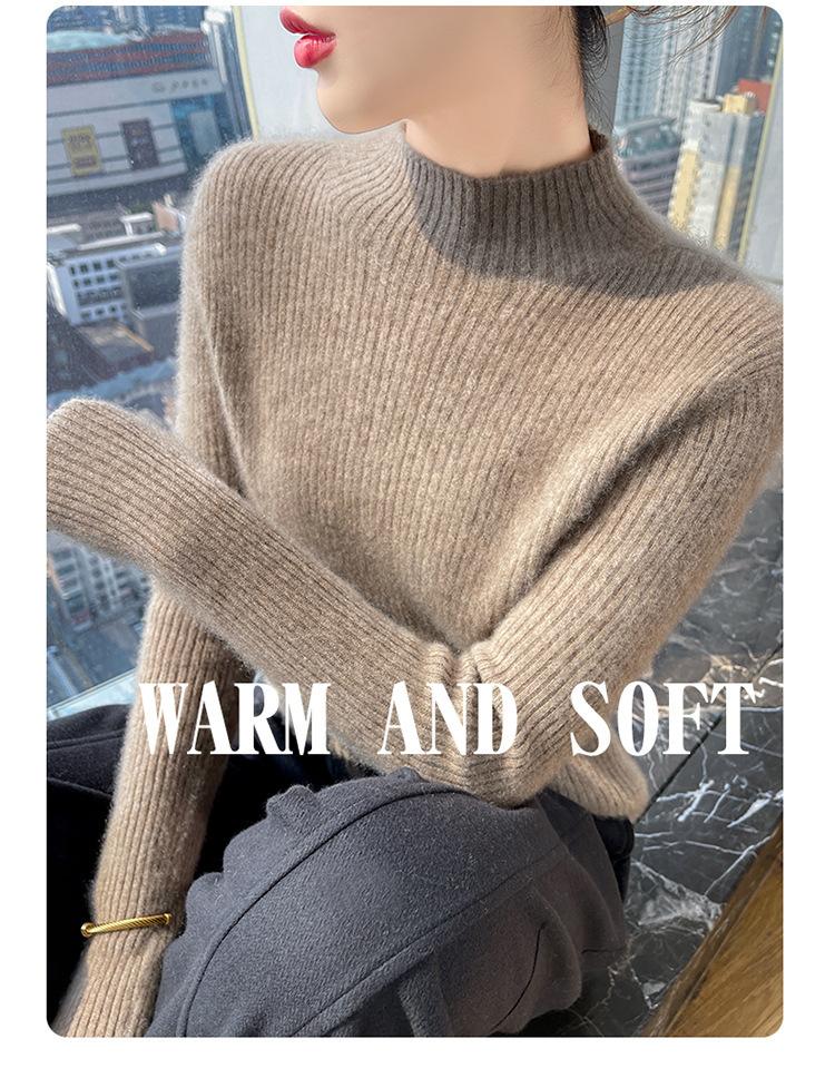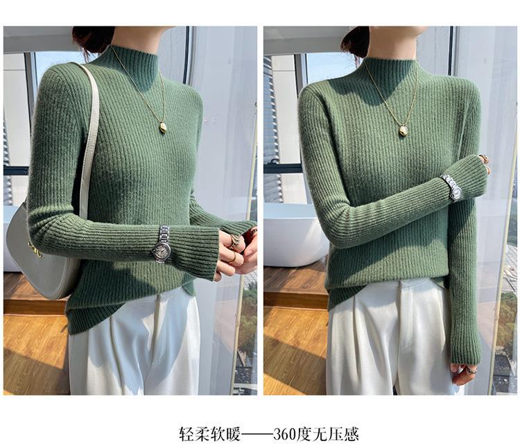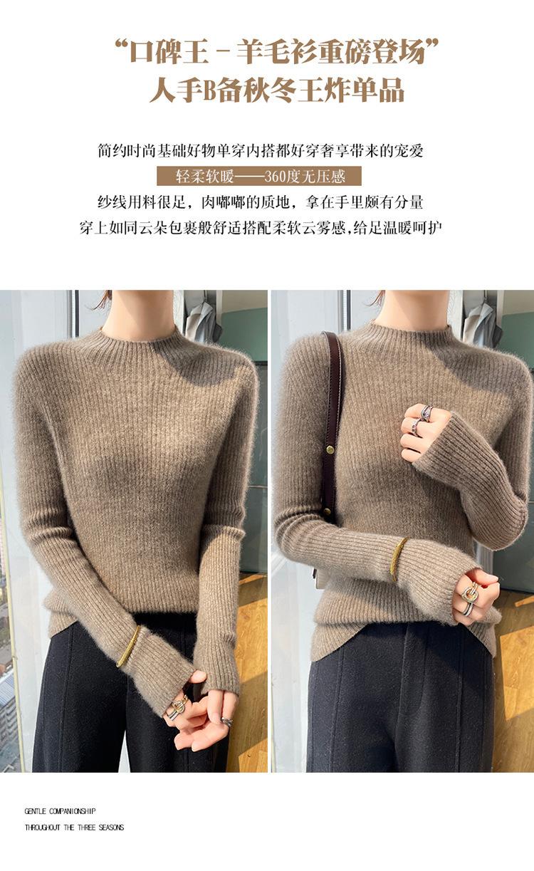 Nueva camisa básica de cuello medio alto de lana de otoño e invierno para mujer, suéter de punto de cachemira de corte entallado de estilo extranjero combinable con todo, venta al por mayor