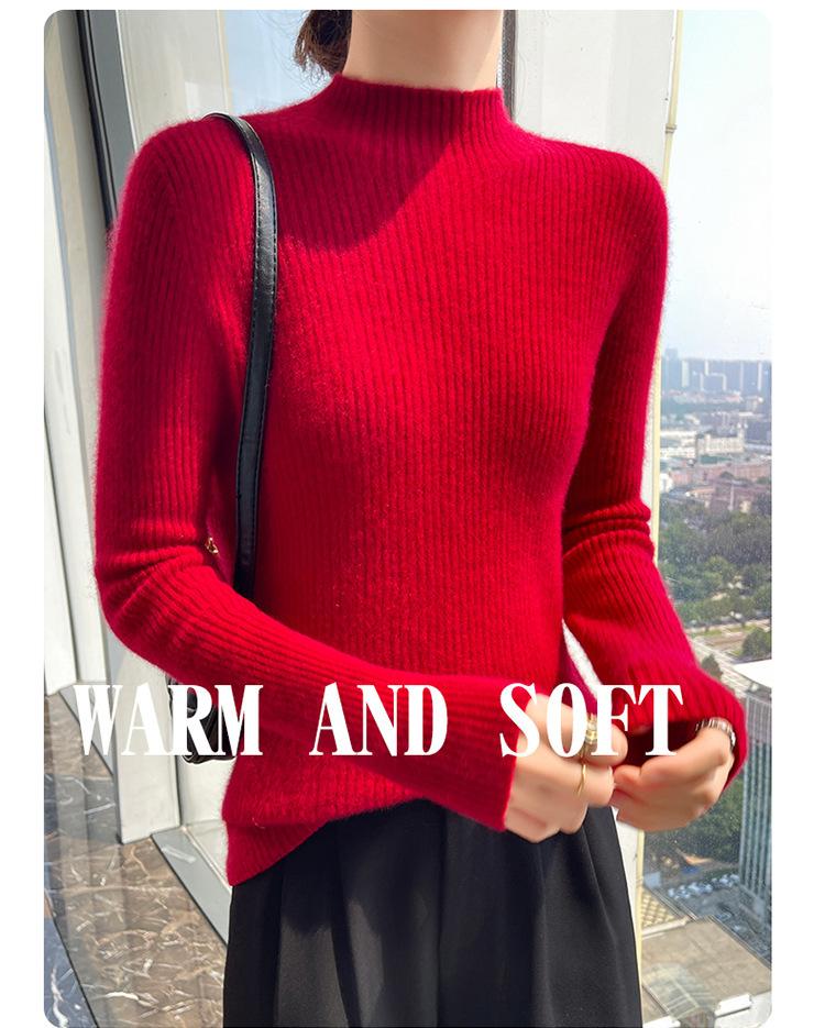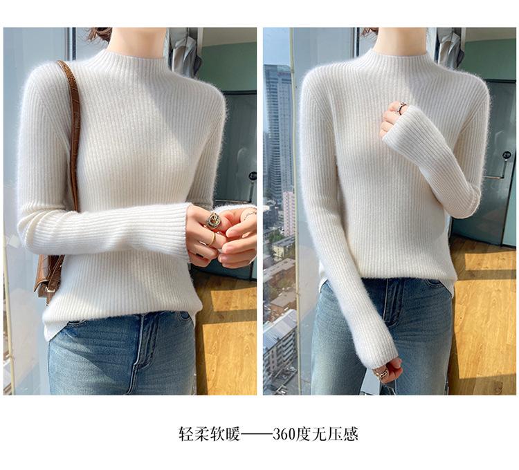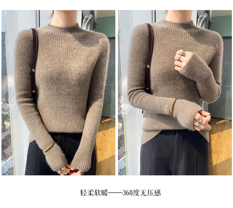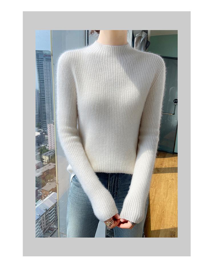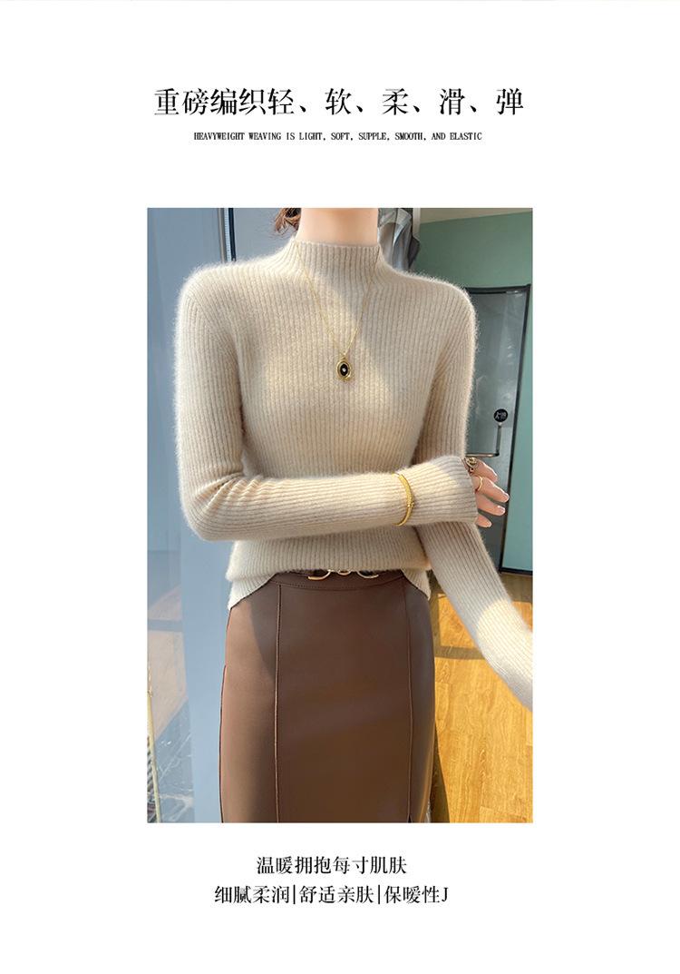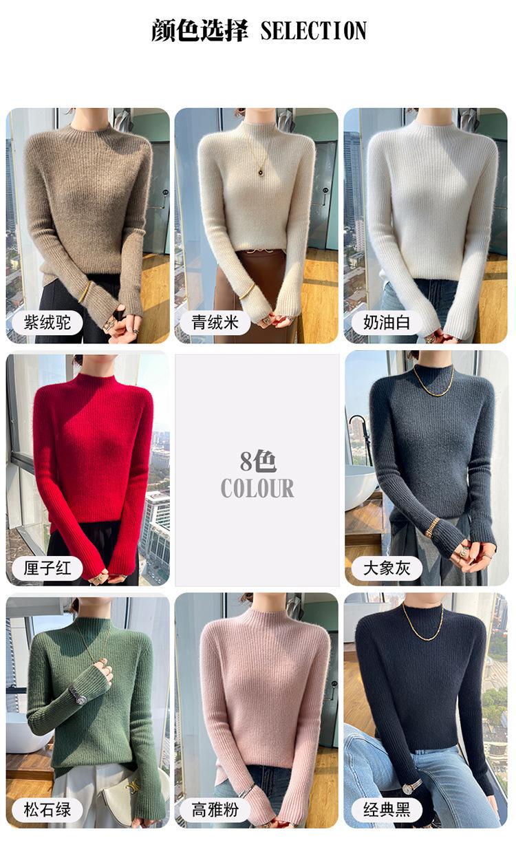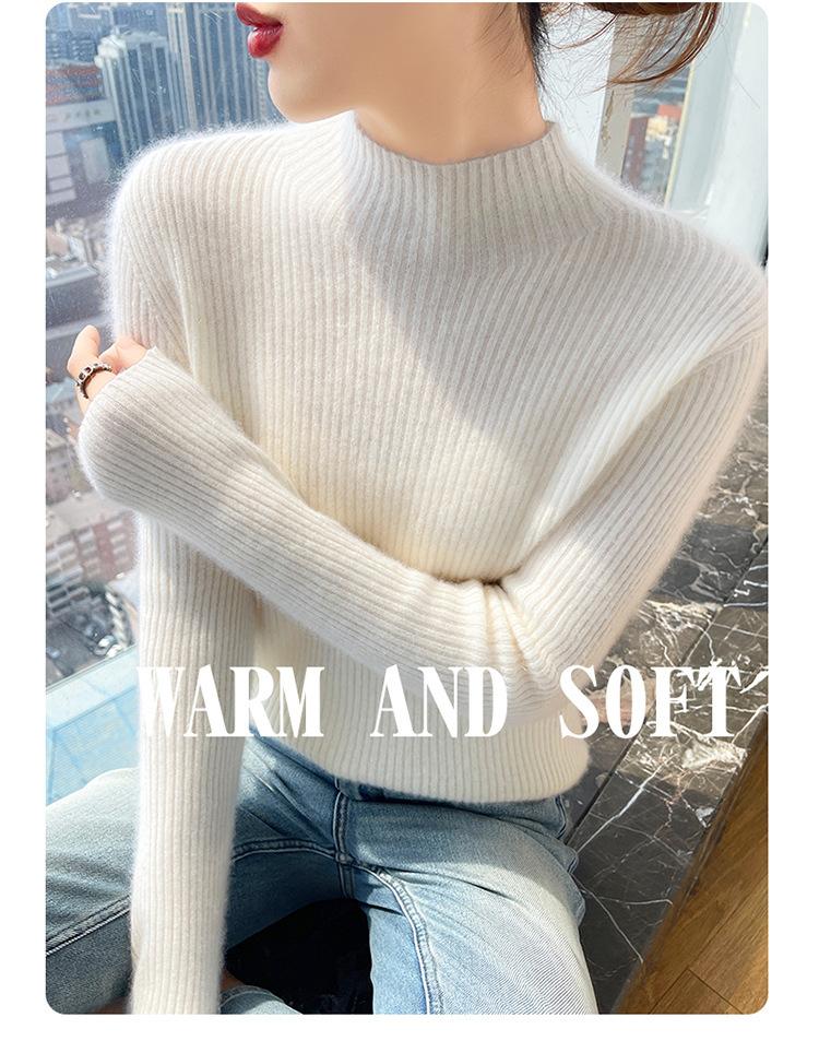 Nueva camisa básica de cuello medio alto de lana de otoño e invierno para mujer, suéter de punto de cachemira de corte entallado de estilo extranjero combinable con todo, venta al por mayor