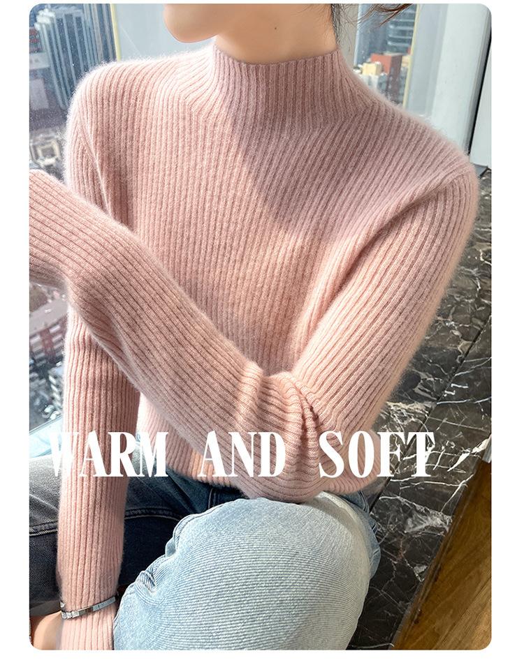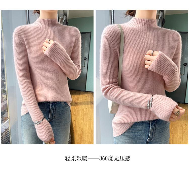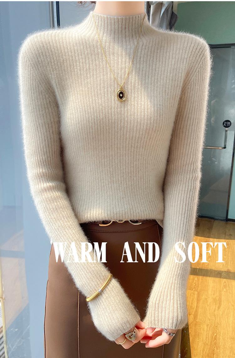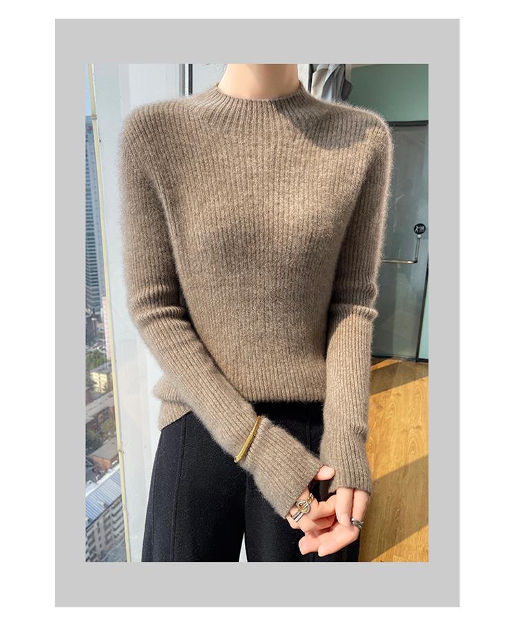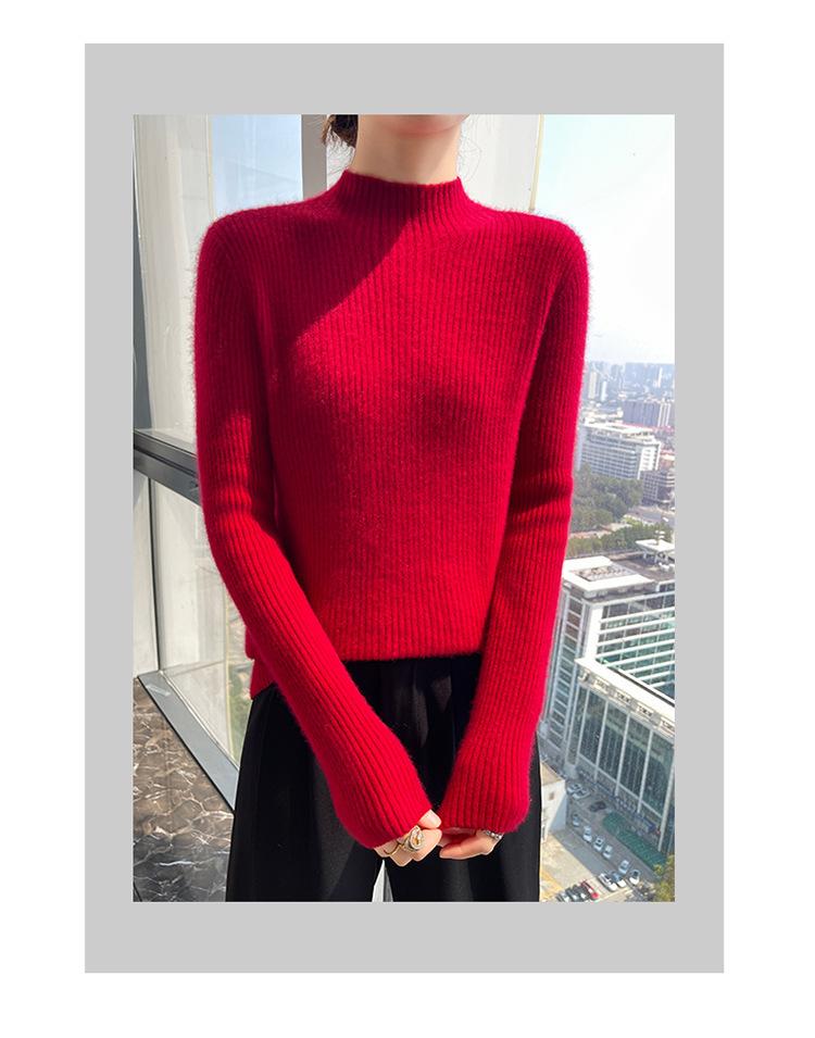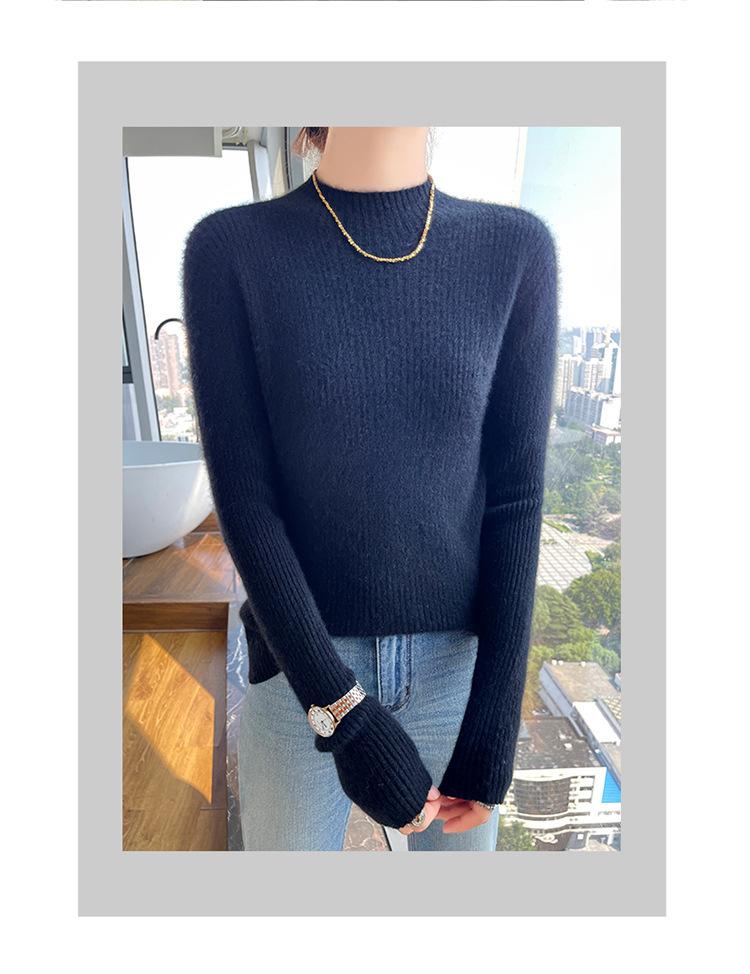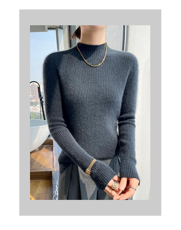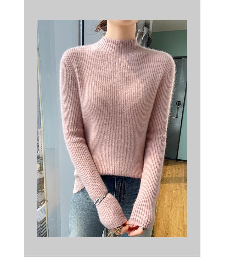 Nueva camisa básica de cuello medio alto de lana de otoño e invierno para mujer, suéter de punto de cachemira de corte entallado de estilo extranjero combinable con todo, venta al por mayor