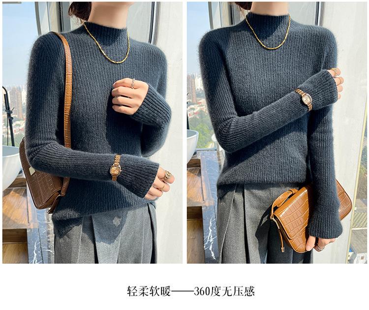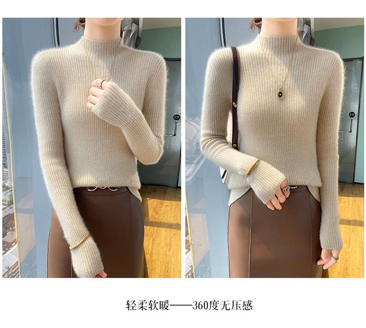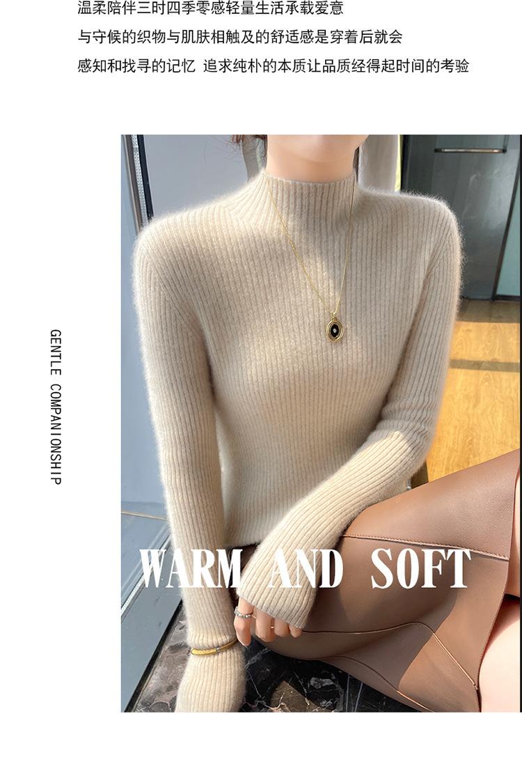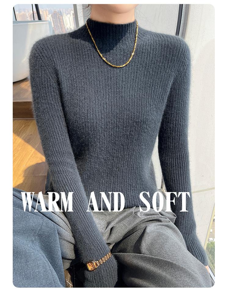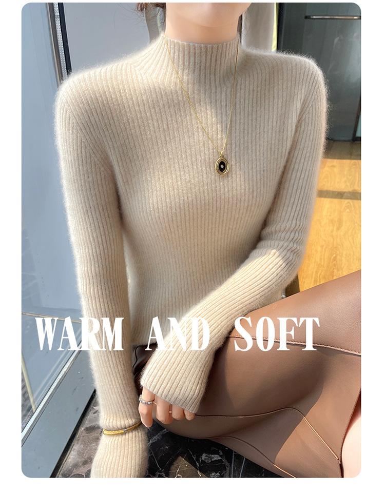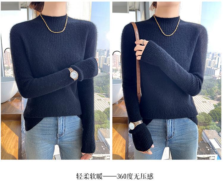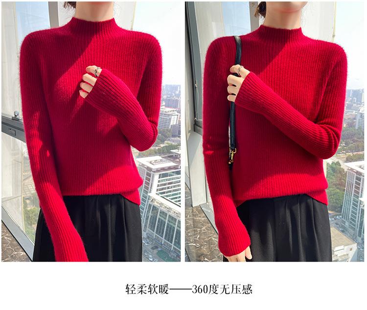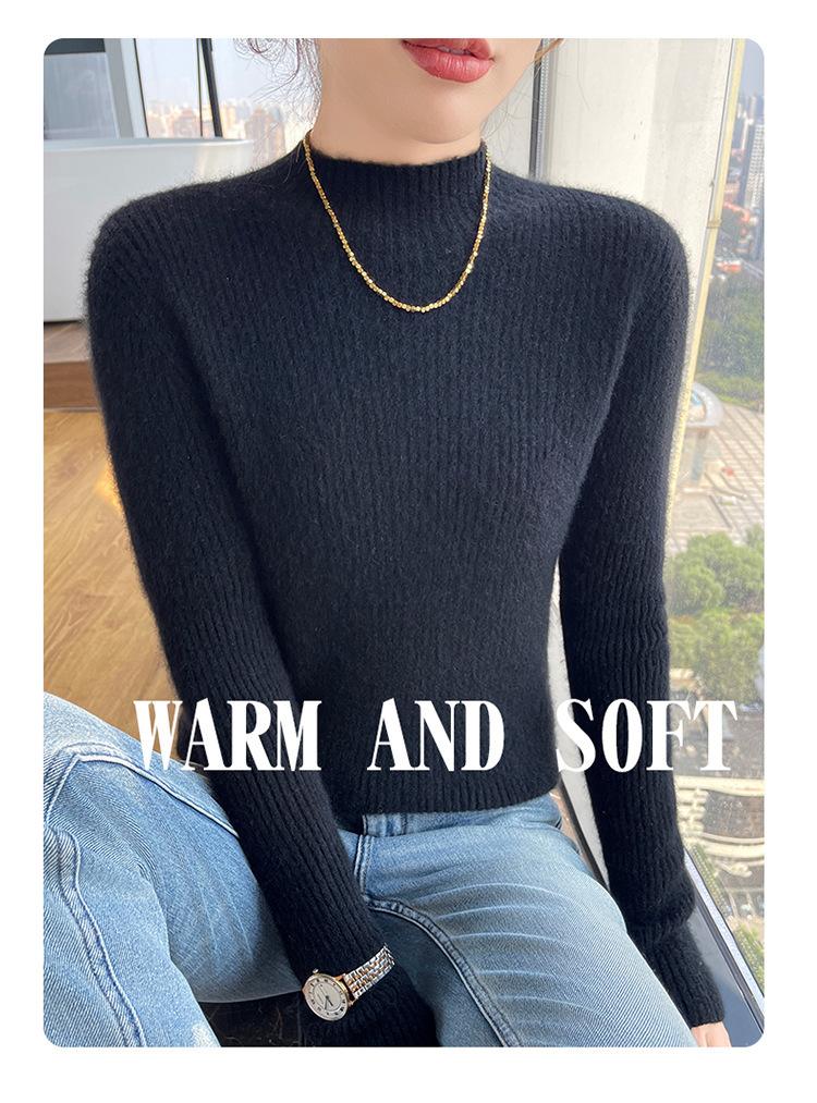 Nueva camisa básica de cuello medio alto de lana de otoño e invierno para mujer, suéter de punto de cachemira de corte entallado de estilo extranjero combinable con todo, venta al por mayor