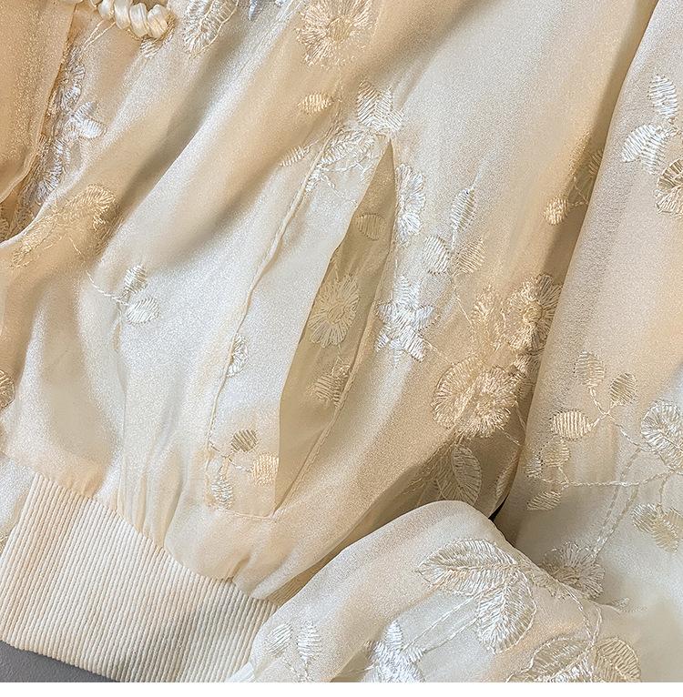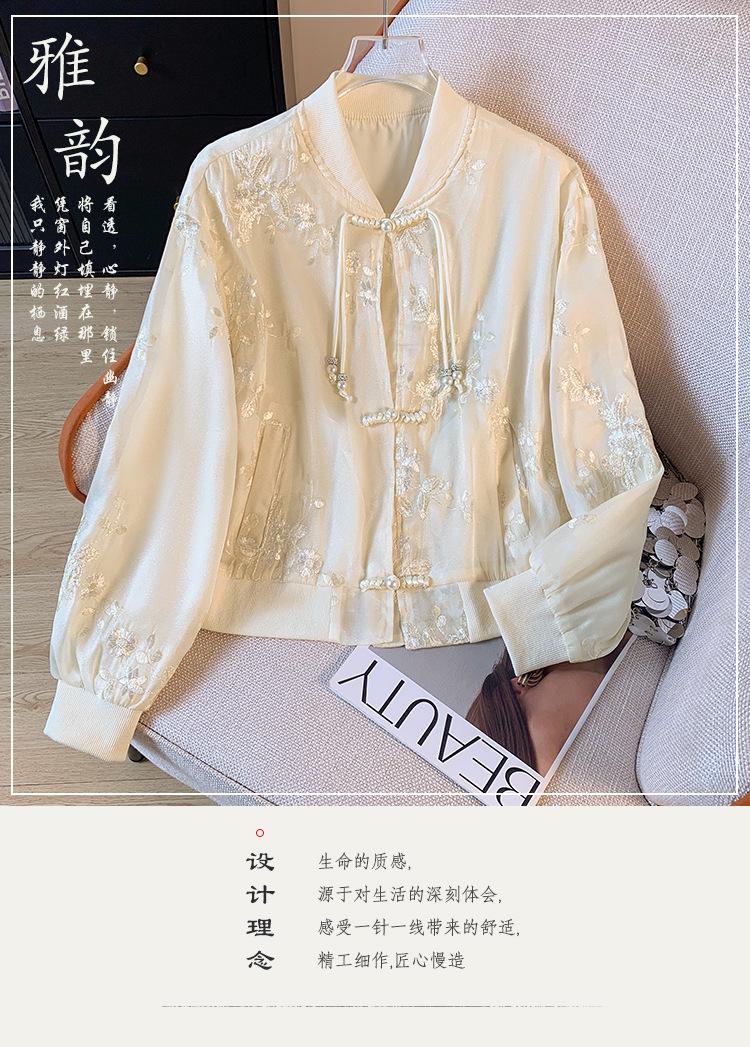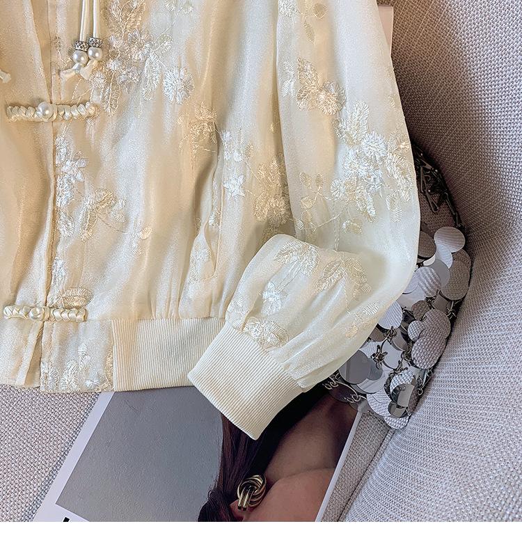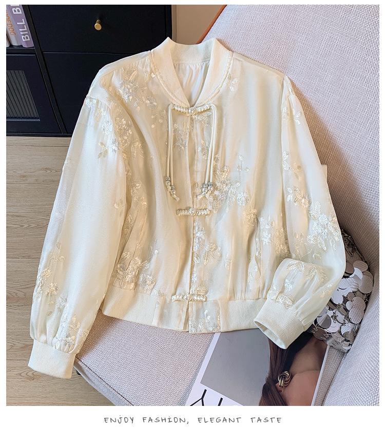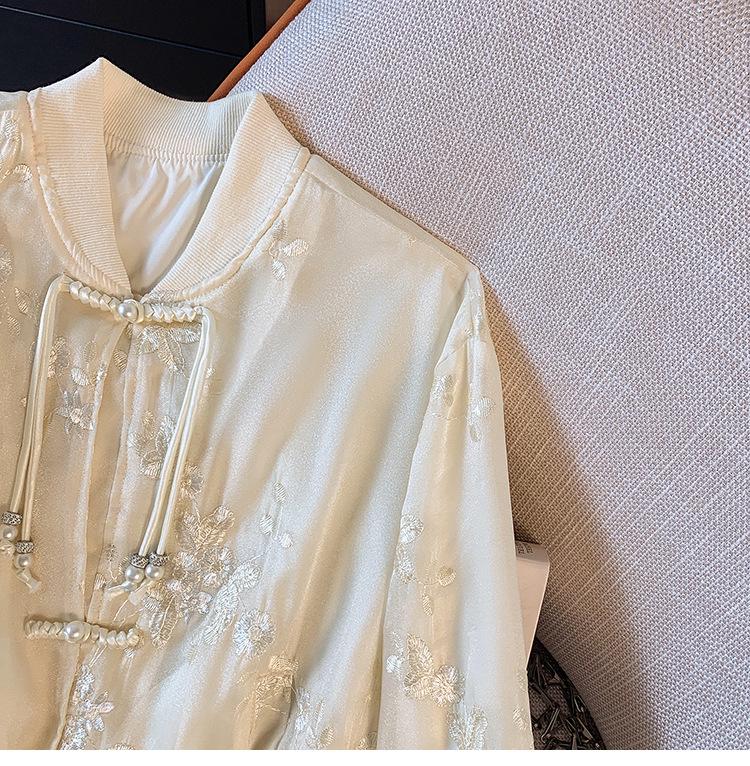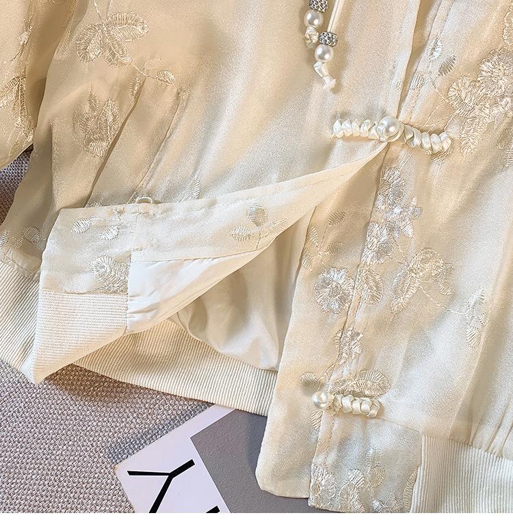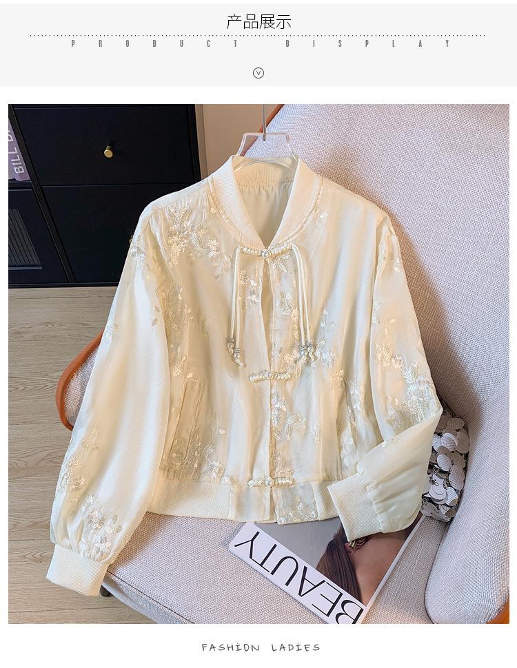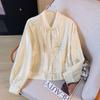 Foto Real Nuevo Abrigo Corto con Hebilla de Perla China para Mujer Jacquard de Industria Pesada Bordado Cuello Béisbol Elegante Chaqueta Dulce Top
