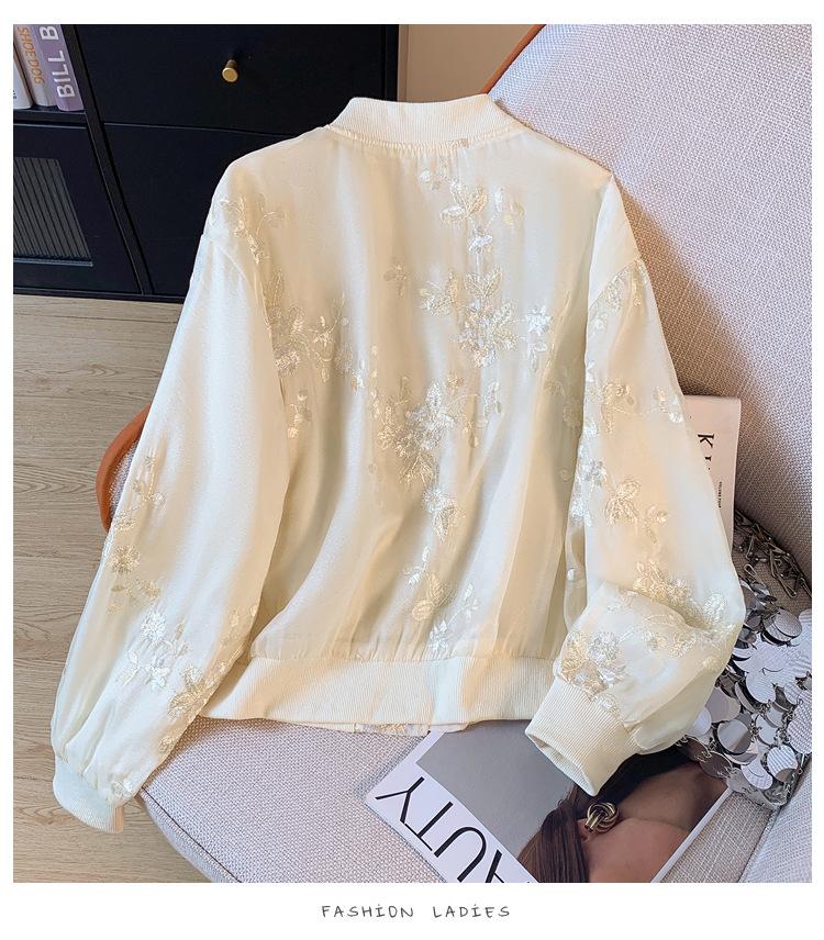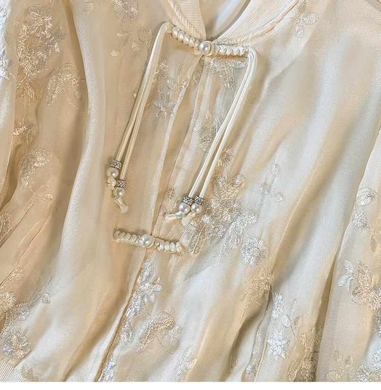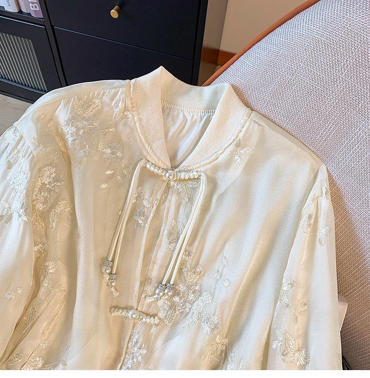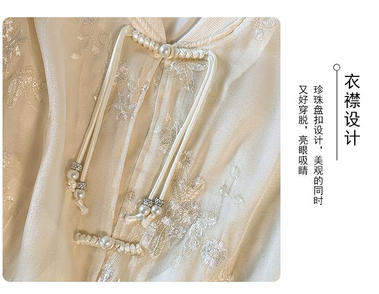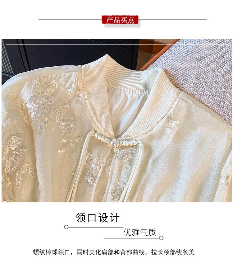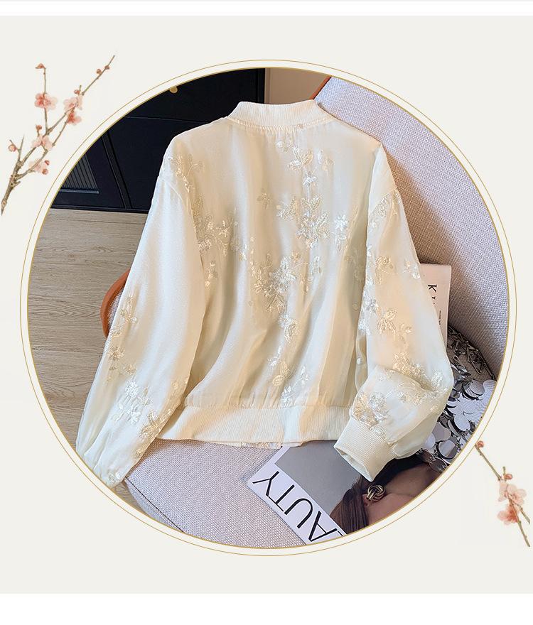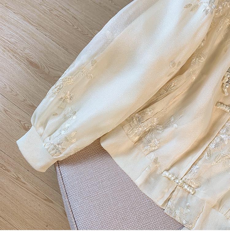 Foto Real Nuevo Abrigo Corto con Hebilla de Perla China para Mujer Jacquard de Industria Pesada Bordado Cuello Béisbol Elegante Chaqueta Dulce Top
