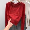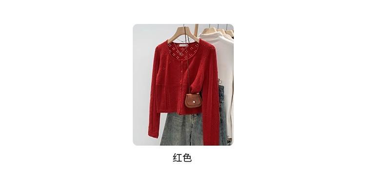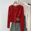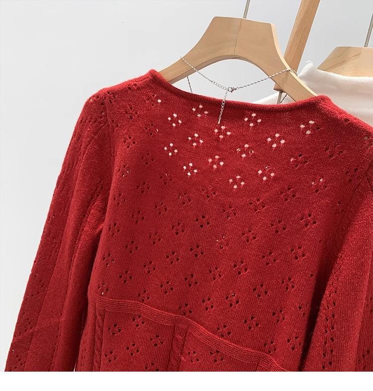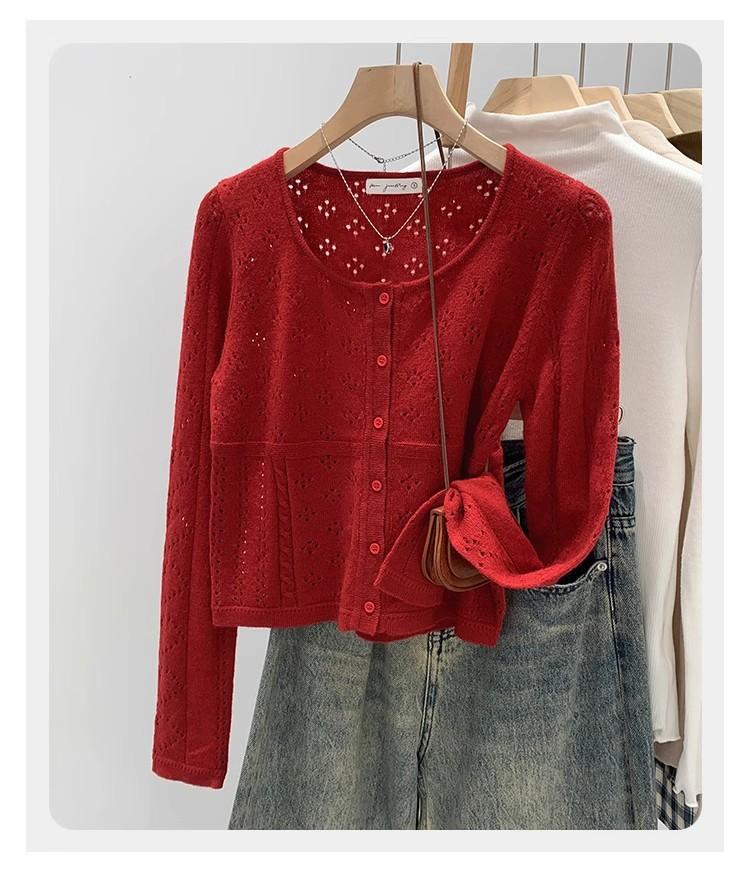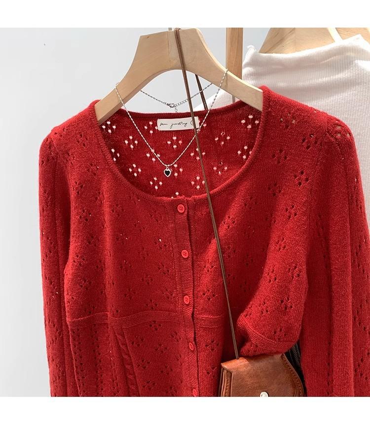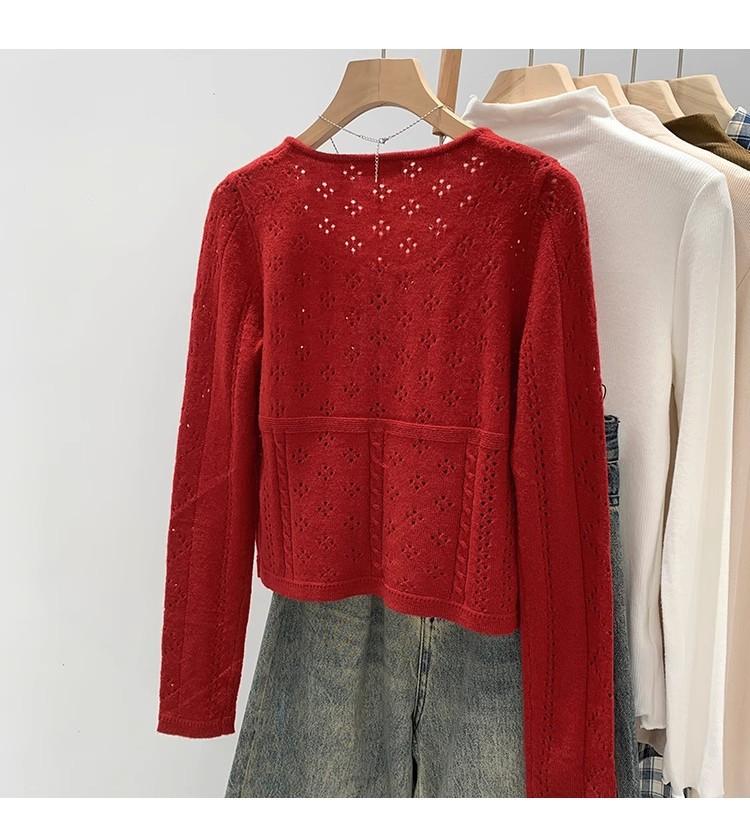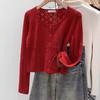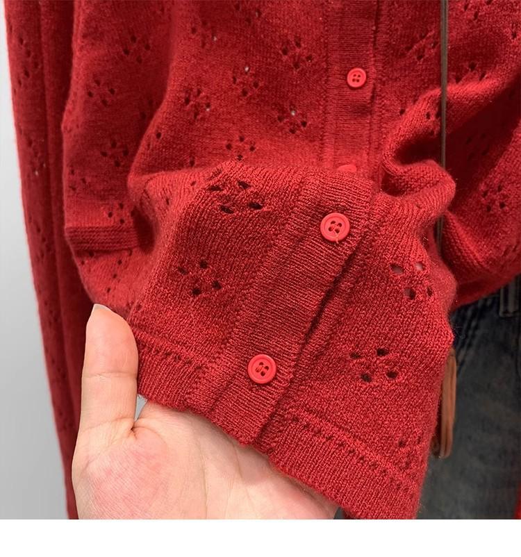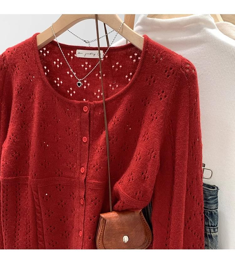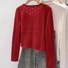 Chaqueta tipo cárdigan de punto exterior, fina, hueca, estilo Hong Kong, vintage, de color rojo, con protección solar, para mujer, estilo holgado de principios de otoño, top corto