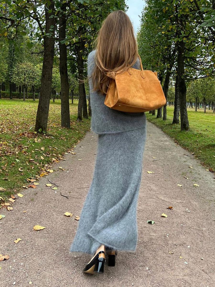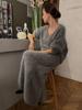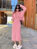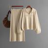 Traje de punto de visón sintético transfronterizo Estilo europeo y americano Otoño e invierno 2025 Nuevo estilo Suéter holgado con cuello en V Falda de cola de pez Traje
