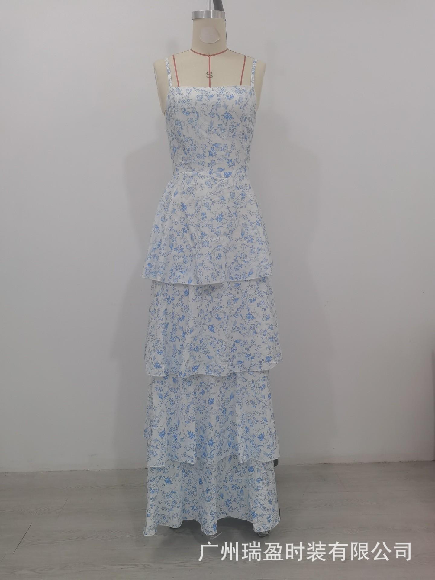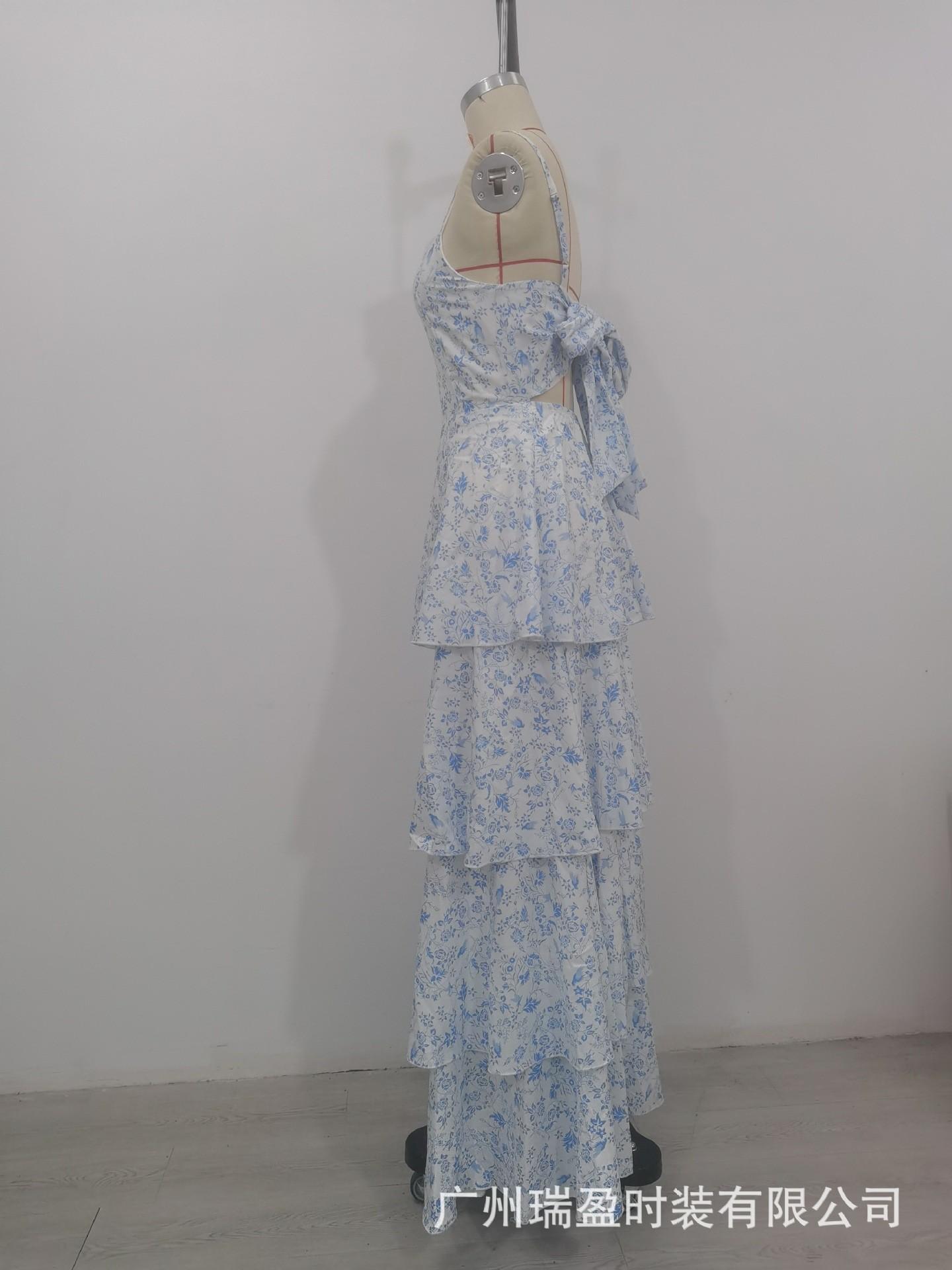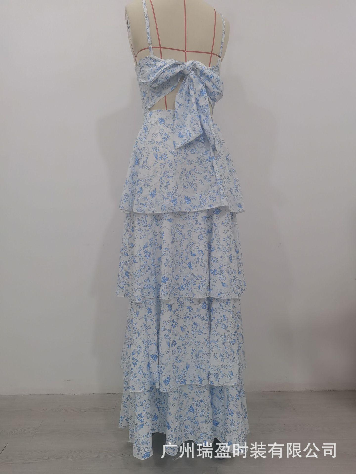 Europeo y Americano Transfronterizo Nuevo Primavera y Verano Vestido Floral de Lazo Fiesta de Vacaciones Vestido Elegante Estampado (2 colores