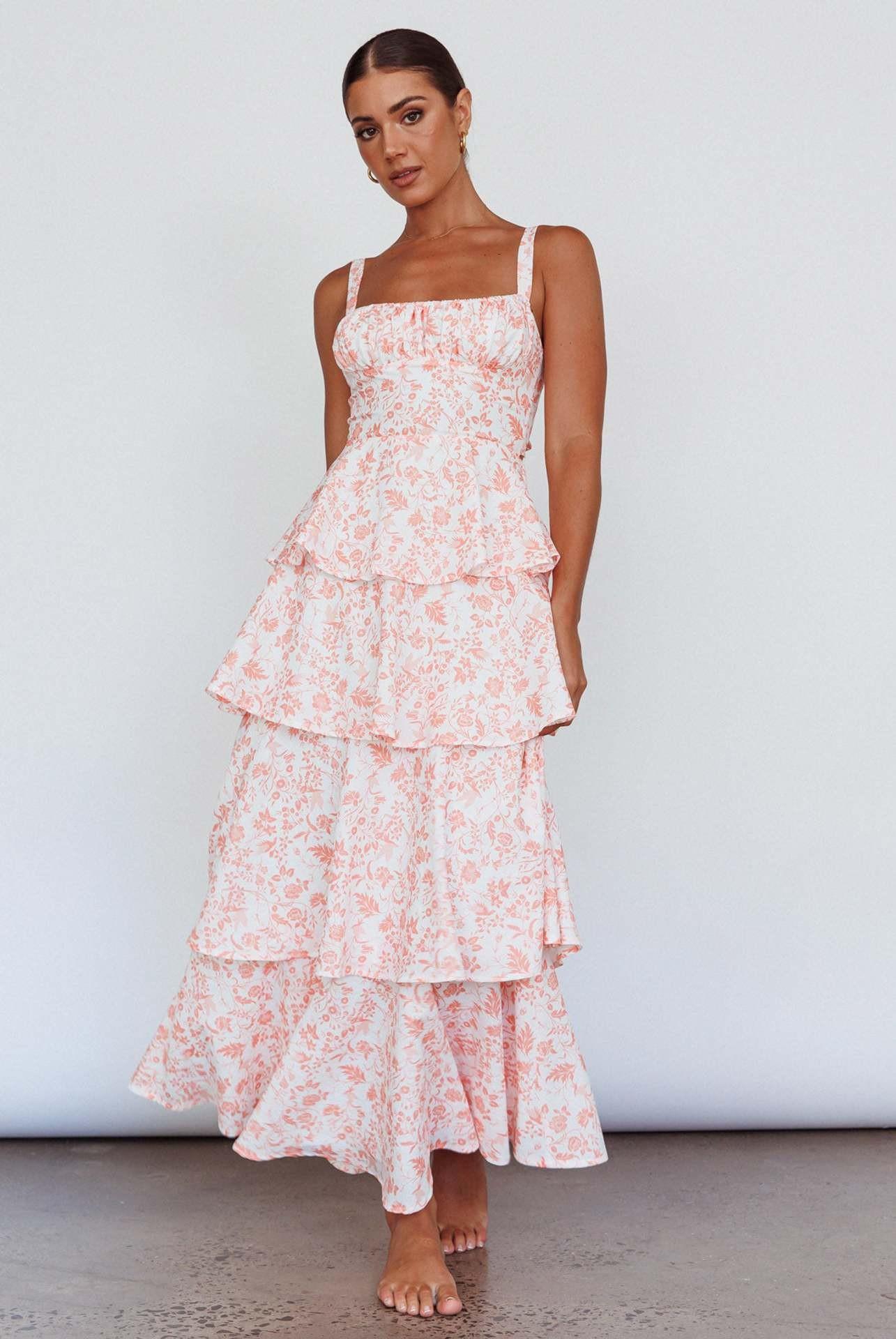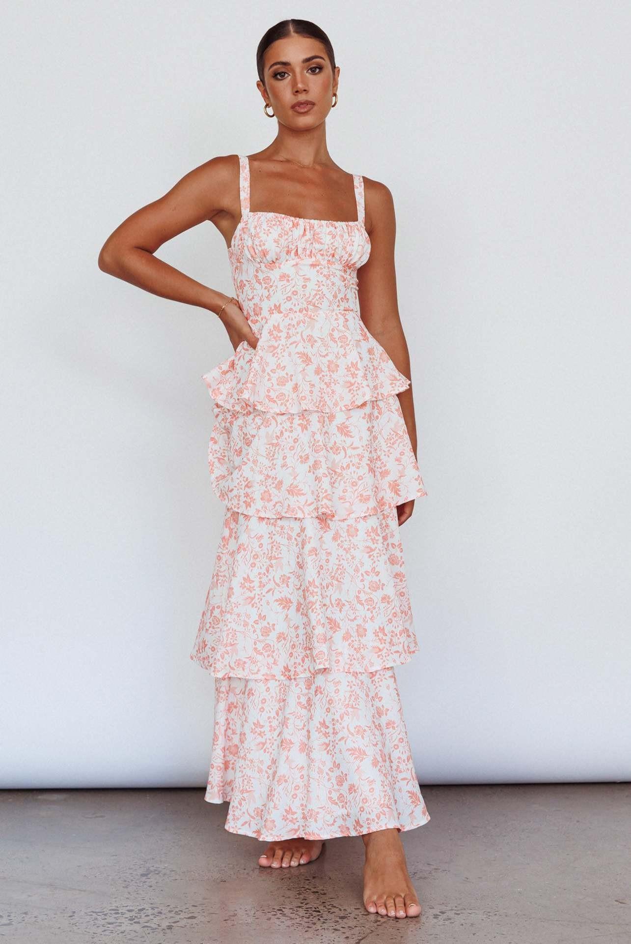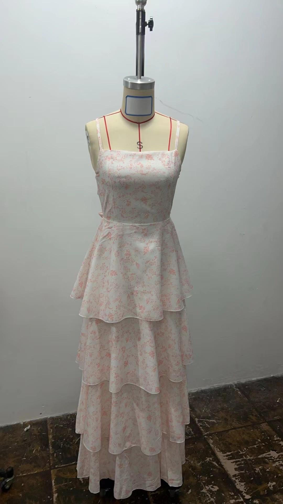 Europeo y Americano Transfronterizo Nuevo Primavera y Verano Vestido Floral de Lazo Fiesta de Vacaciones Vestido Elegante Estampado (2 colores