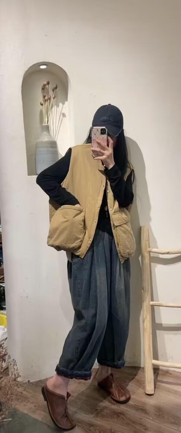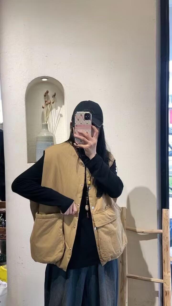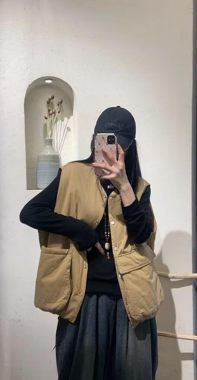 Chaleco acolchado para mujer, otoño e invierno 2024, nuevo, vintage, informal, con bolsillos grandes, combinable, holgado, cálido.