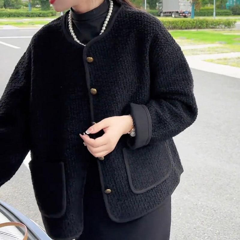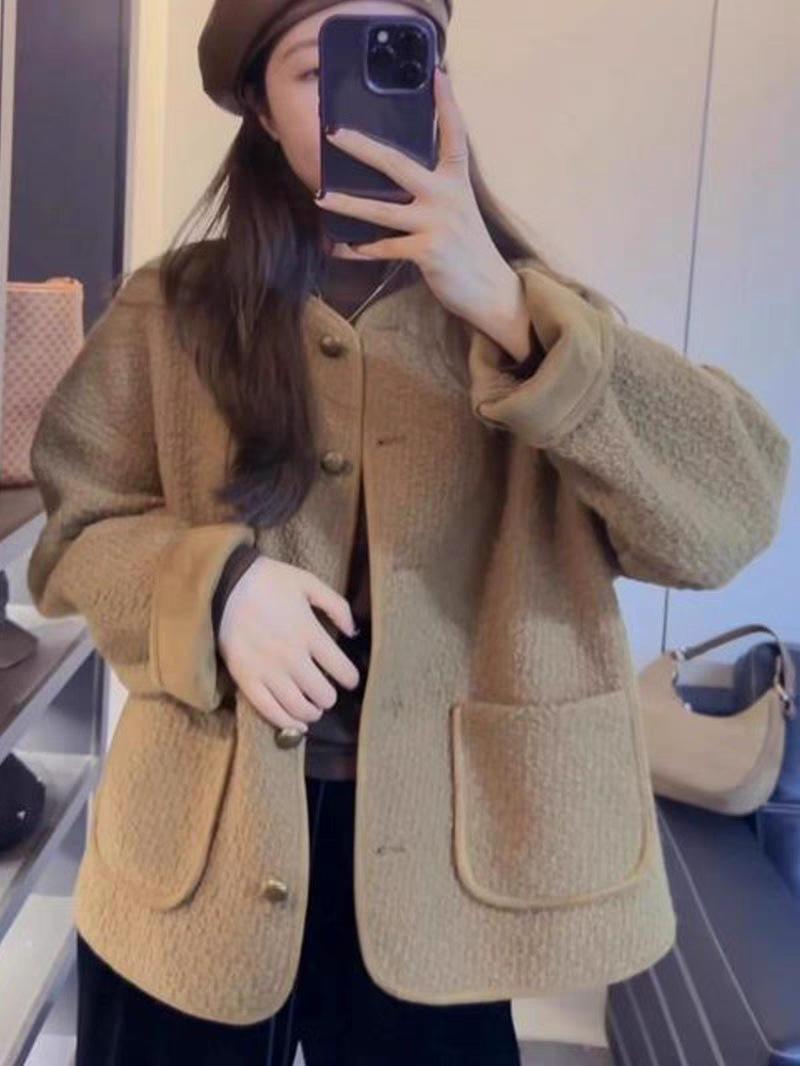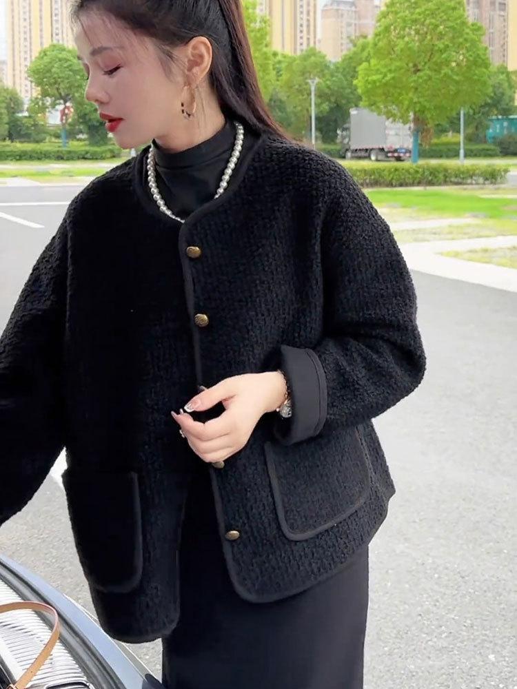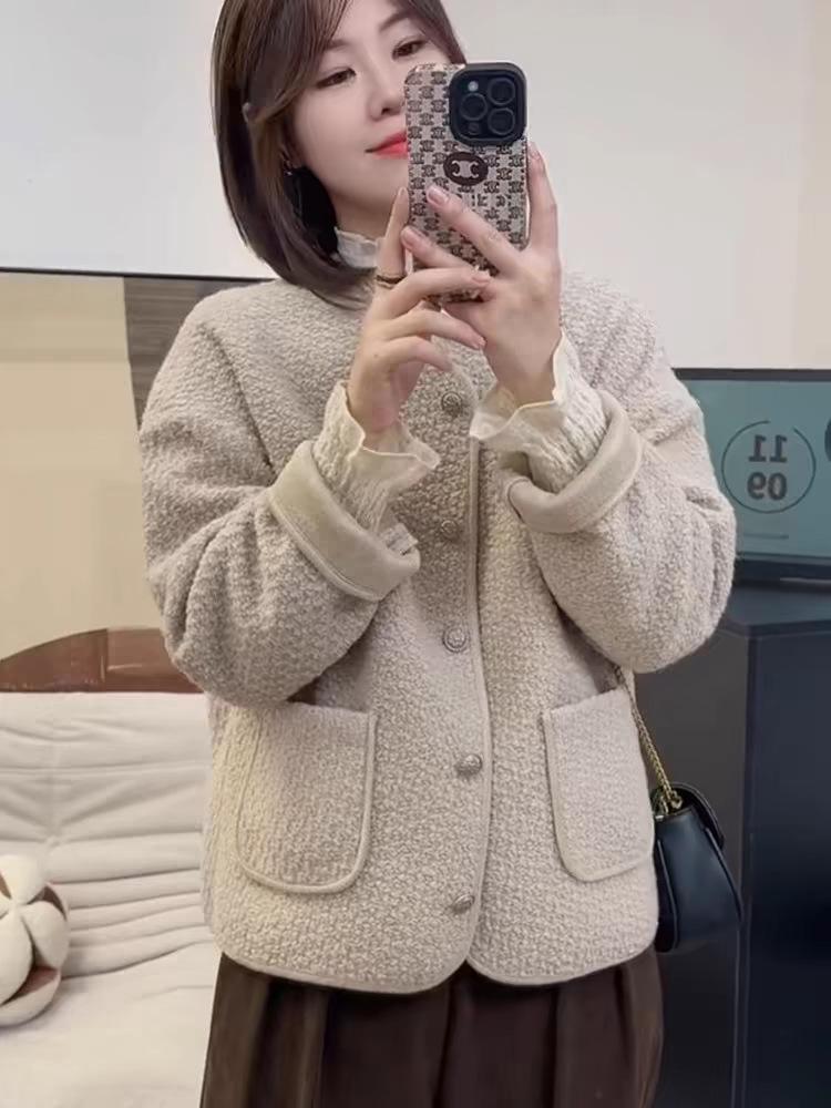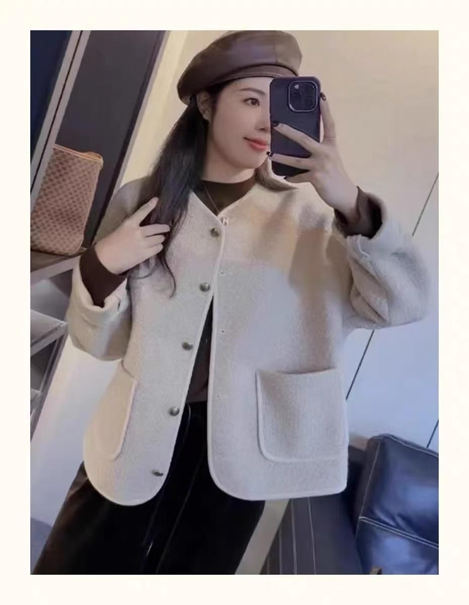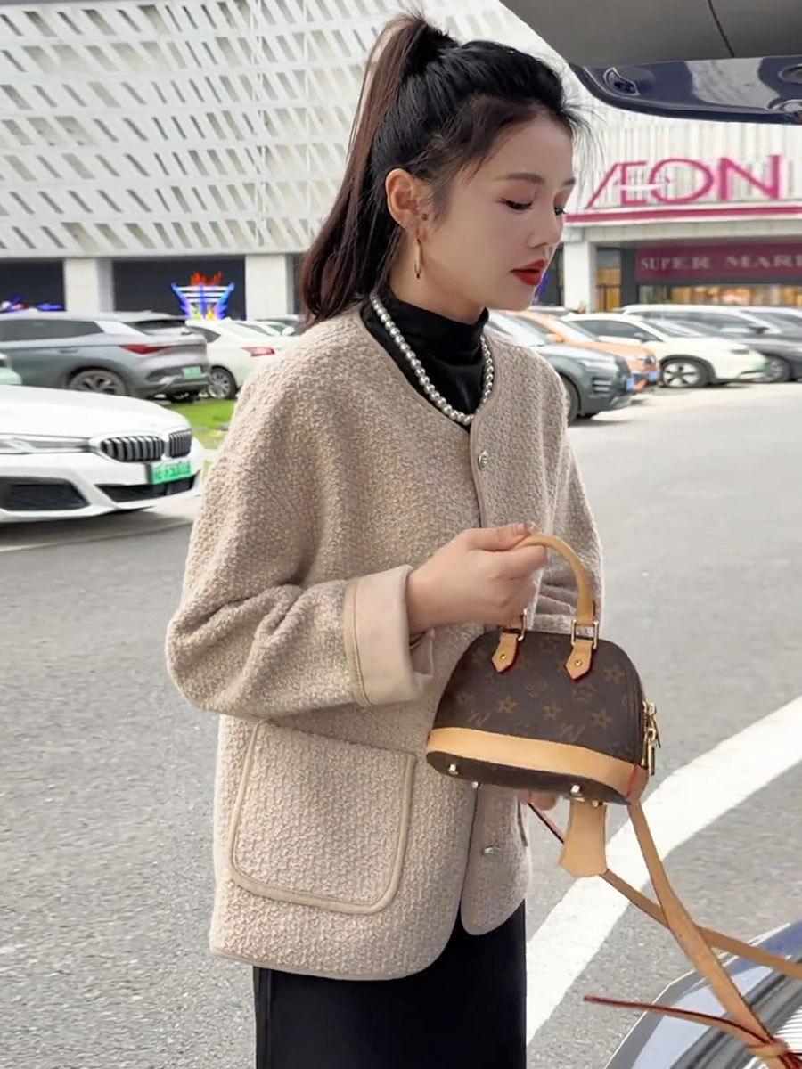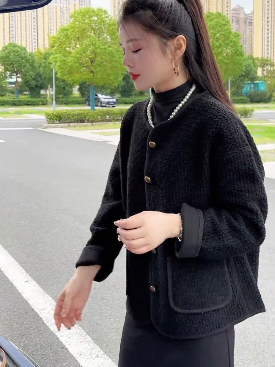 Abrigo de lana estilo Chanel, holgado e informal, estilo europeo, para mujer, otoño e invierno 2024, nuevo abrigo de piel con cuello redondo.