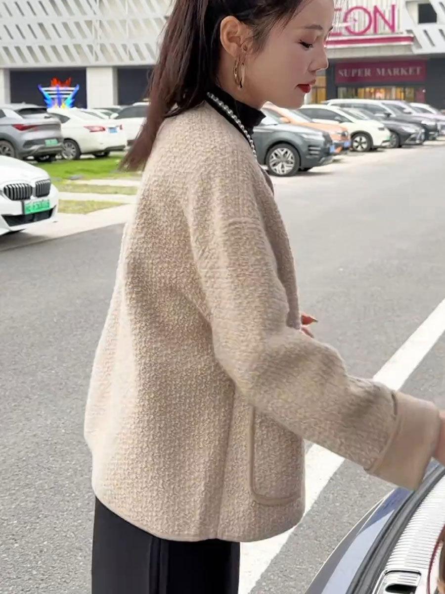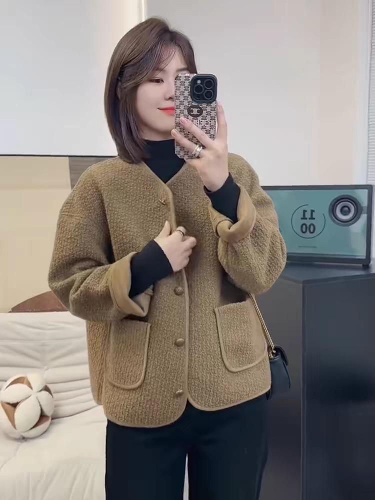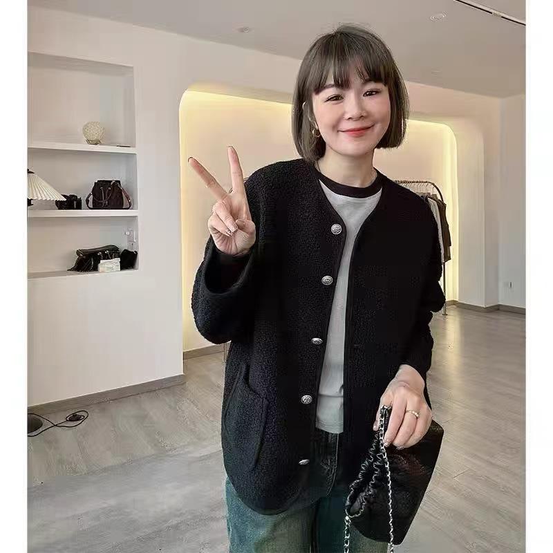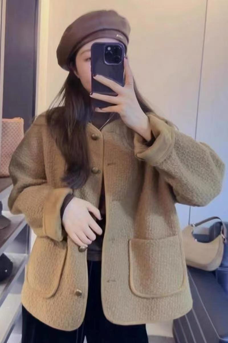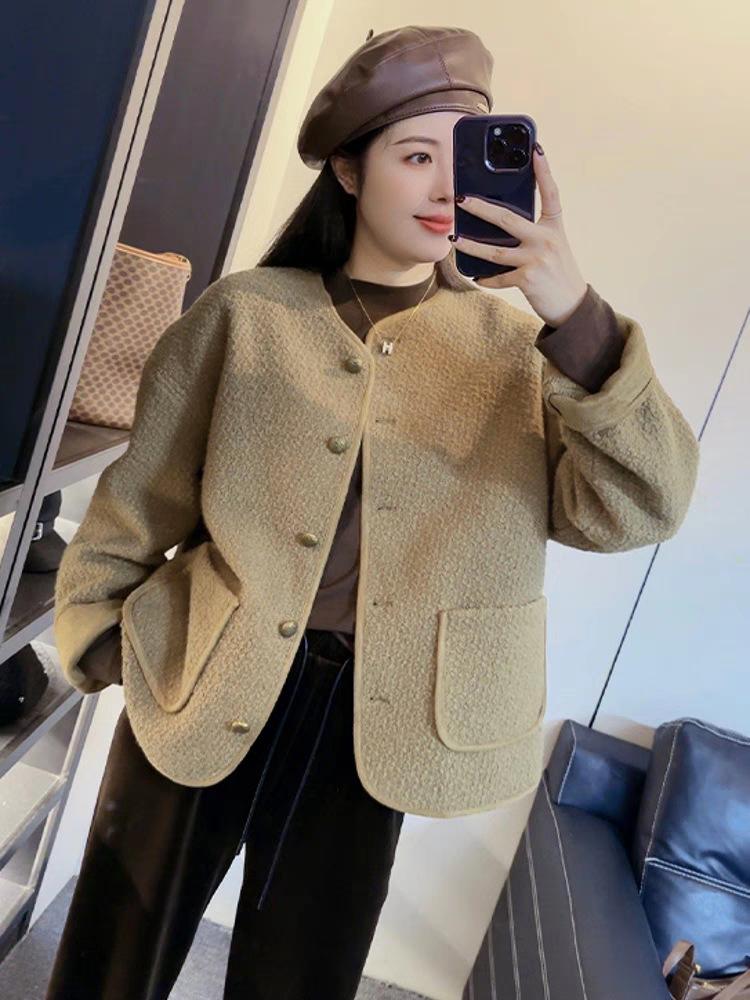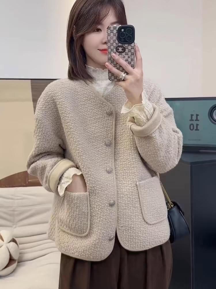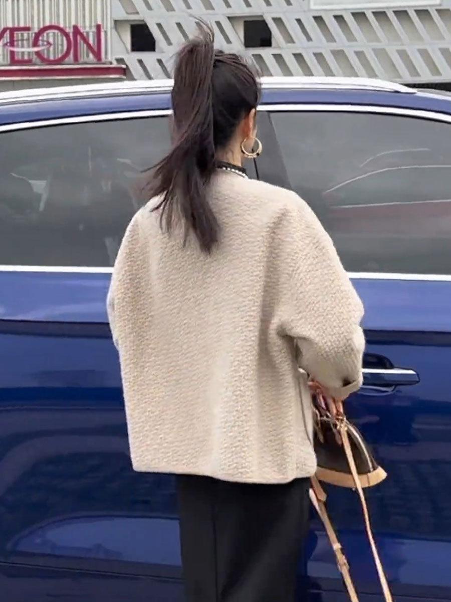 Abrigo de lana estilo Chanel, holgado e informal, estilo europeo, para mujer, otoño e invierno 2024, nuevo abrigo de piel con cuello redondo.