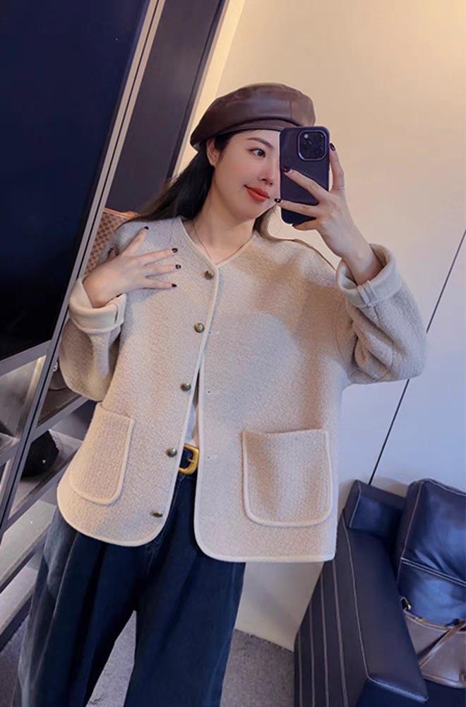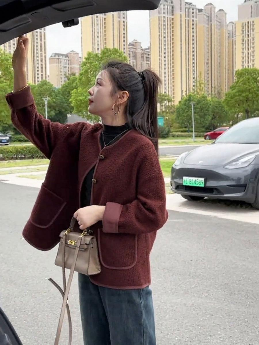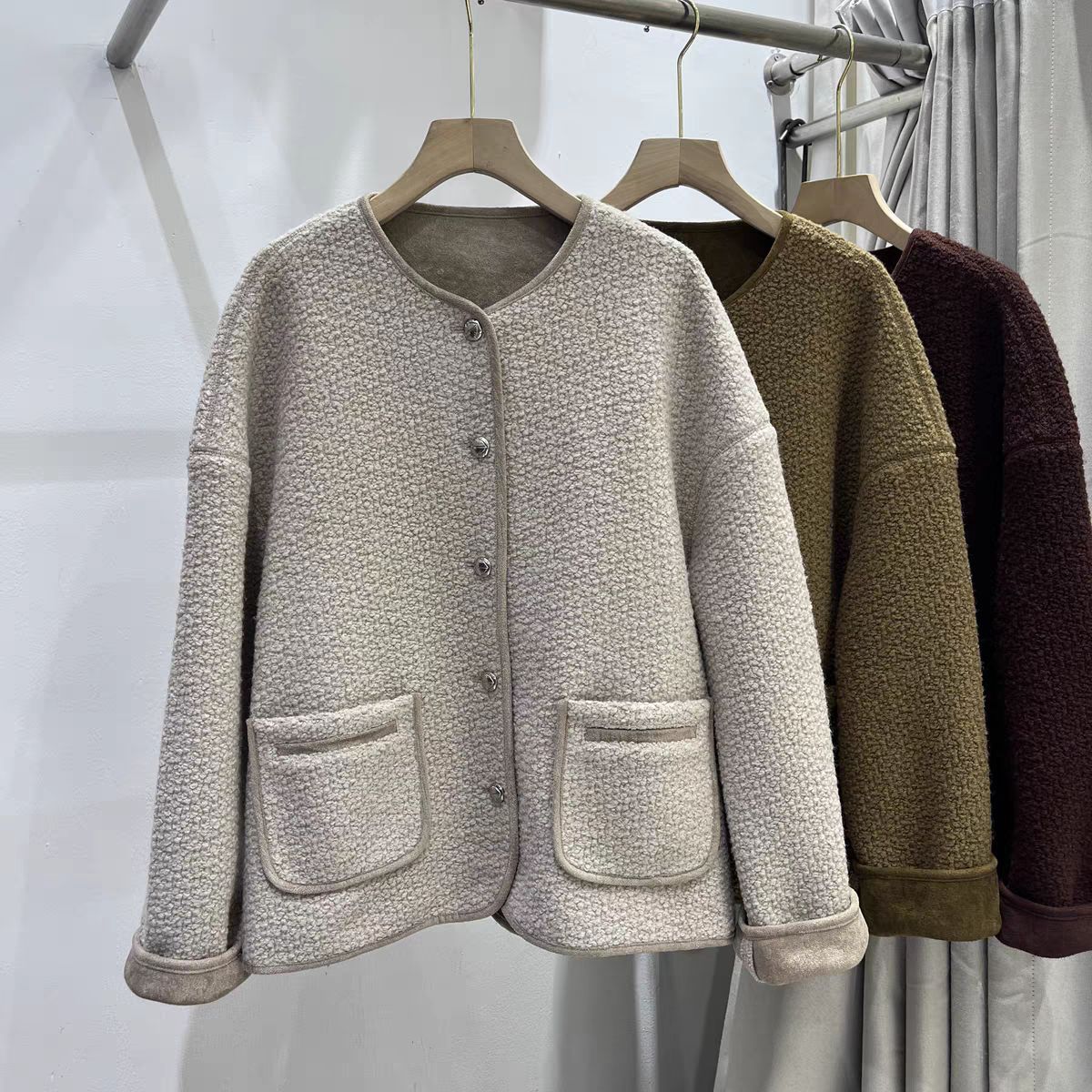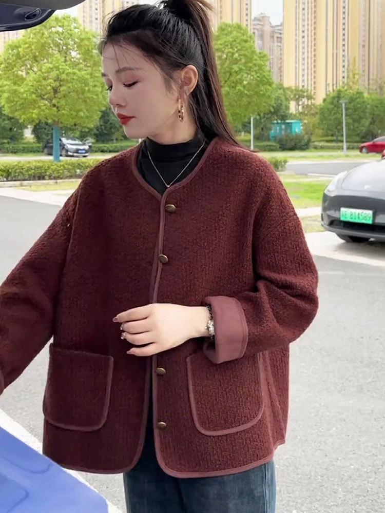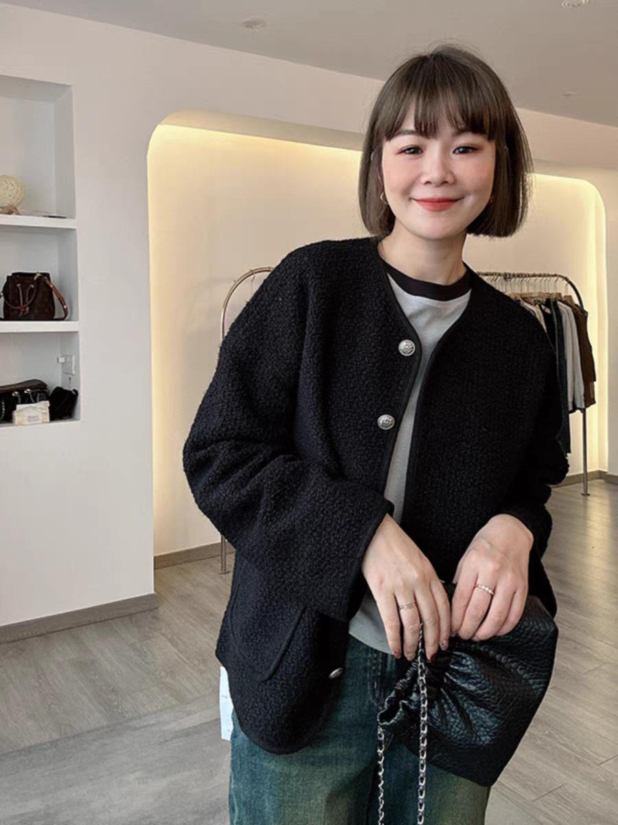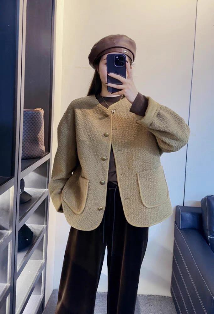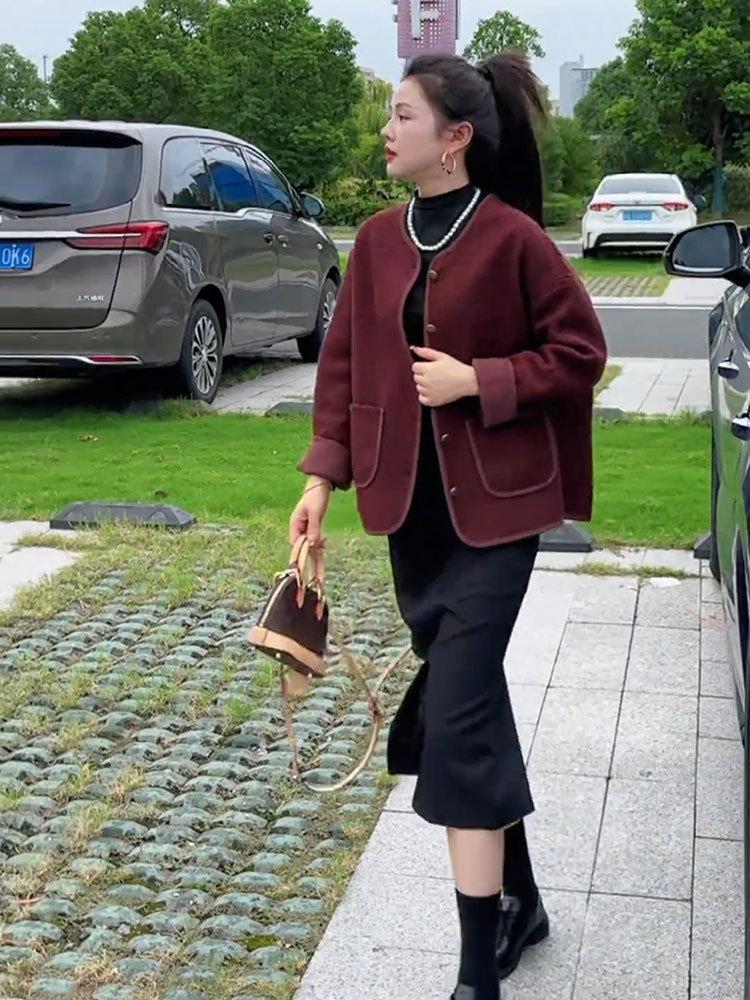 Abrigo de lana estilo Chanel, holgado e informal, estilo europeo, para mujer, otoño e invierno 2024, nuevo abrigo de piel con cuello redondo.
