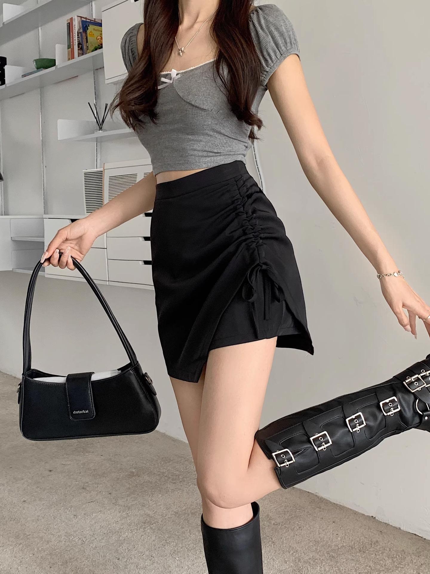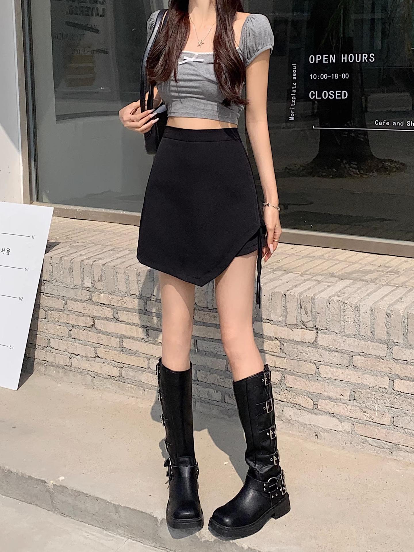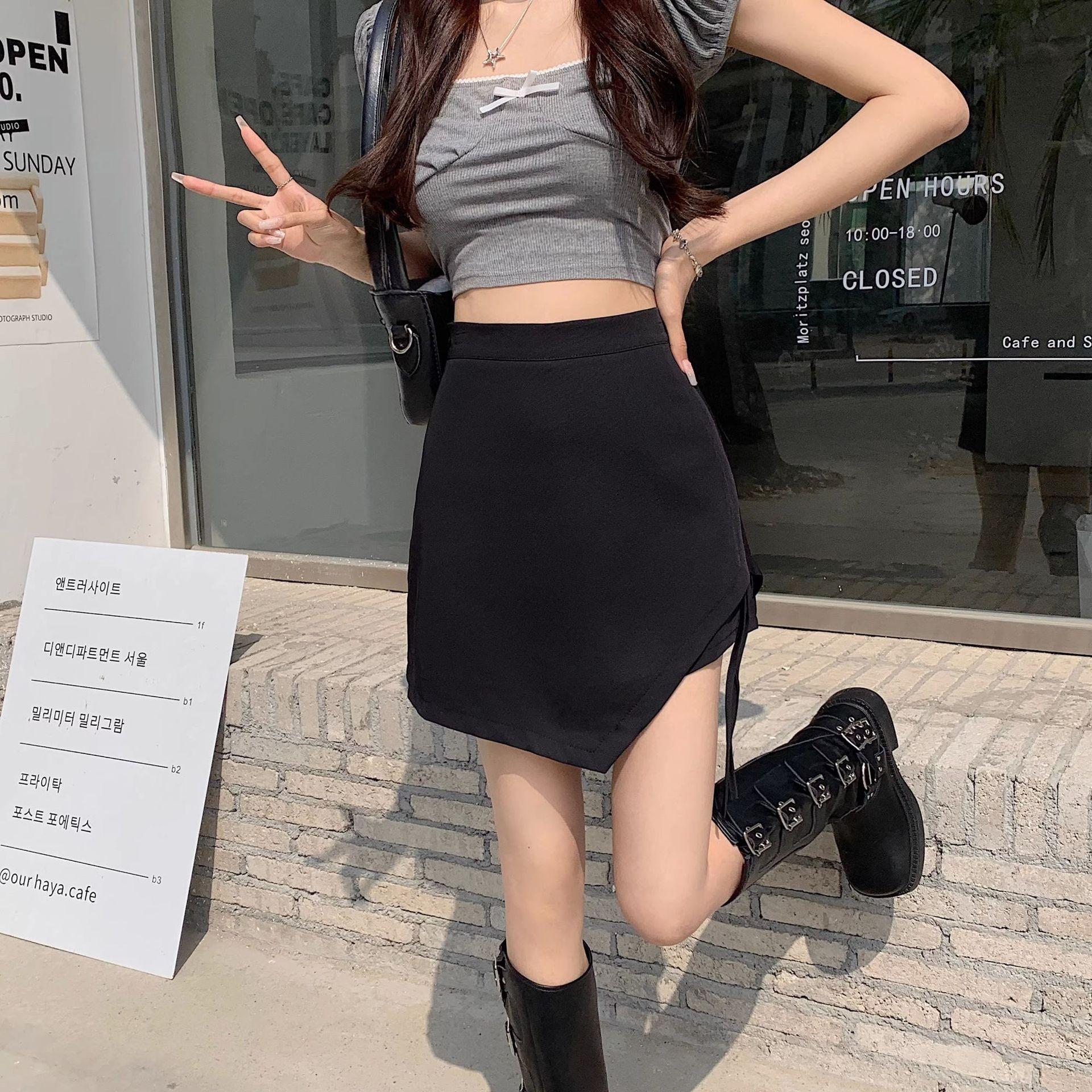 Falda de verano con diseño nuevo, plisada, con cordón, irregular, de cintura alta, adelgazante, de media línea A
