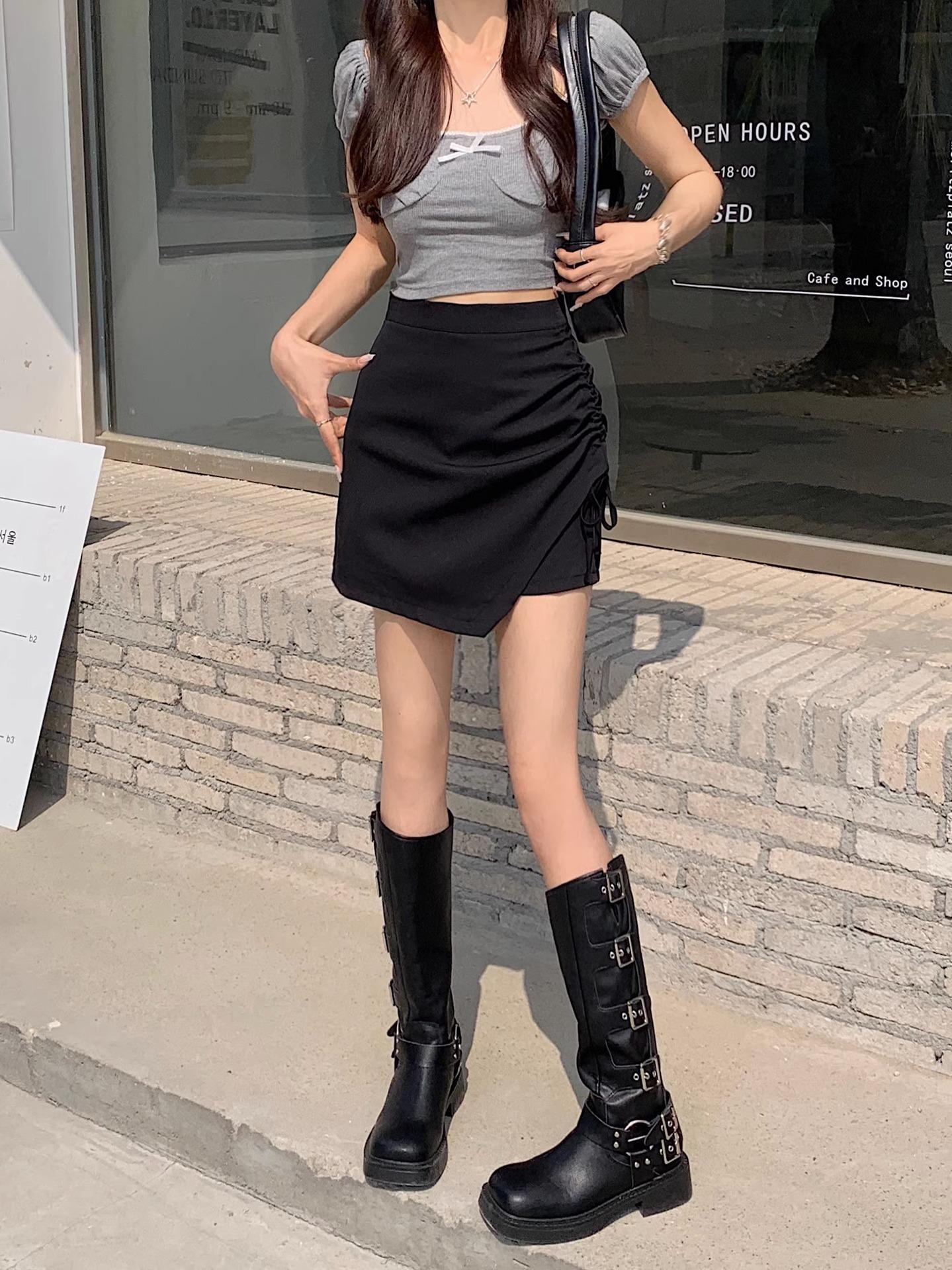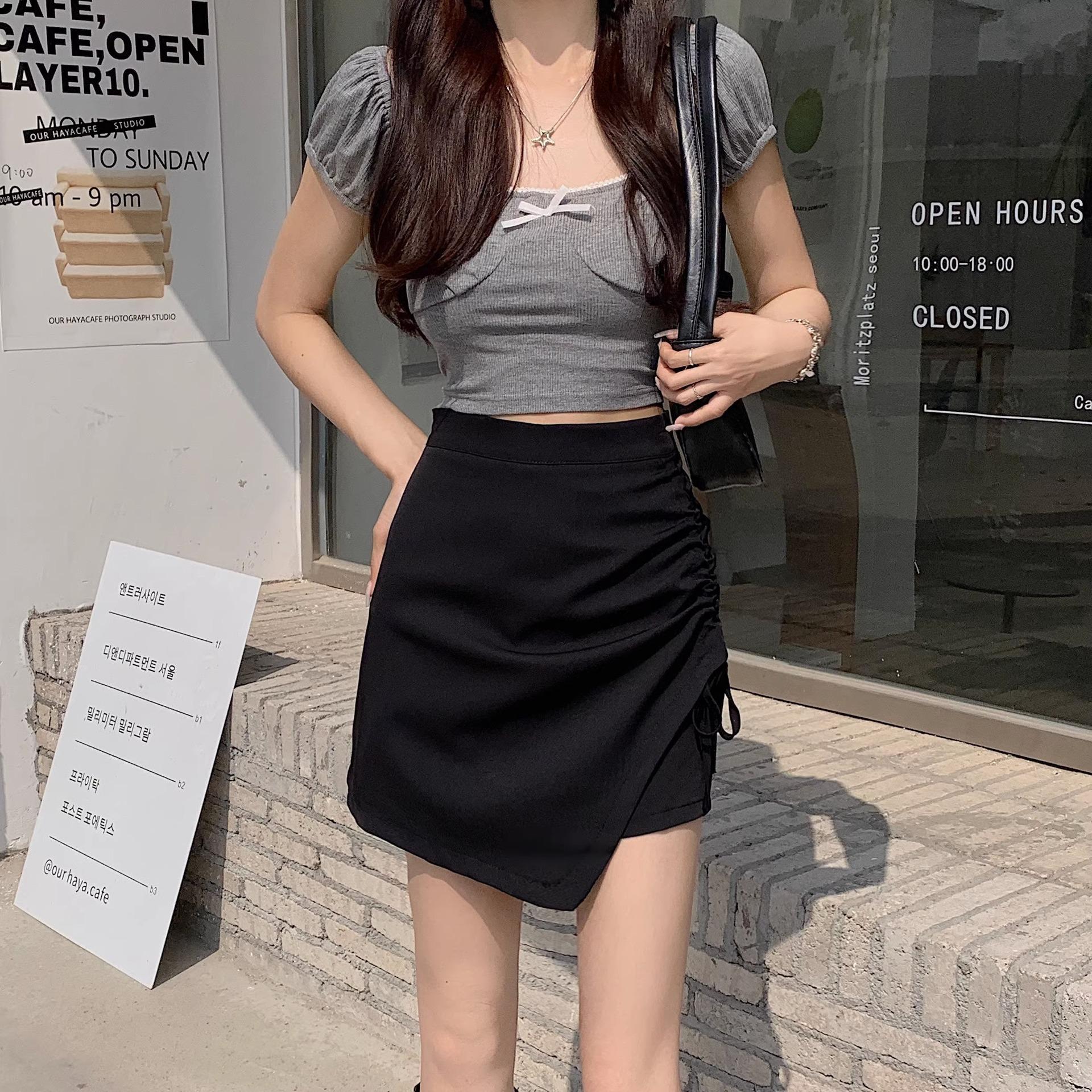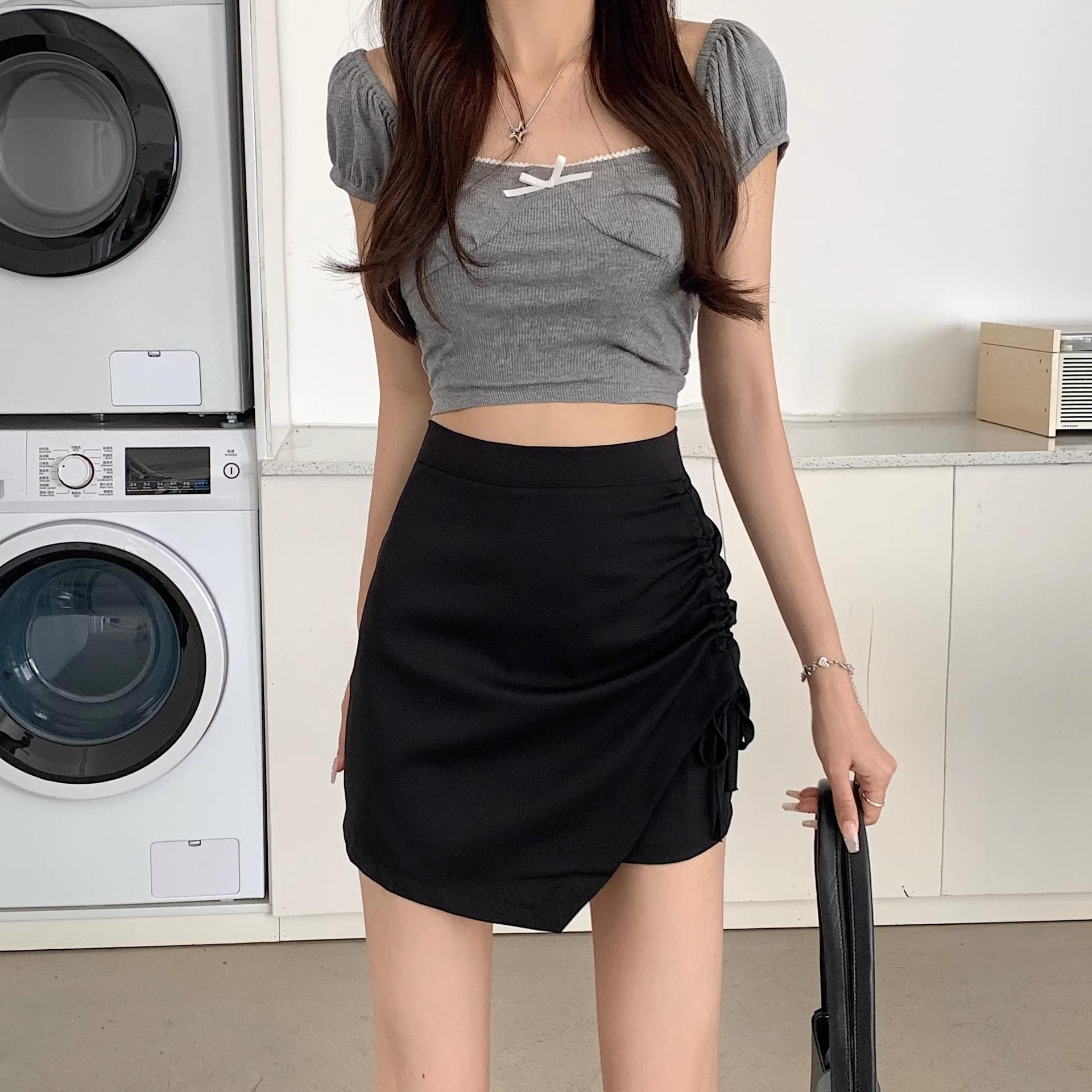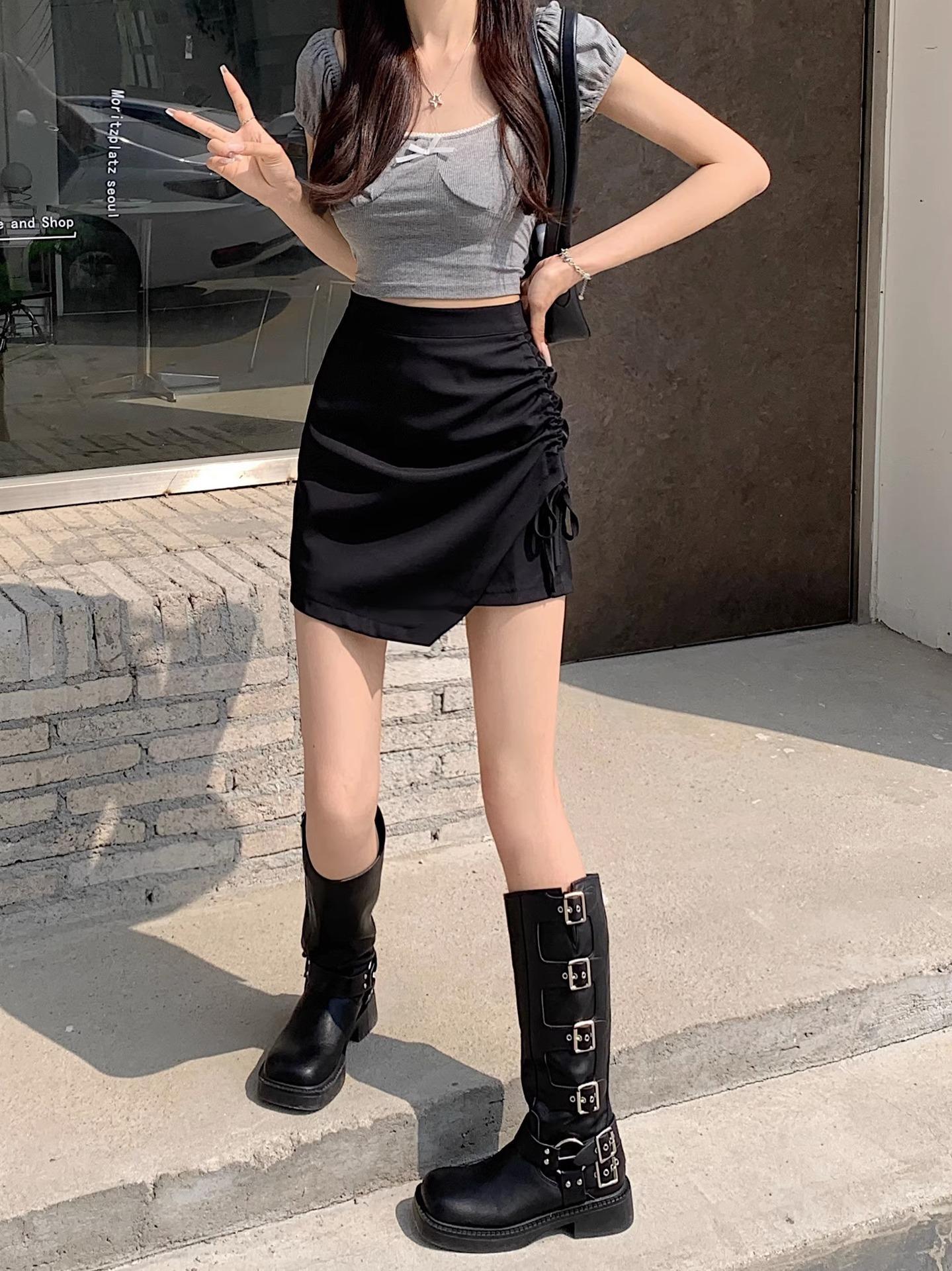 Falda de verano con diseño nuevo, plisada, con cordón, irregular, de cintura alta, adelgazante, de media línea A