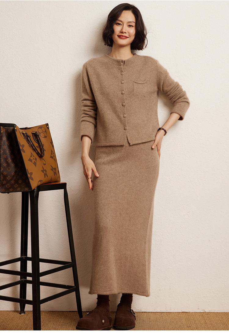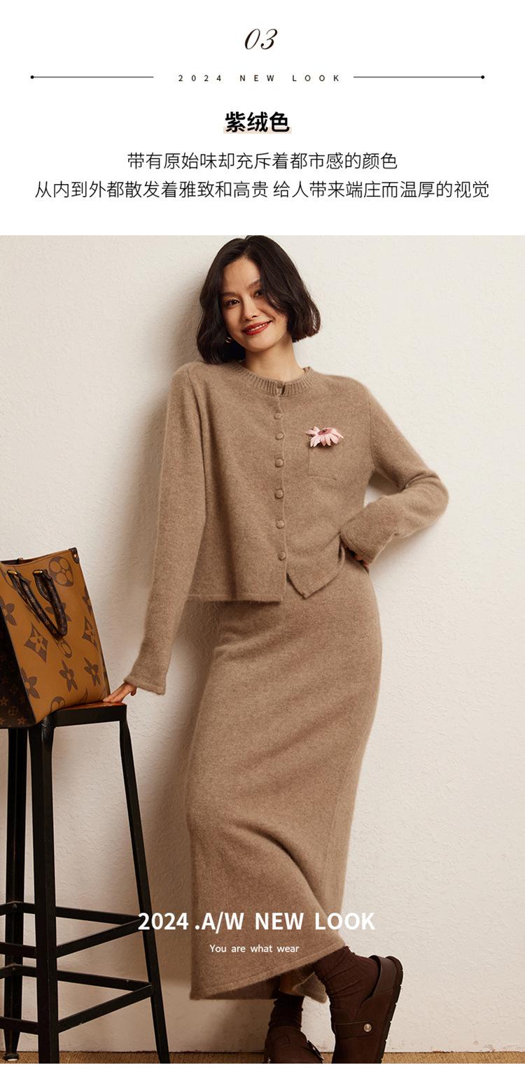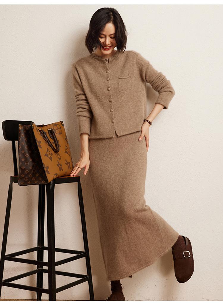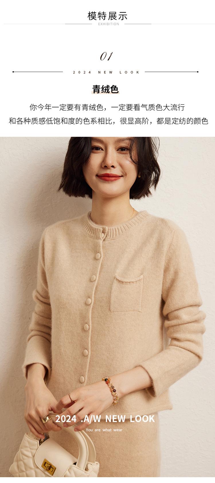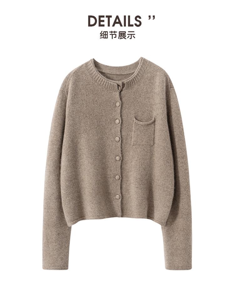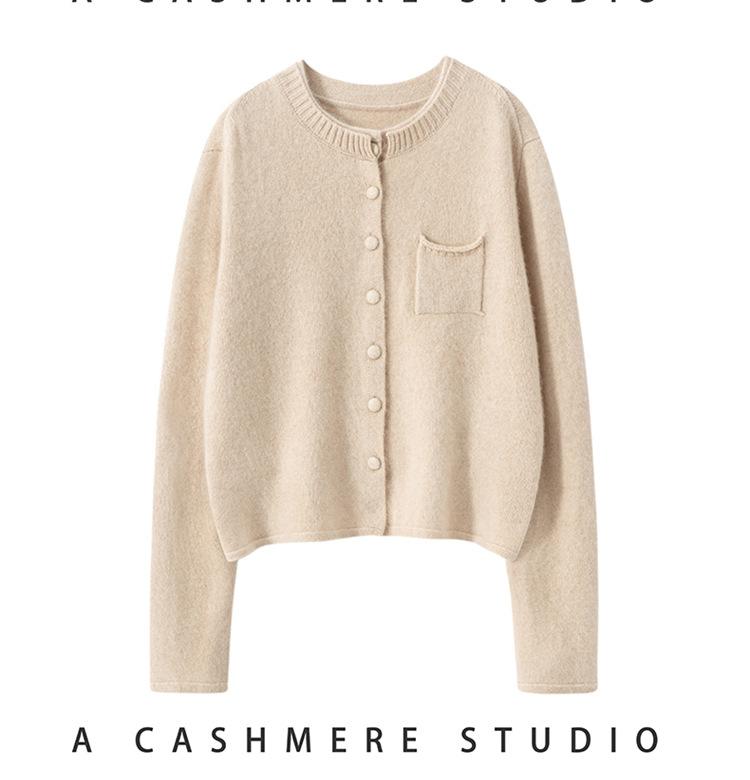 Otoño e Invierno Nuevo Cárdigan de Moda Casual Holgado de Cuello Redondo para Mujer Tejido de Cachemira Suave Chaqueta Estilo Urbano Relajado