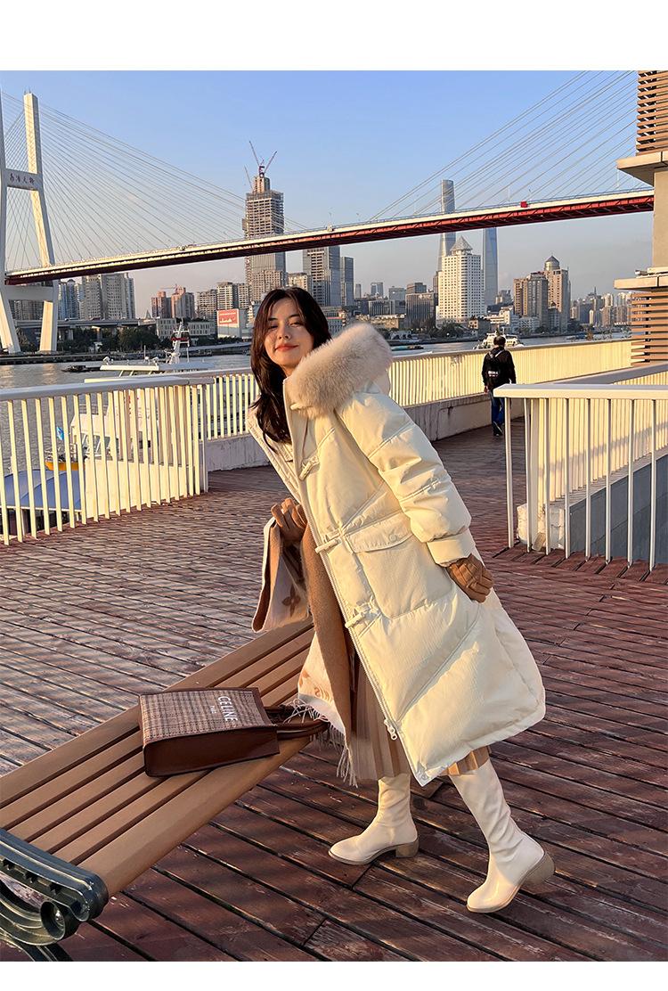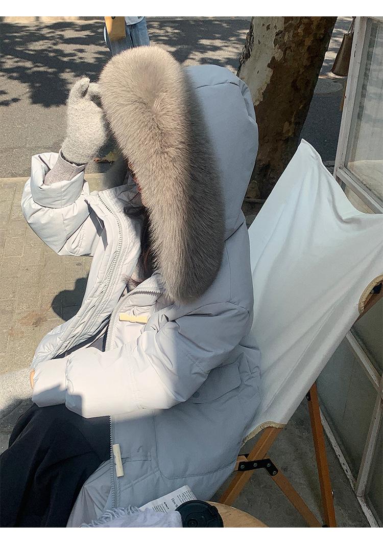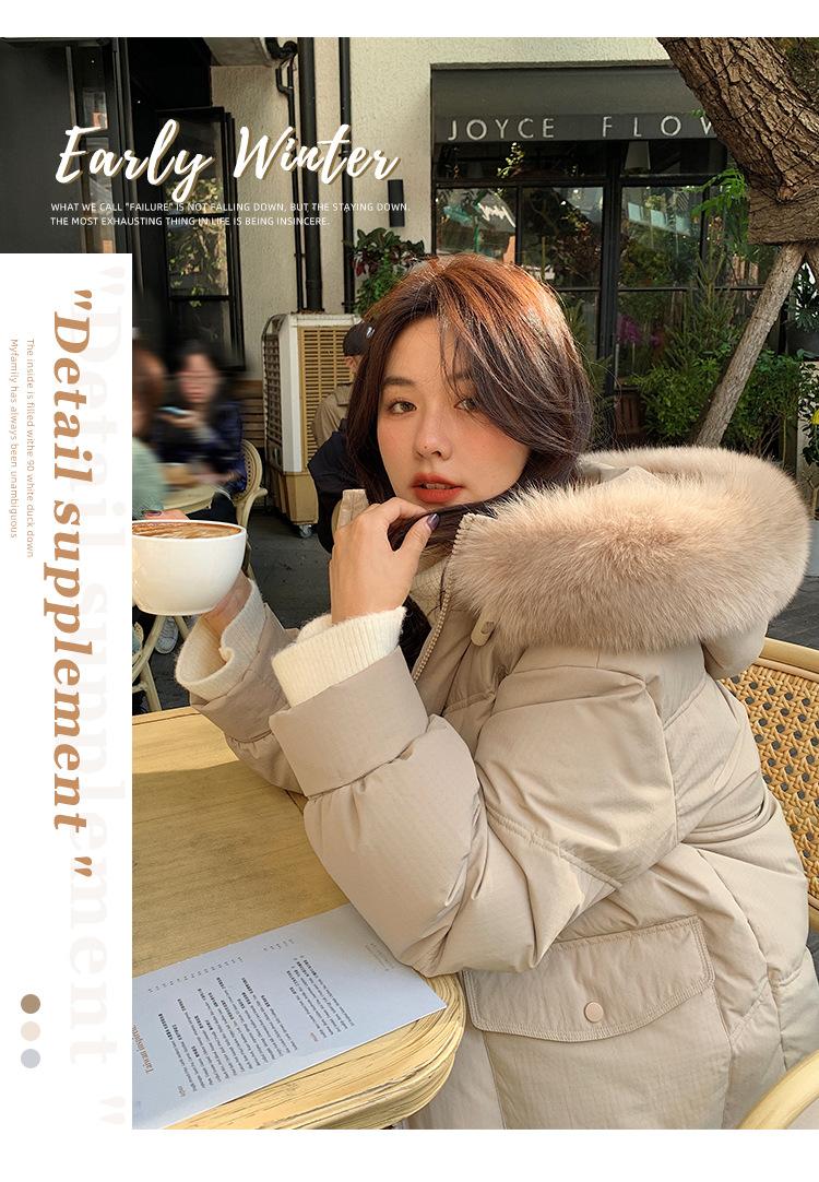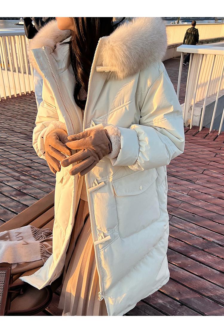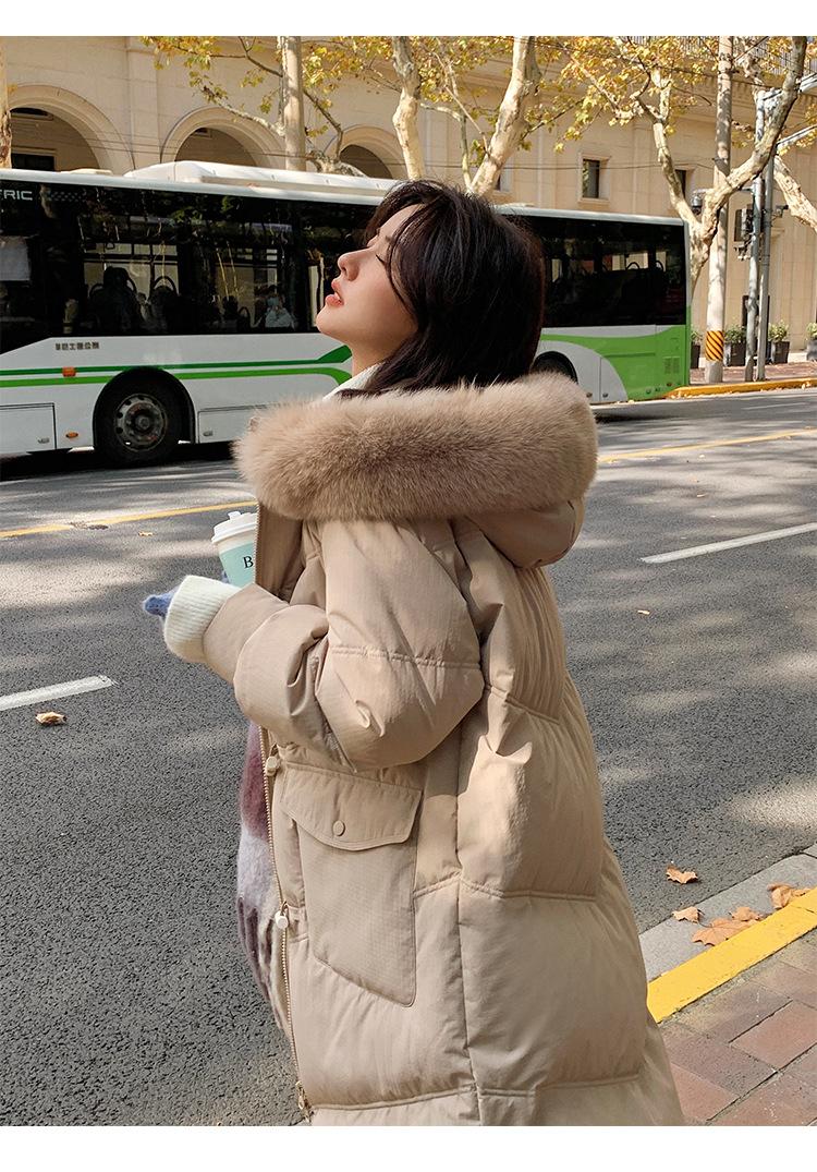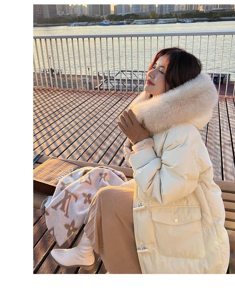 Pinghu Chaqueta de Plumas para Mujer de Largo Medio 2025 Nueva Extremadamente Fría Engrosada Estilo Preppy Cuello Grande de Piel Plumón de Pato Blanco Invierno Abrigo