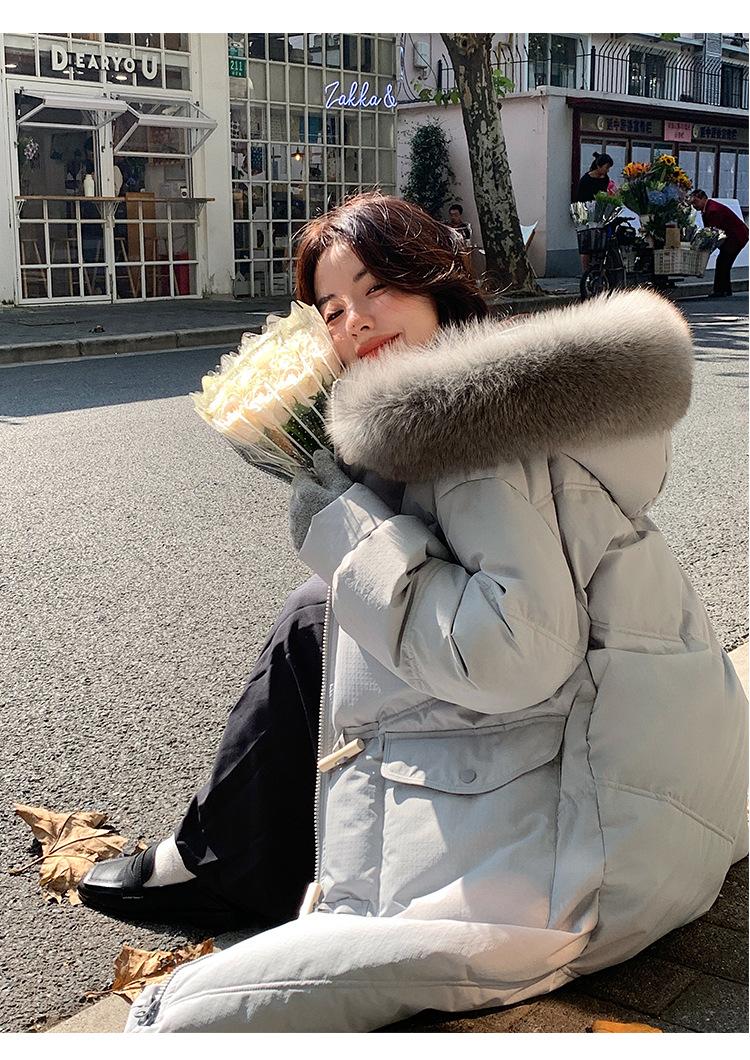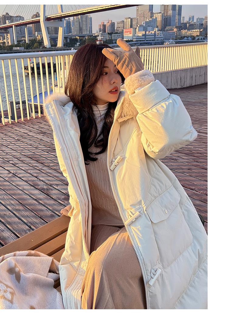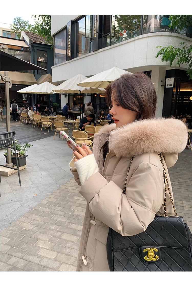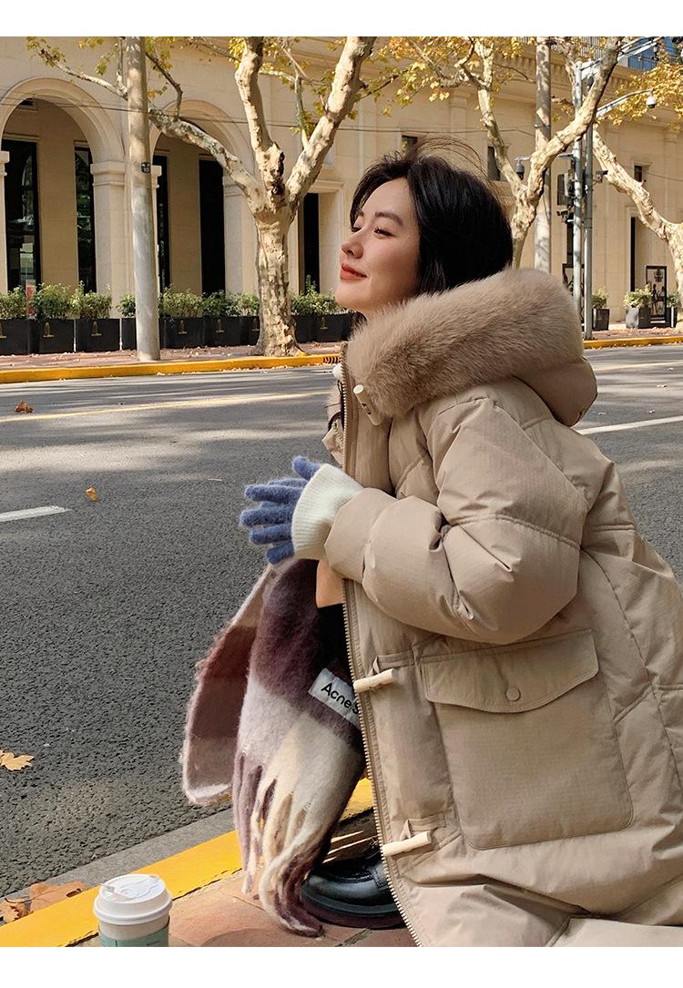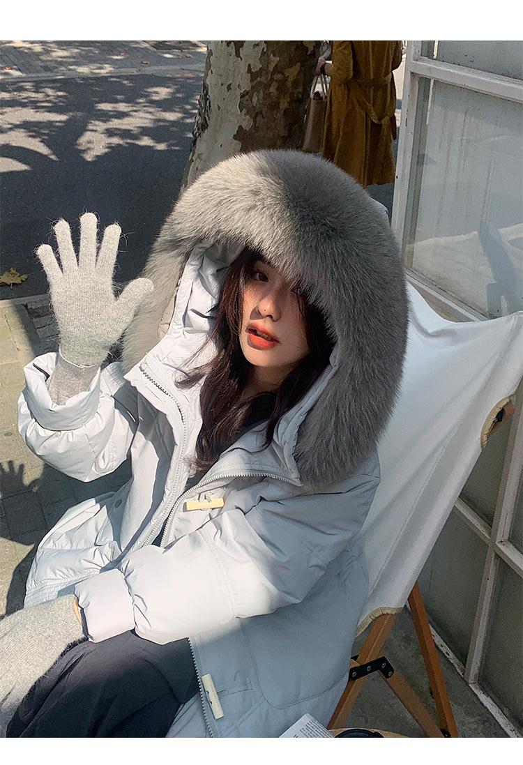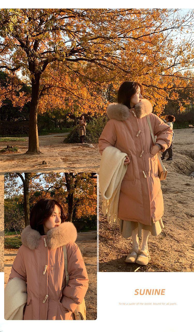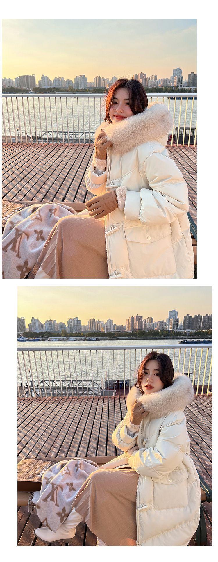 Pinghu Chaqueta de Plumas para Mujer de Largo Medio 2025 Nueva Extremadamente Fría Engrosada Estilo Preppy Cuello Grande de Piel Plumón de Pato Blanco Invierno Abrigo