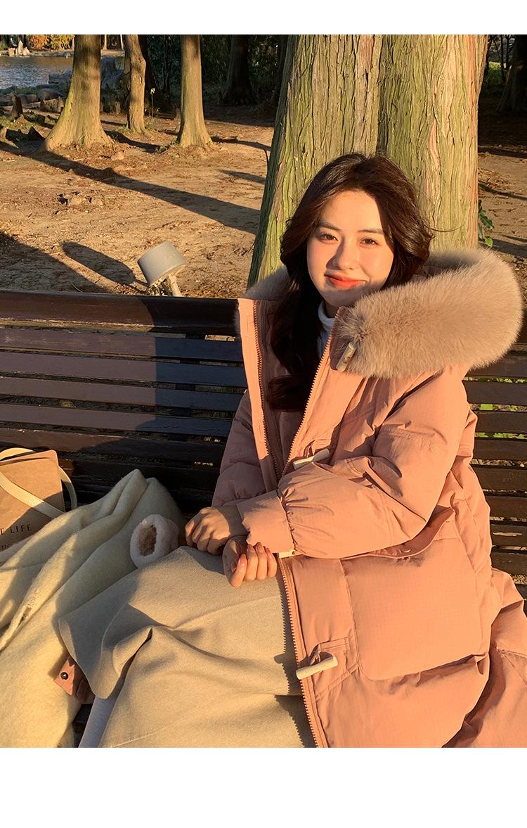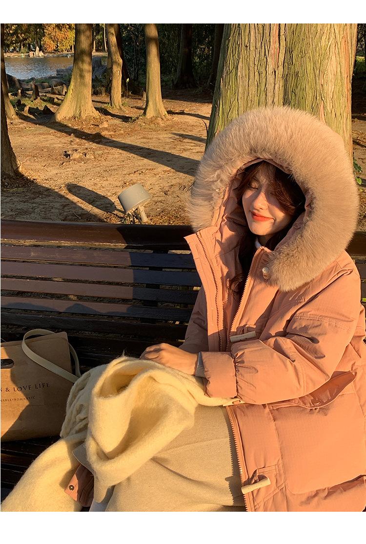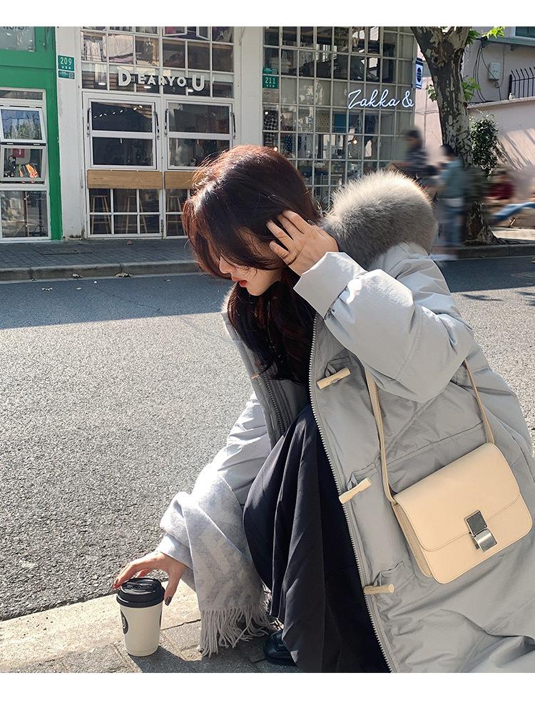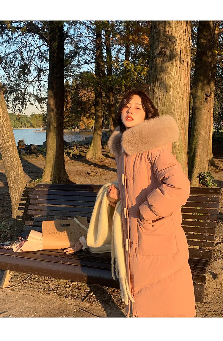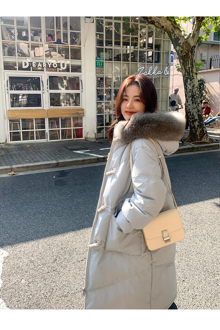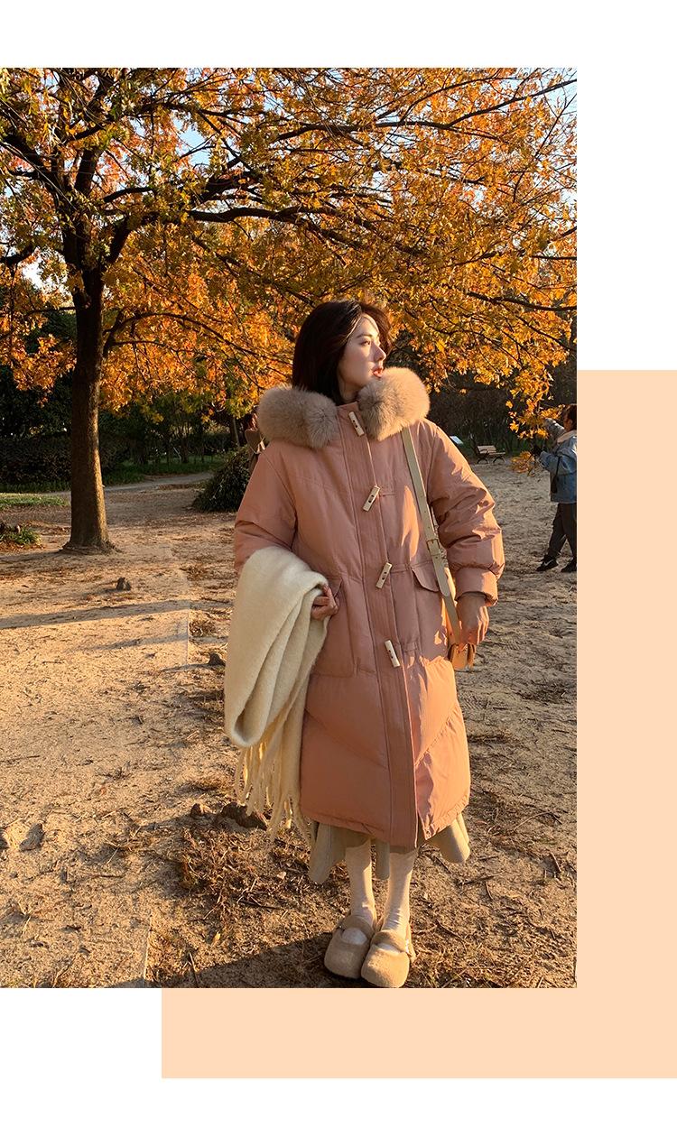 Pinghu Chaqueta de Plumas para Mujer de Largo Medio 2025 Nueva Extremadamente Fría Engrosada Estilo Preppy Cuello Grande de Piel Plumón de Pato Blanco Invierno Abrigo