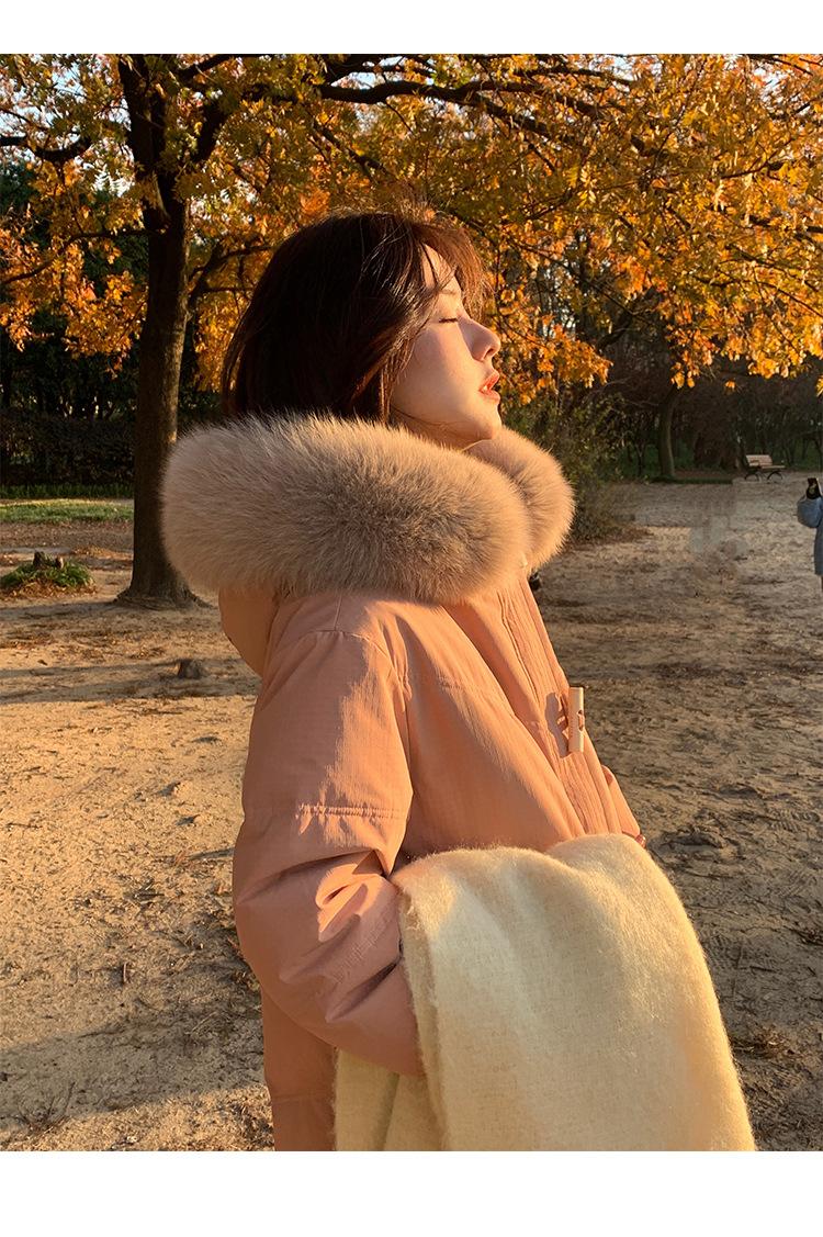 Blue + fox fur collar, Khaki + fox fur collar, Orange + fox fur collar, Beige + fox fur collar