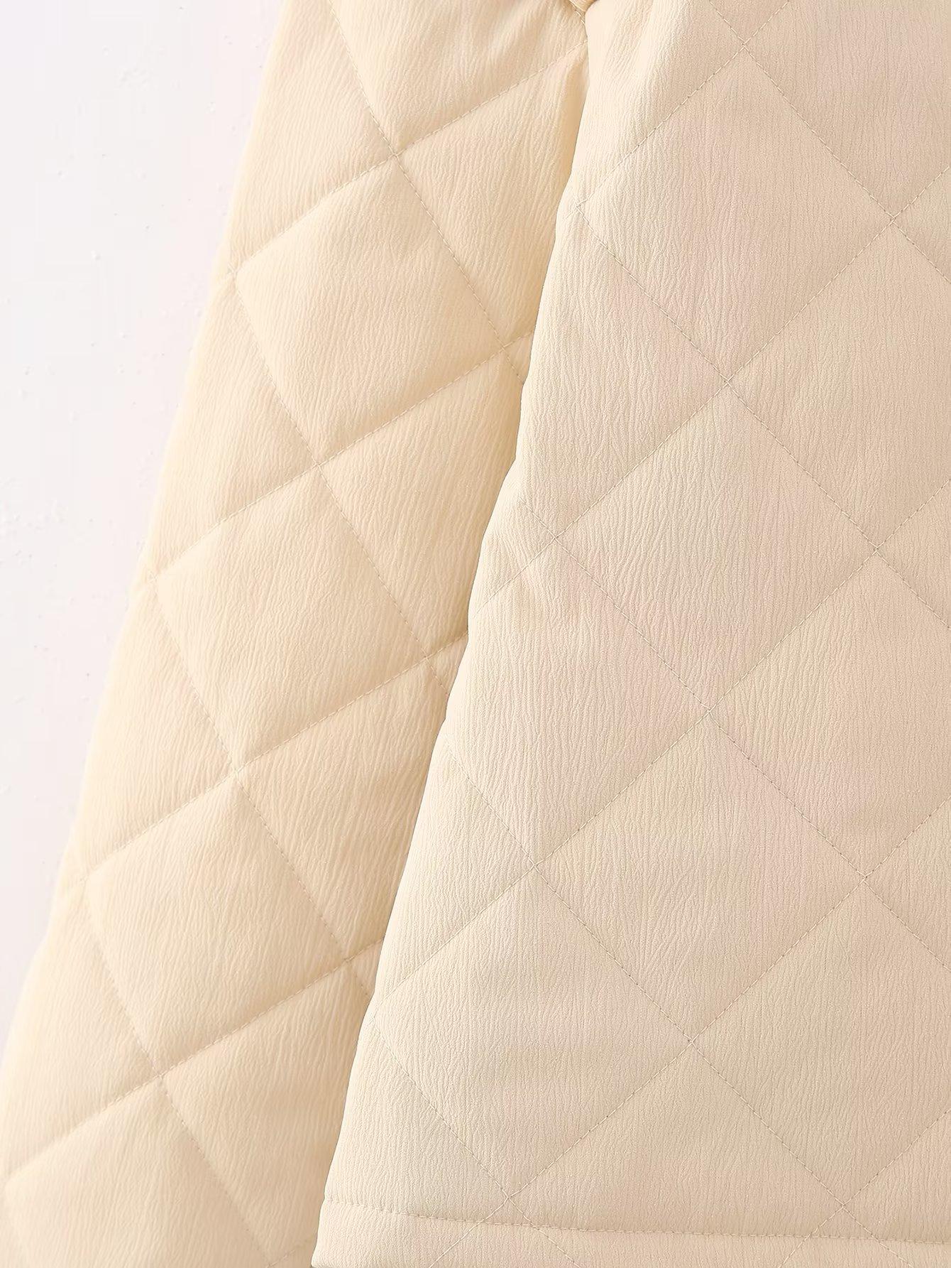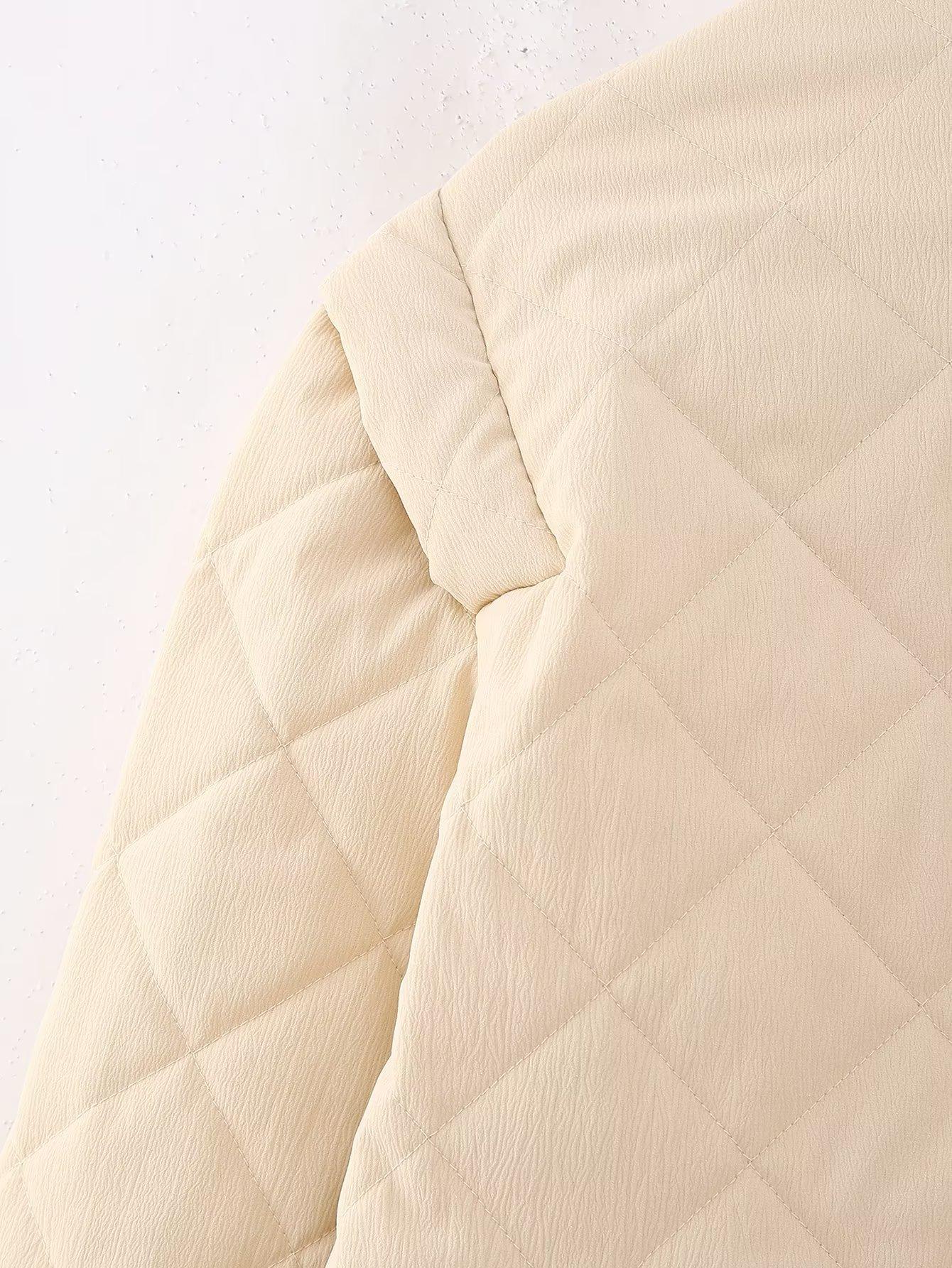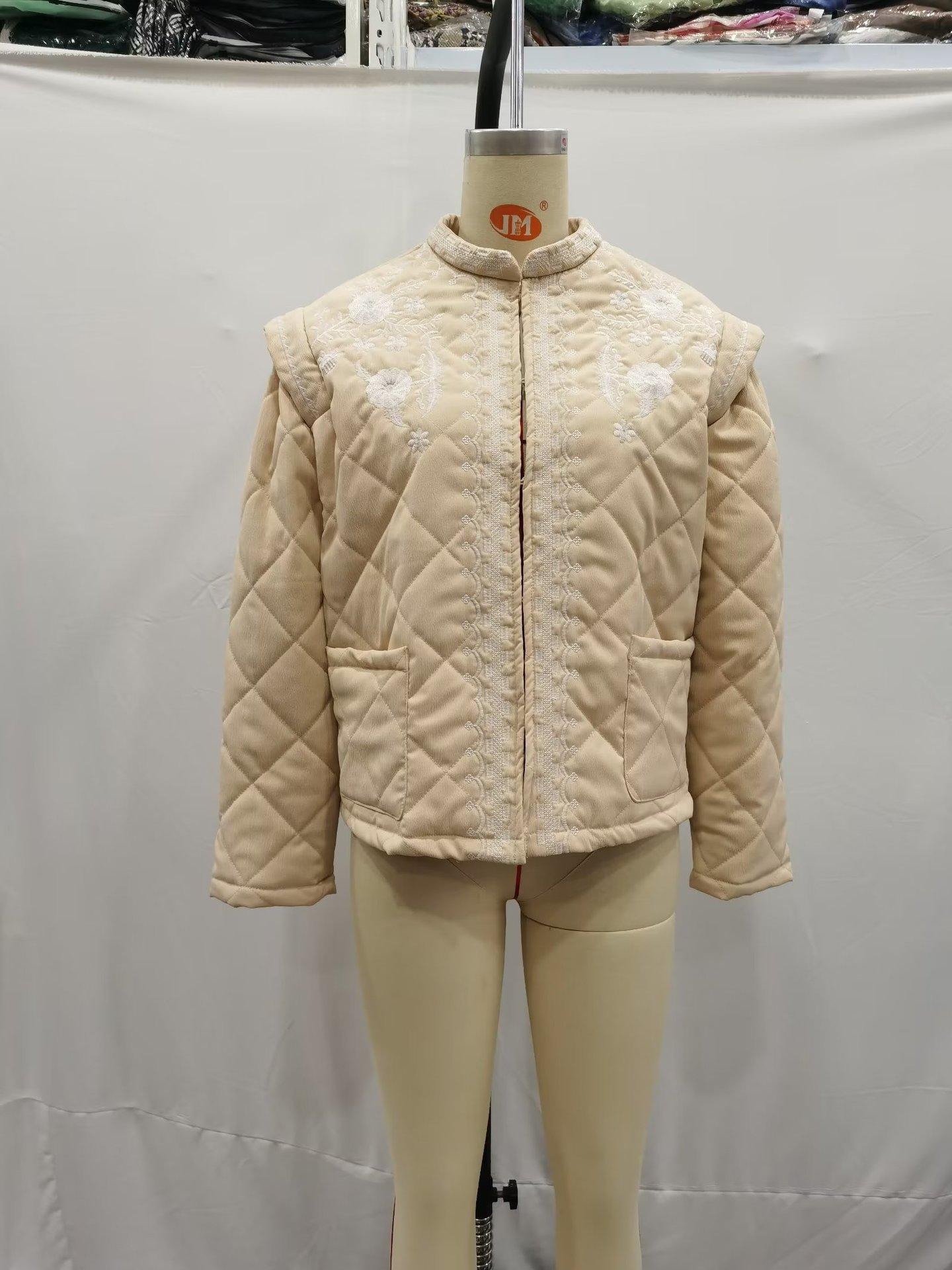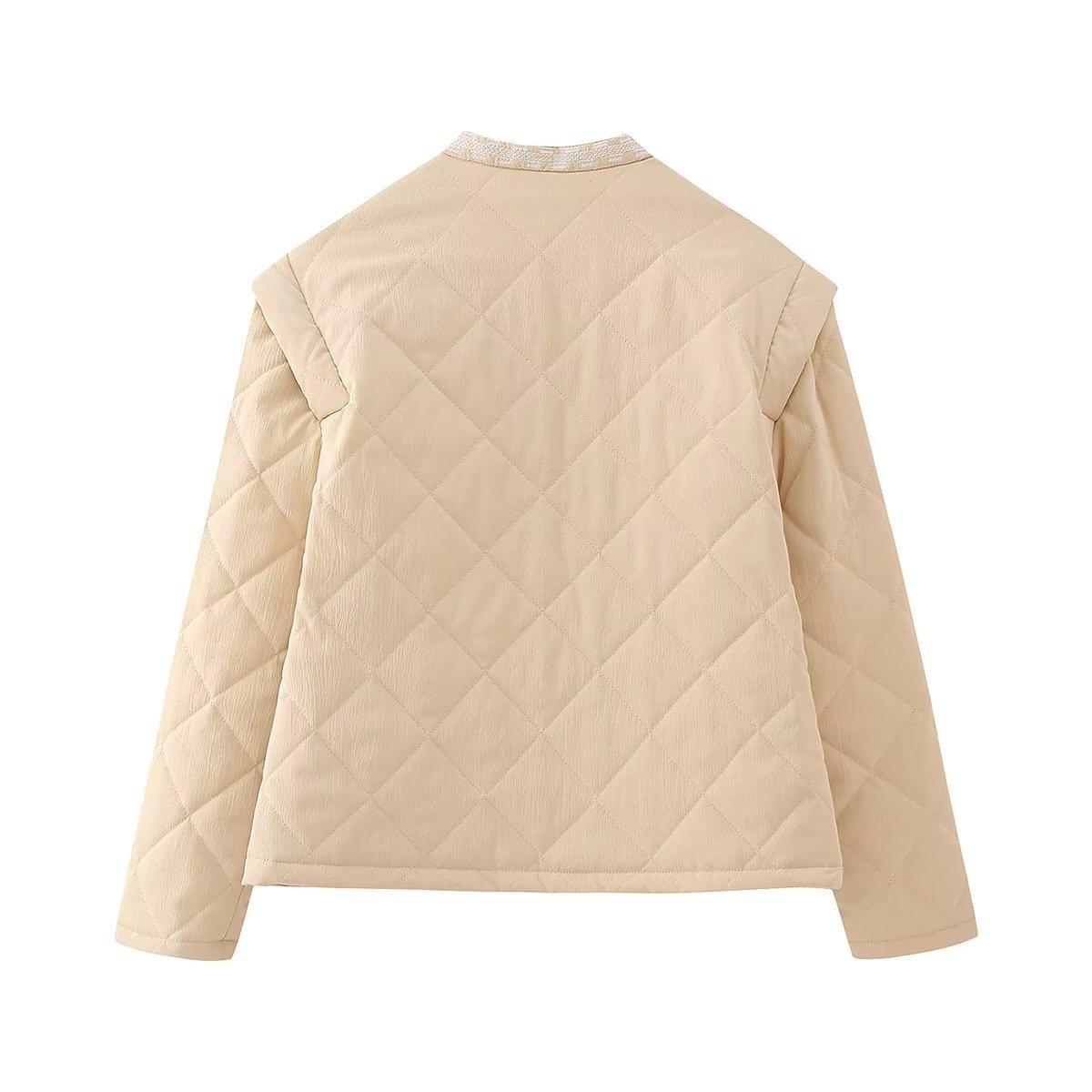 Ropa de mujer de comercio exterior transfronterizo al por mayor 2023 otoño e invierno nuevo abrigo de algodón con cuello redondo bordado con estampado de cuadros de diamantes