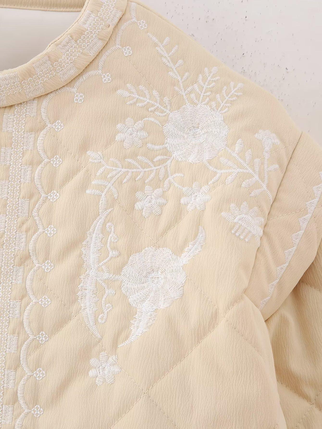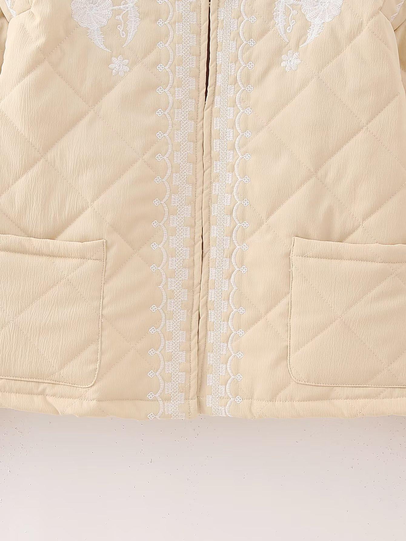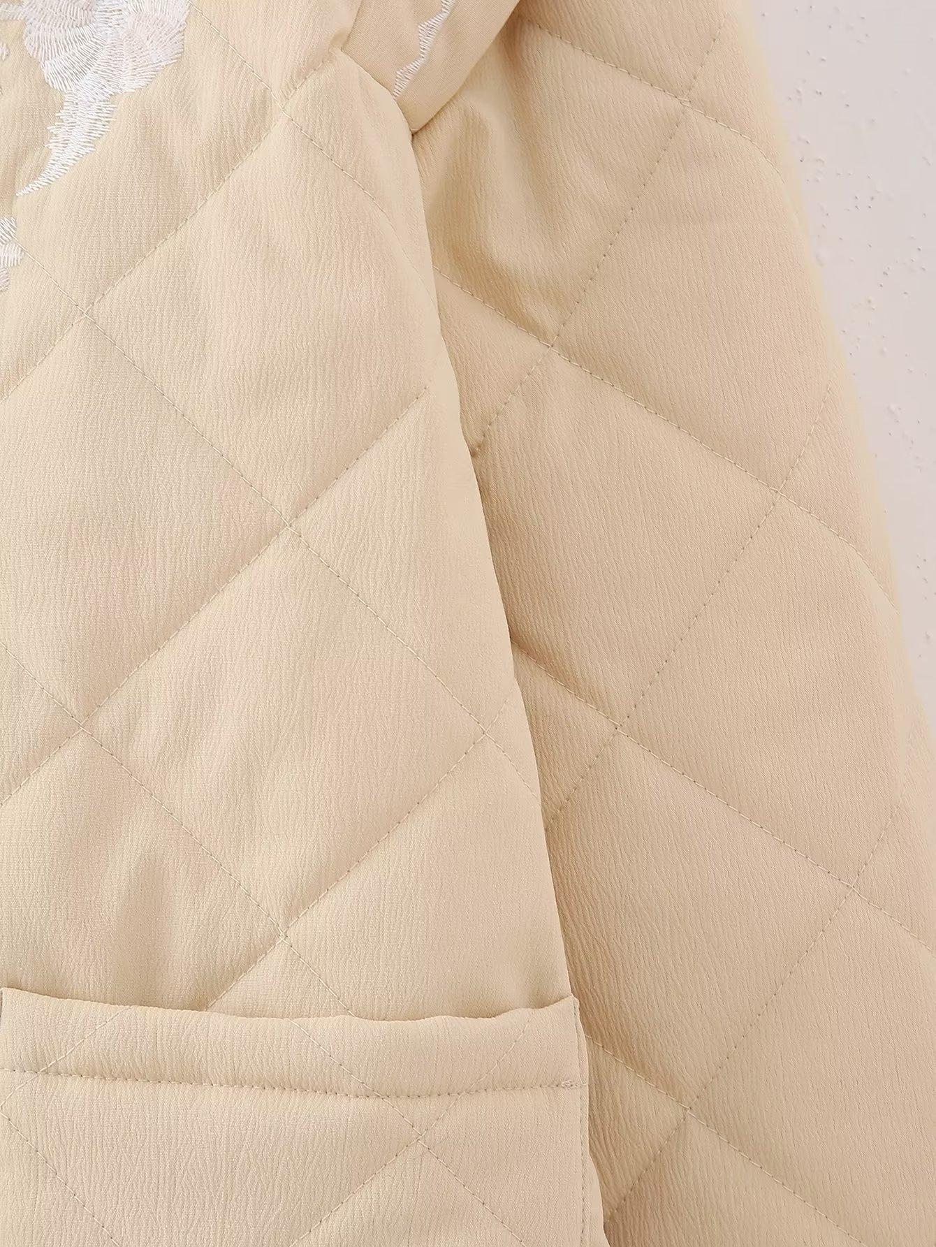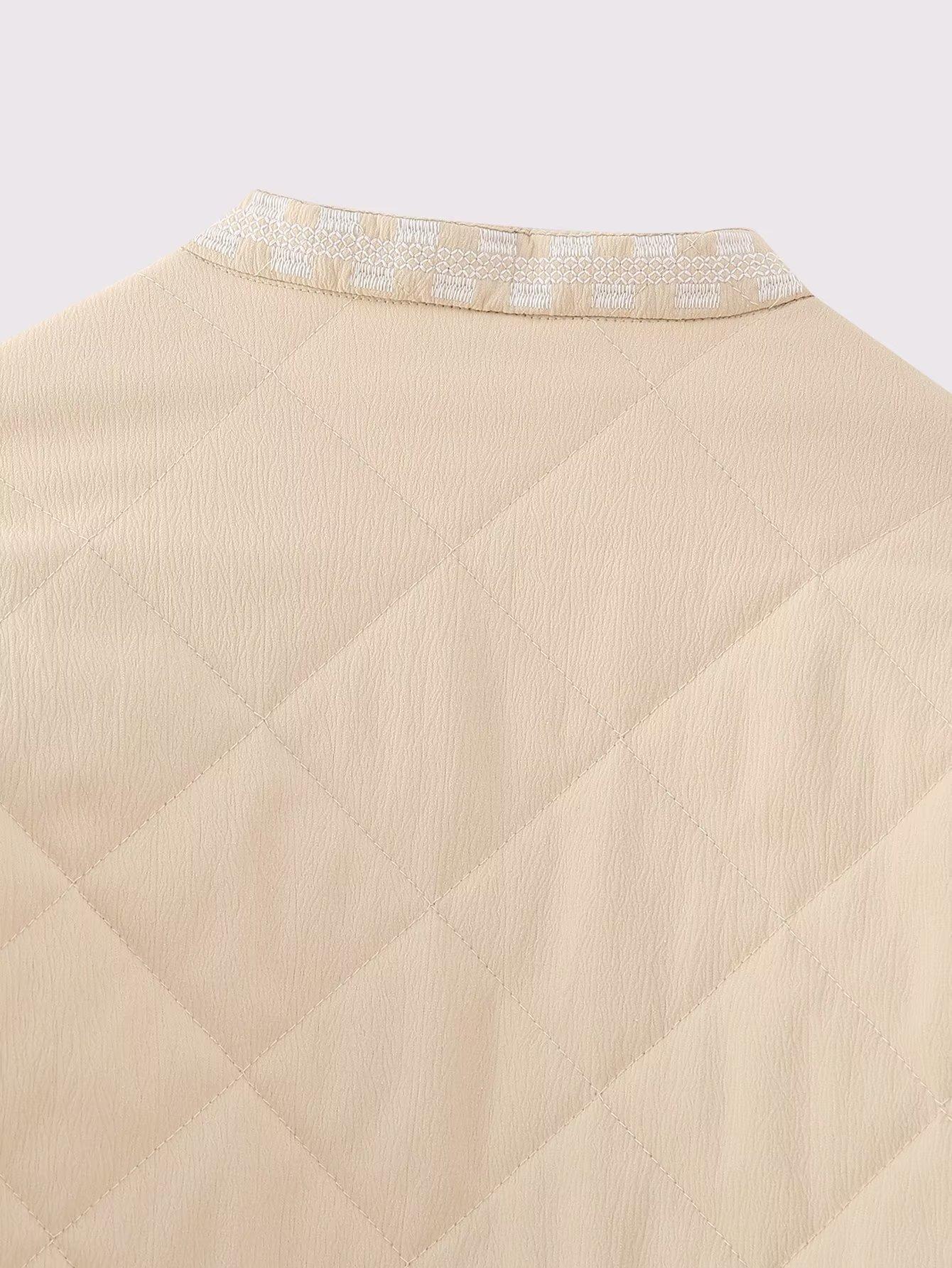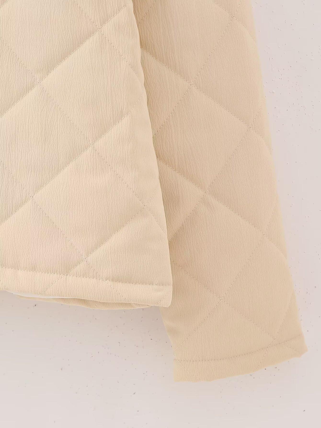 Ropa de mujer de comercio exterior transfronterizo al por mayor 2023 otoño e invierno nuevo abrigo de algodón con cuello redondo bordado con estampado de cuadros de diamantes