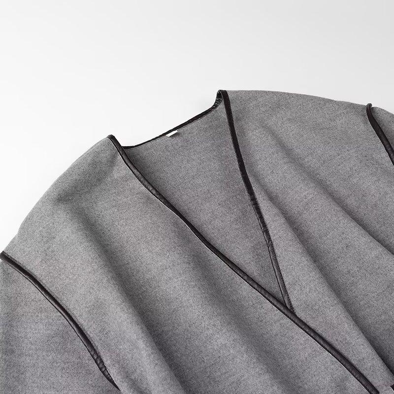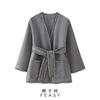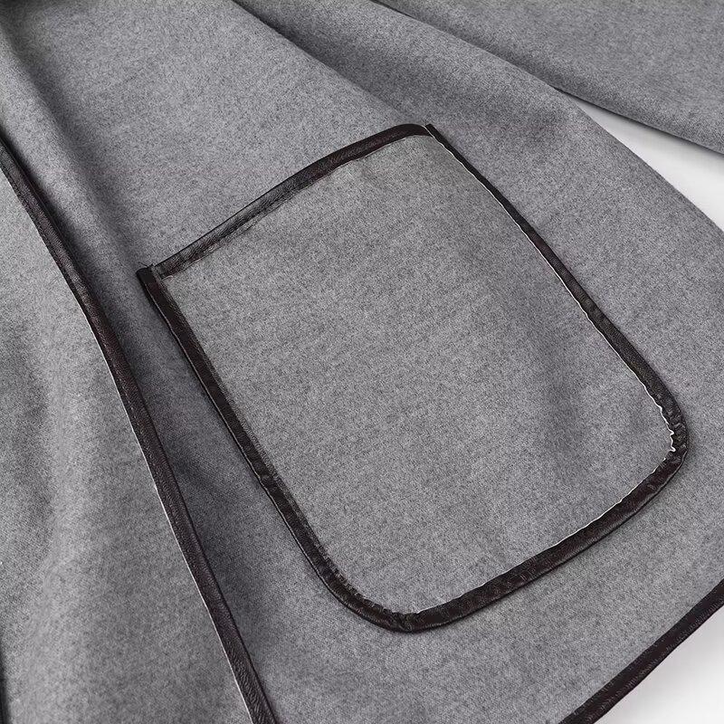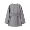 Amazon comercio exterior transfronterizo ropa de mujer europea y americana 2024 otoño e invierno nuevo temperamento moda cinturón color en contraste abrigo de tweed de doble cara