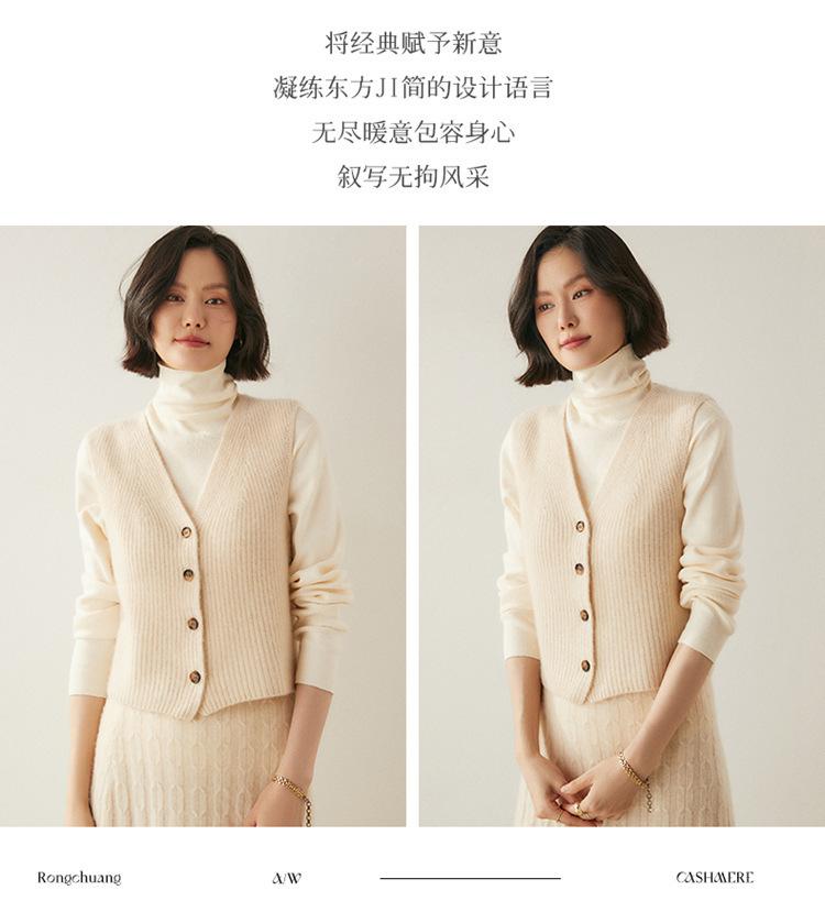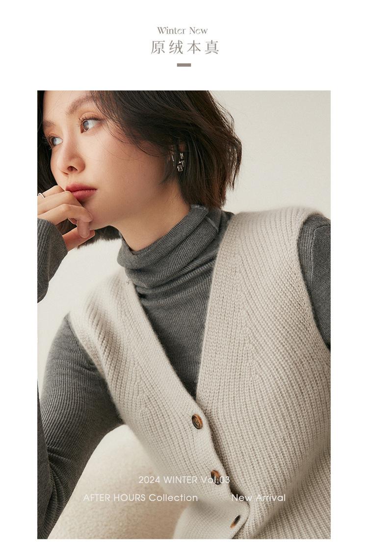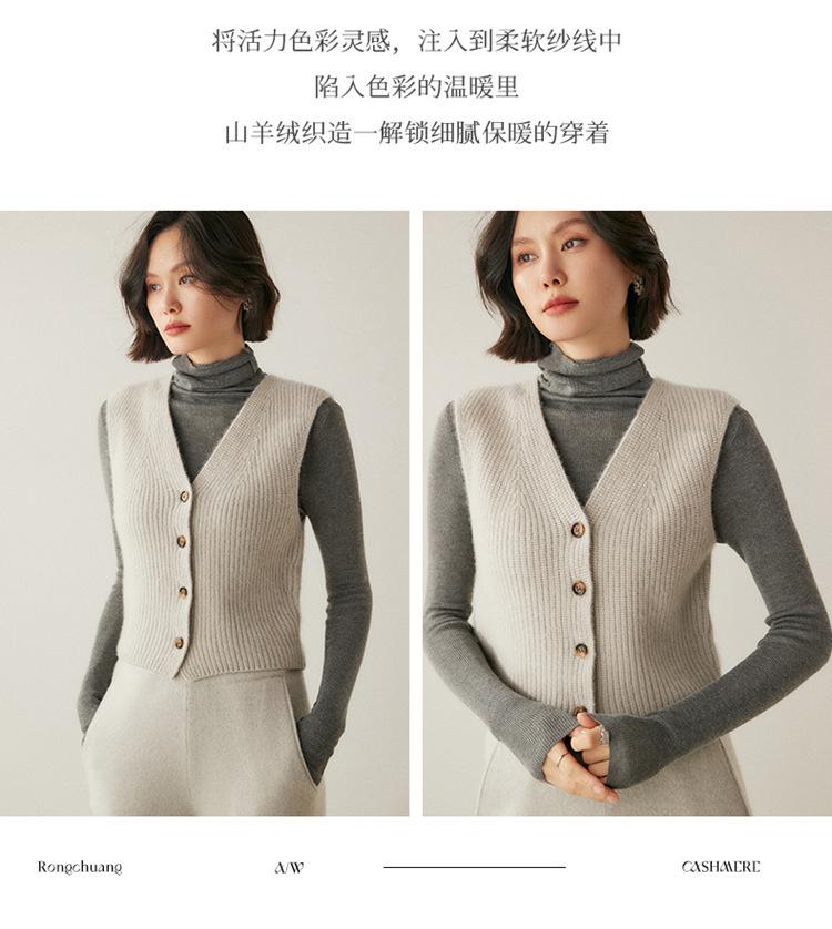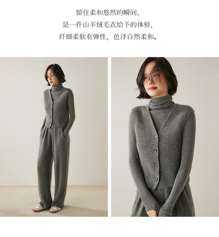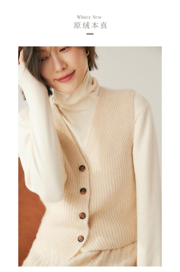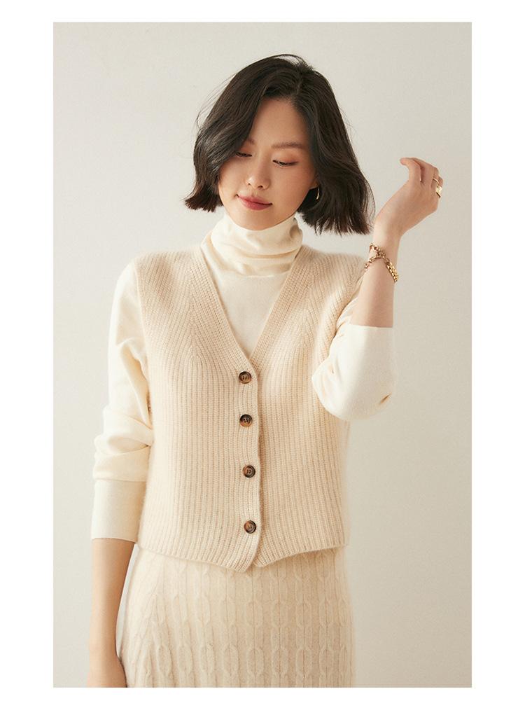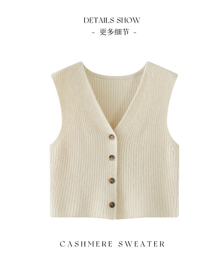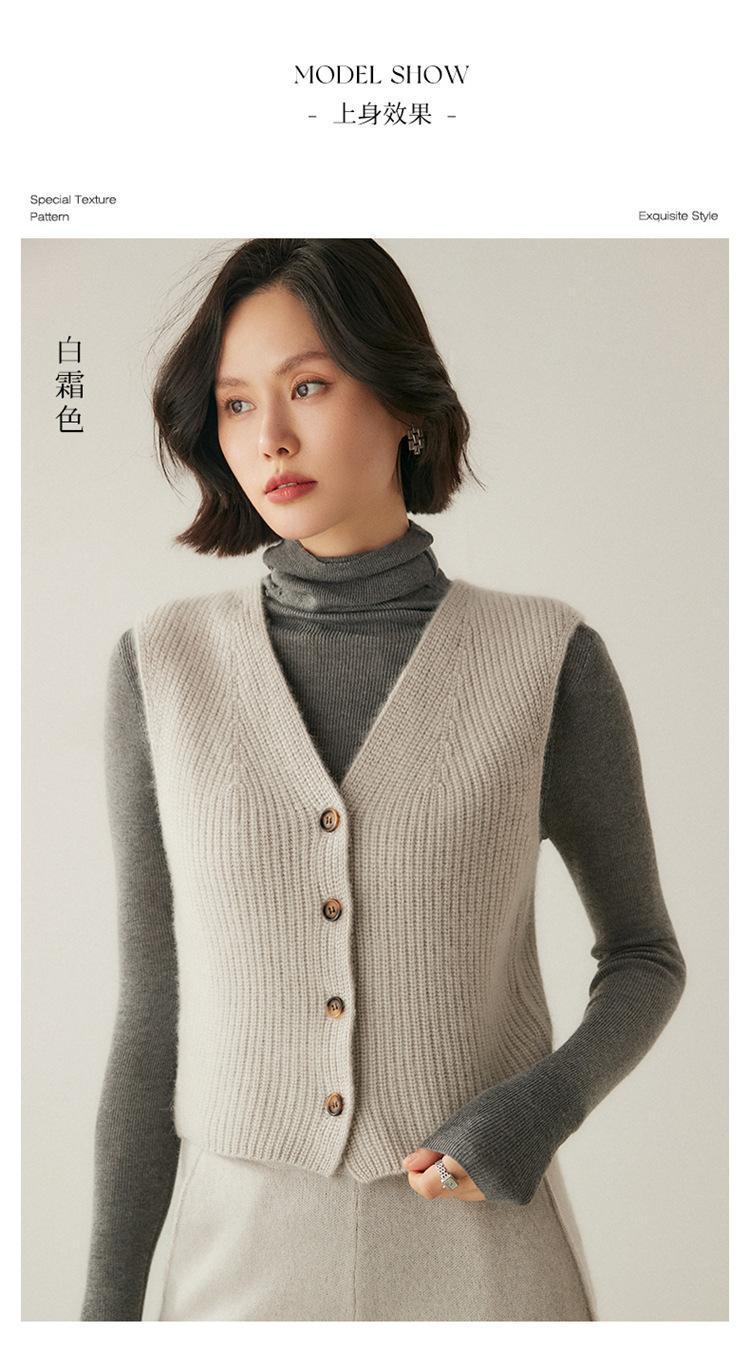 Chaleco corto de cachemira para mujer, otoño e invierno 2024, cárdigan de punto de cachemira, chaleco apilado, suéter sin mangas