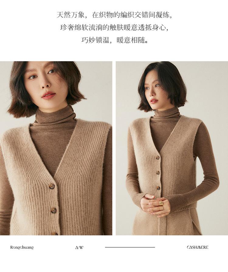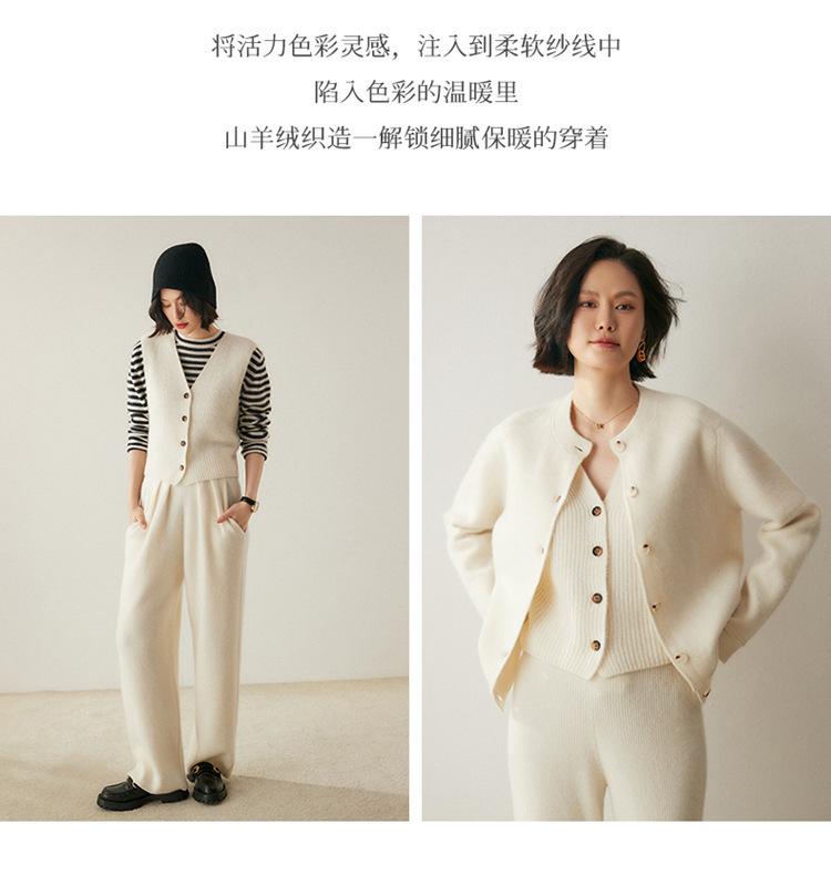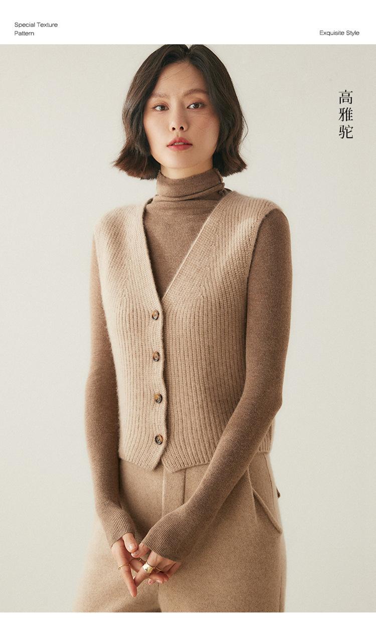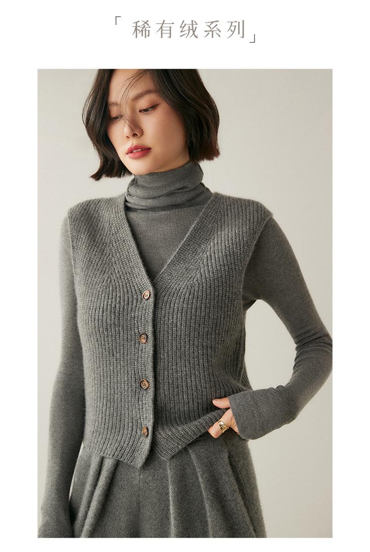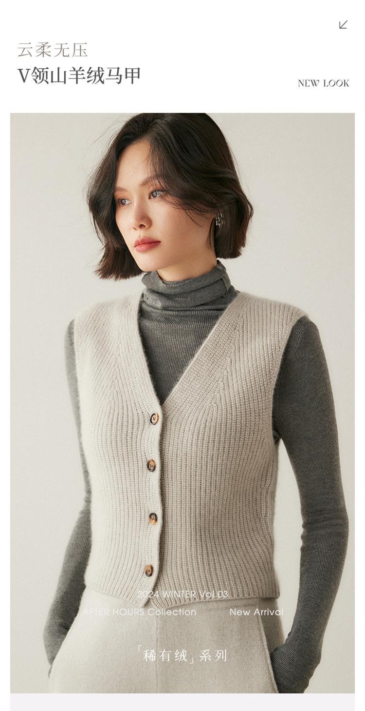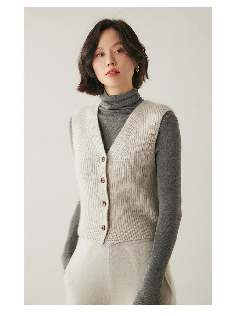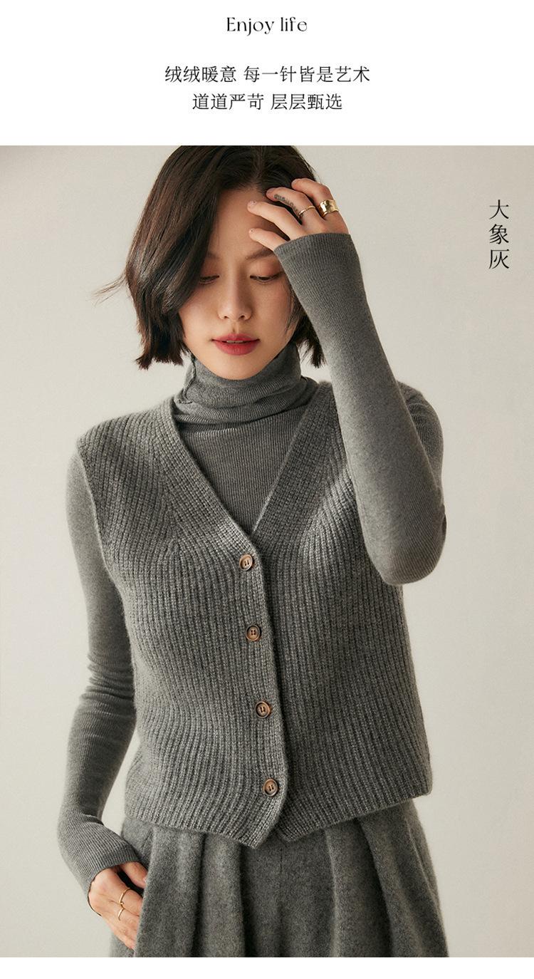 Chaleco corto de cachemira para mujer, otoño e invierno 2024, cárdigan de punto de cachemira, chaleco apilado, suéter sin mangas