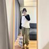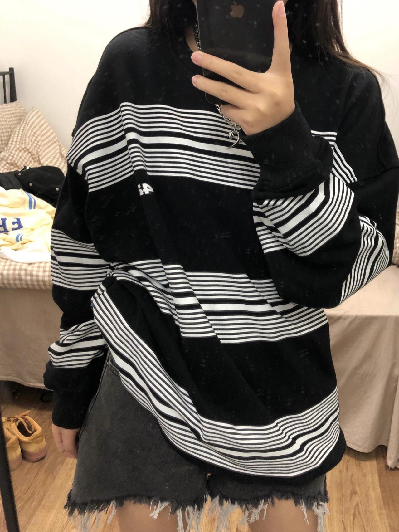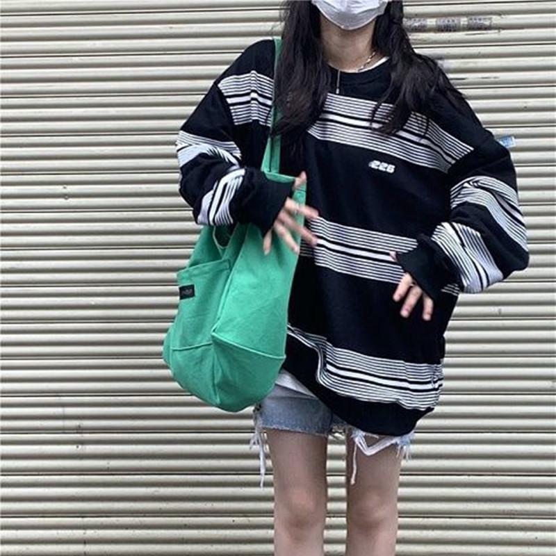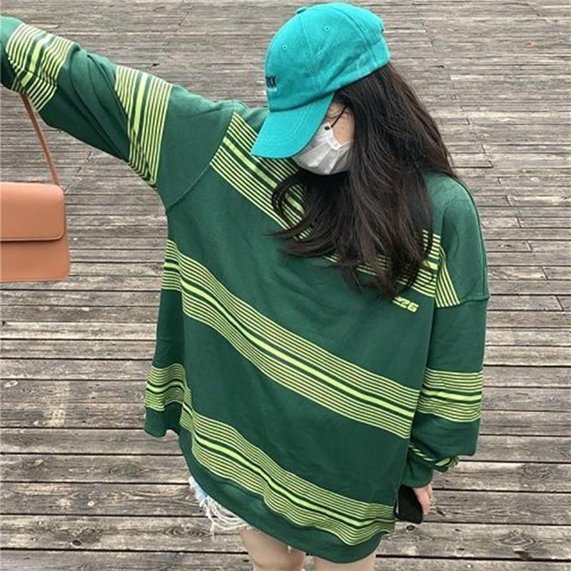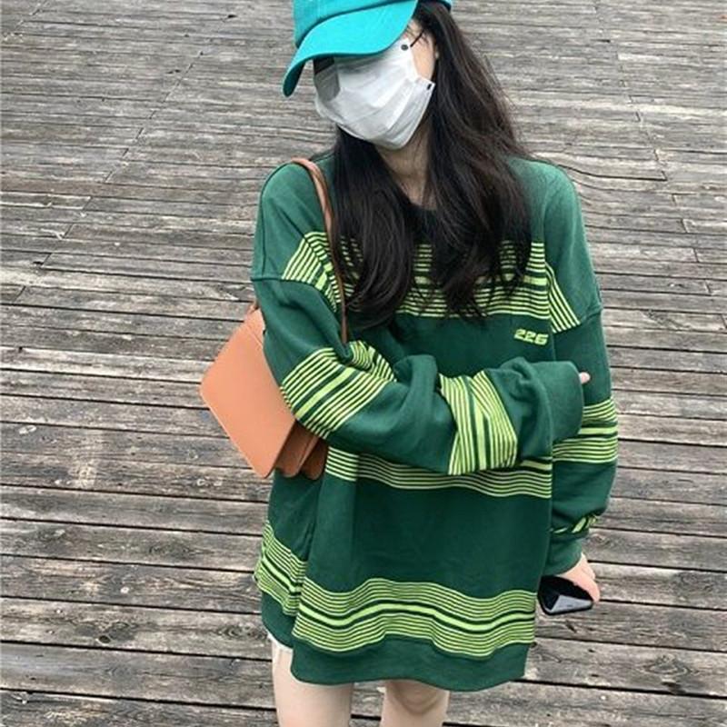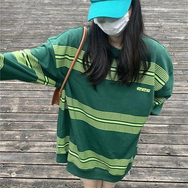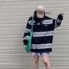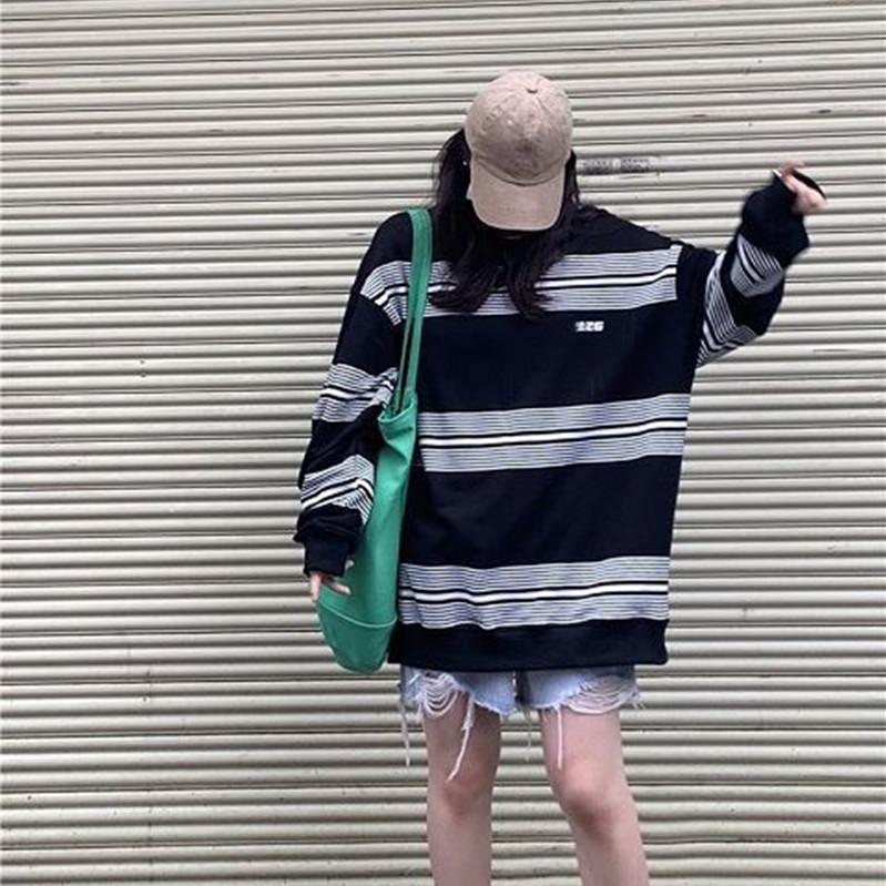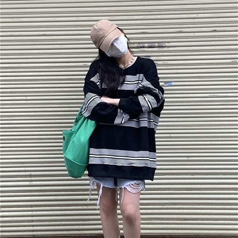 Suéter de rayas cruzadas para mujer en primavera y otoño, fino, holgado, estilo holgado, estilo holgazán, estilo High Street, abrigo americano de cuello redondo, tendencia