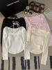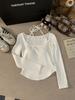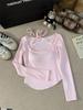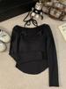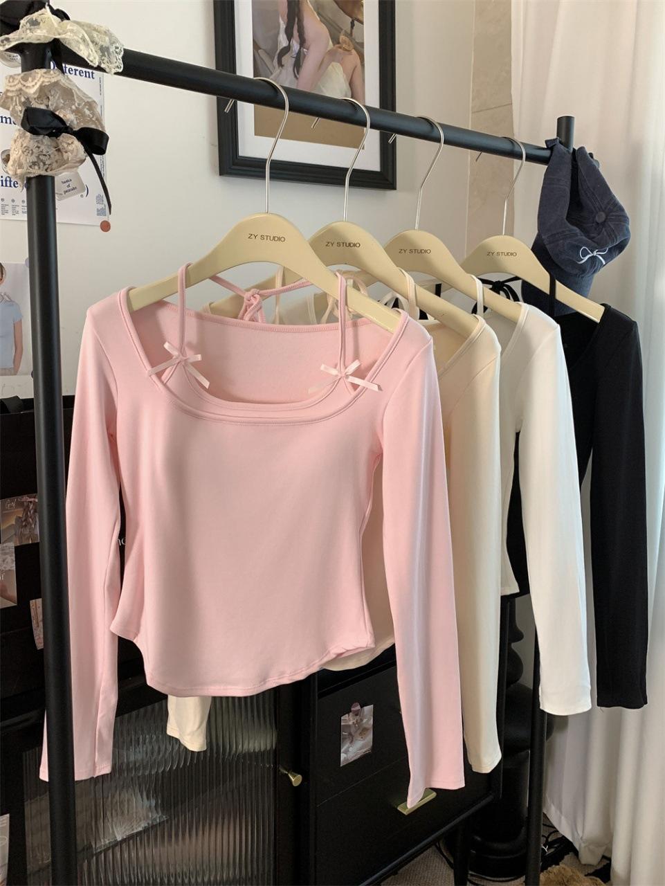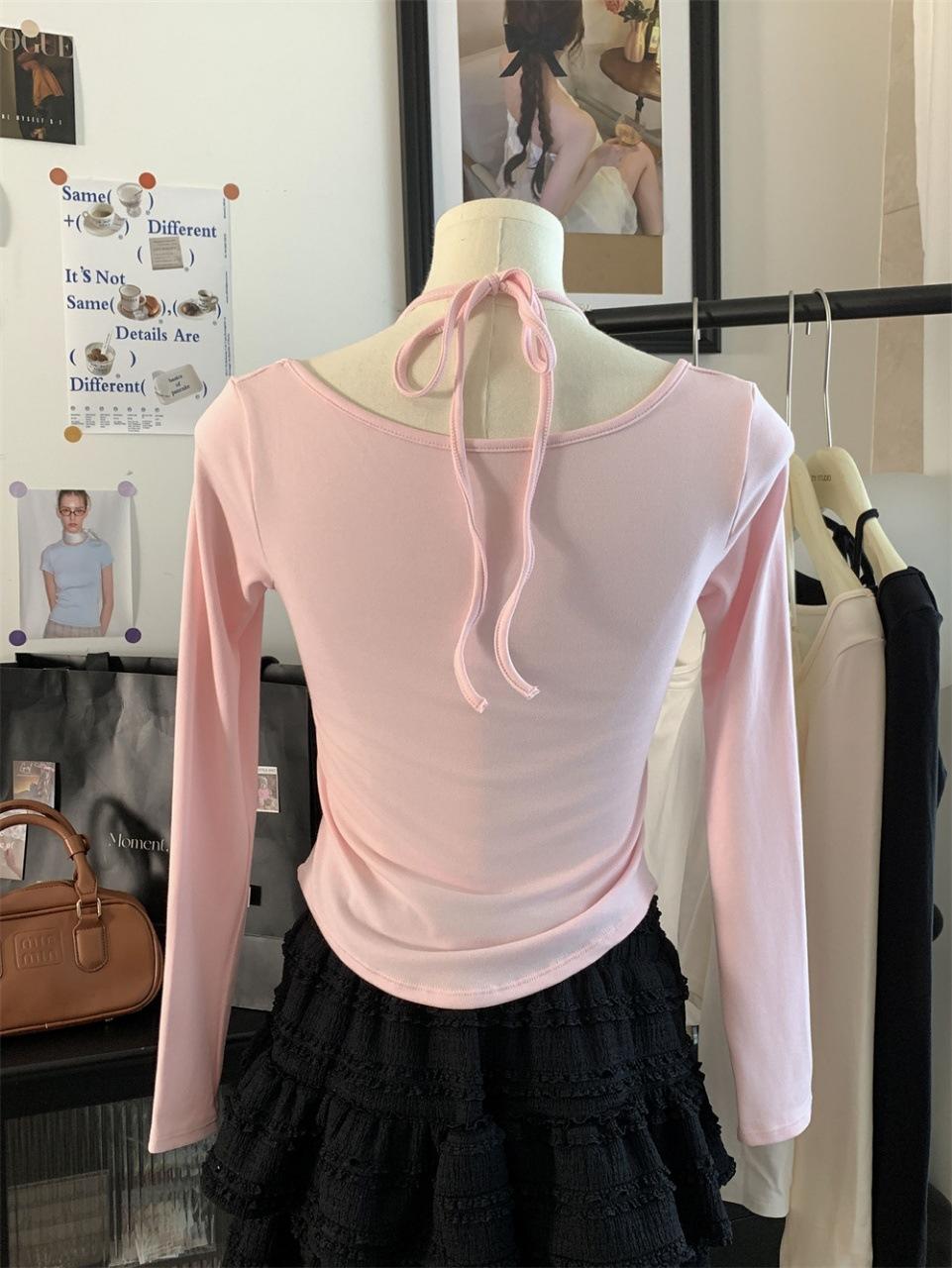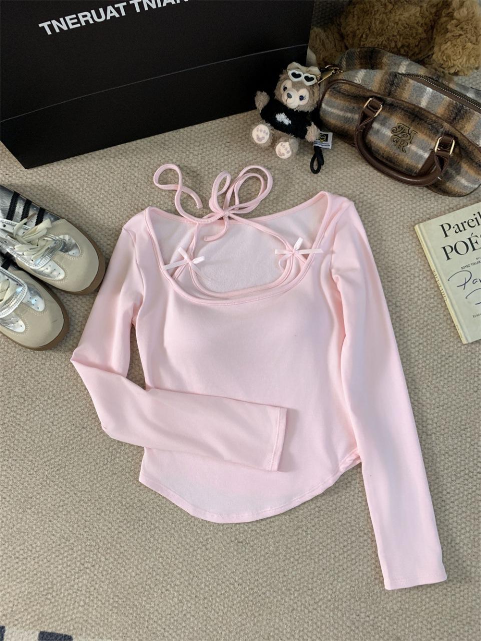 Camiseta de manga corta de otoño para mujer, nueva, de dos piezas, con cuello colgante y lazo en los hombros, sexy y ajustada.
