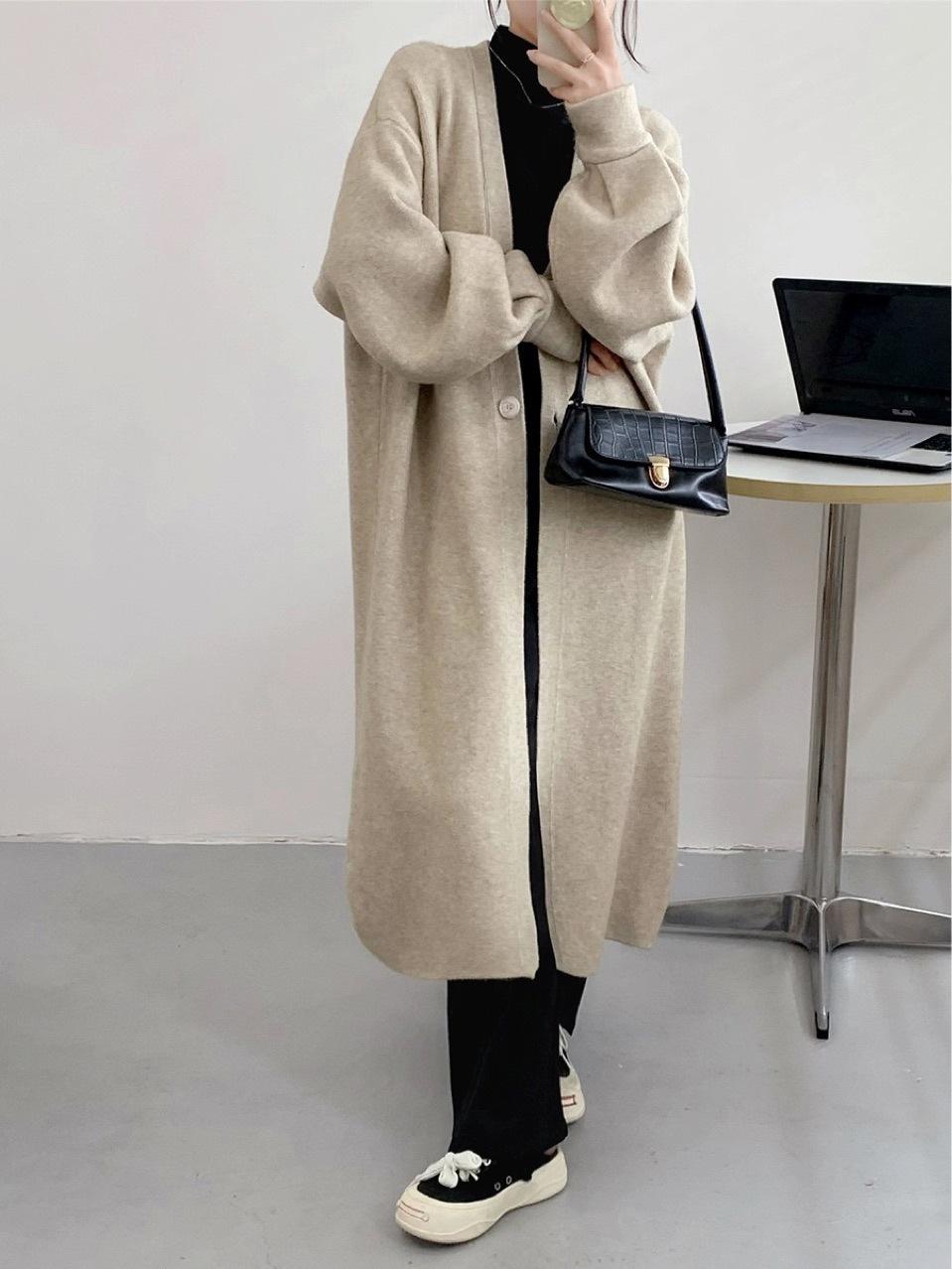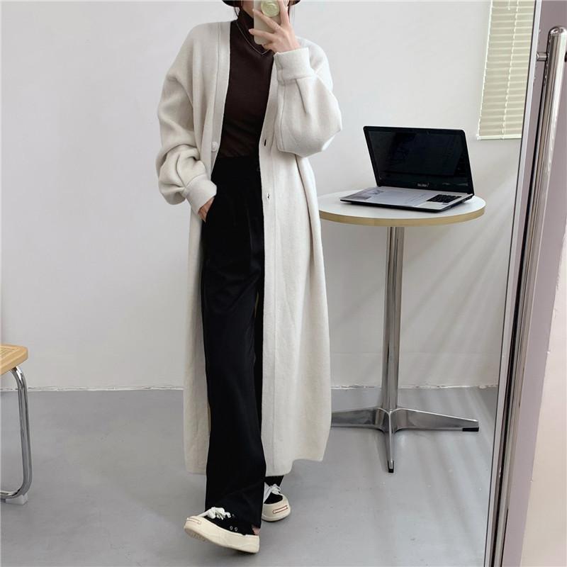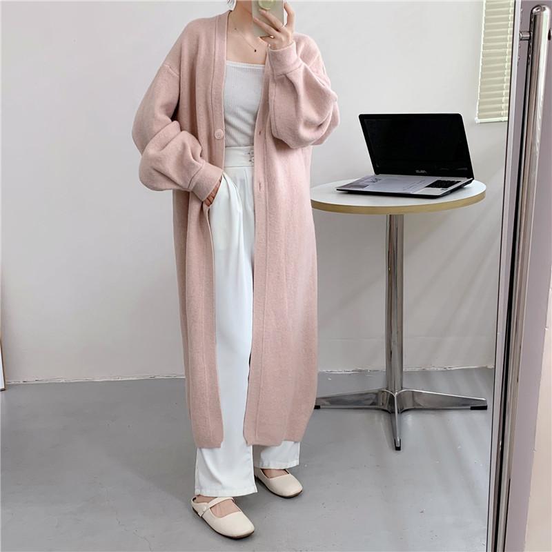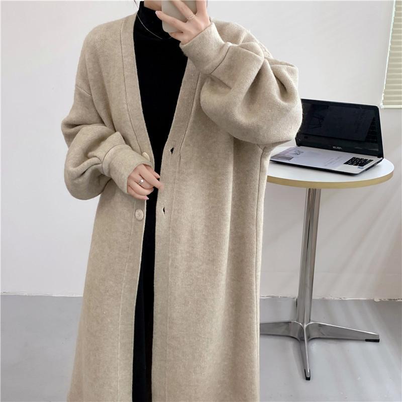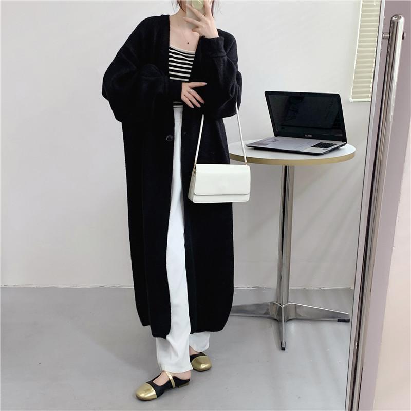 Nuevo cárdigan de punto de otoño e invierno, suéter largo para mujer, estilo holgado y perezoso, exportación transfronteriza, prenda exterior gruesa de talla grande.