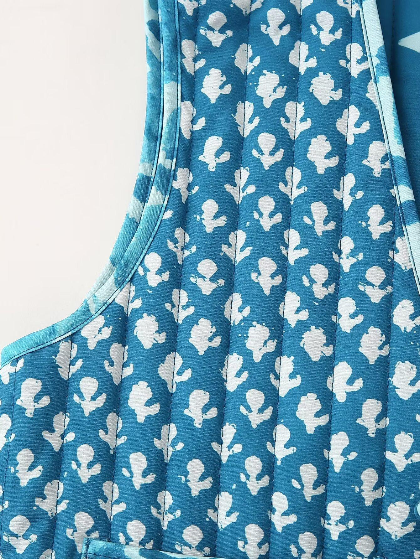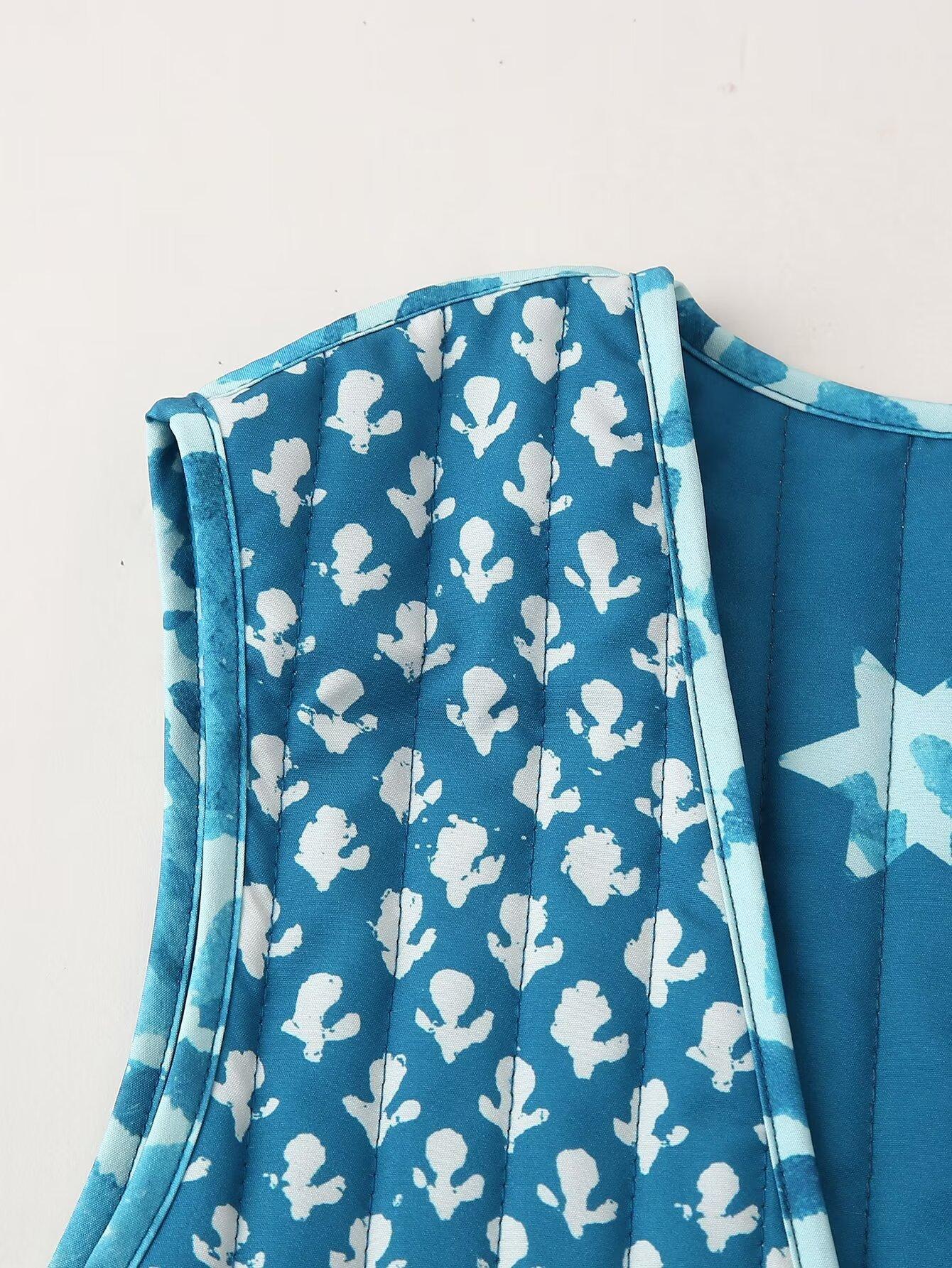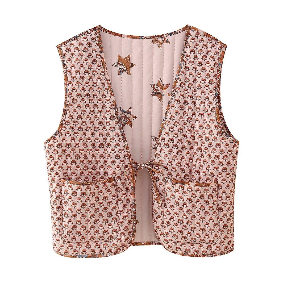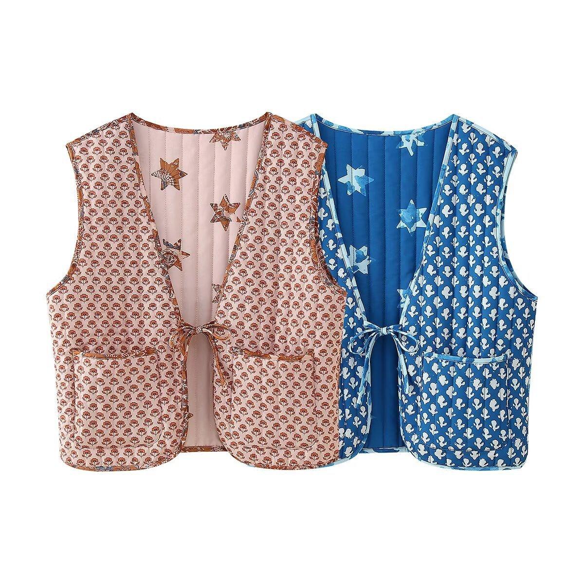 Chaleco de algodón de dos caras con estampado y cordones para mujer europea y americana de comercio exterior transfronterizo de Amazon, otoño e invierno de 2024