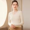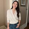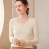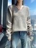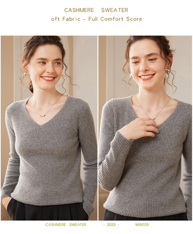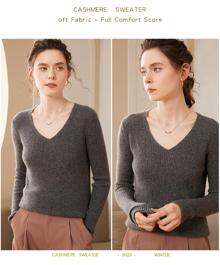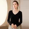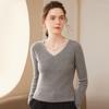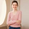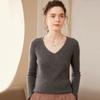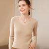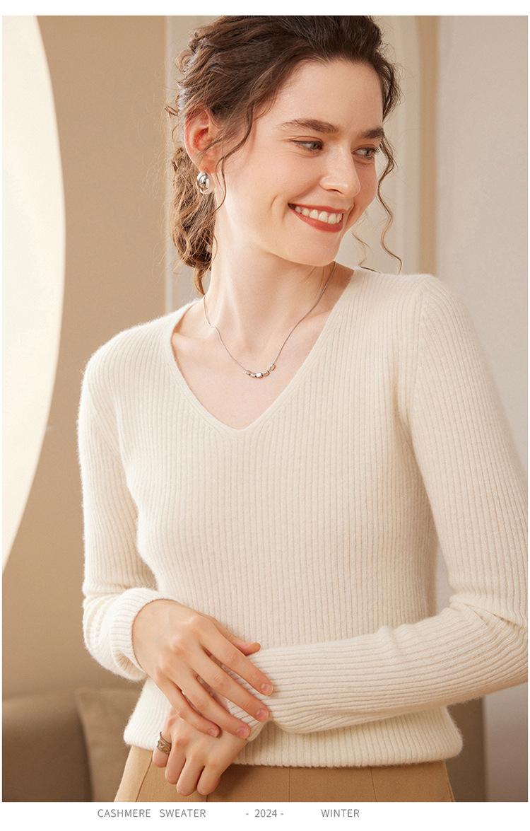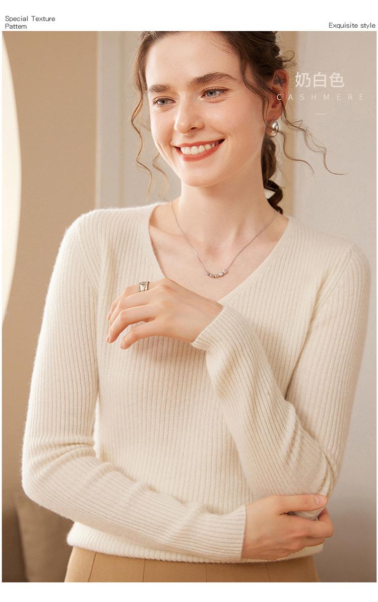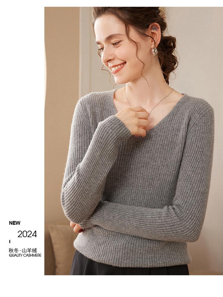 24 Otoño e Invierno Nueva Camisa de Punto de Cachemira de Base Entallada para Mujer de Manga Larga con Cuello en V de Color Sólido Suéter Cálido Cómodo