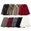 Ropa de Mujer Transfronteriza Estilo Europeo y Americano Otoño 2023 Nuevo Mezcla de Lana de Alpaca Manga Asimétrica Tejida Capa Abrigo