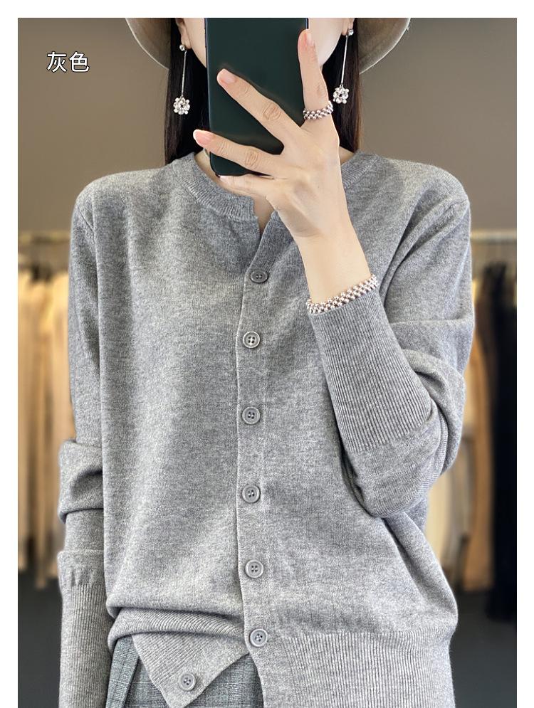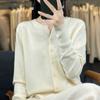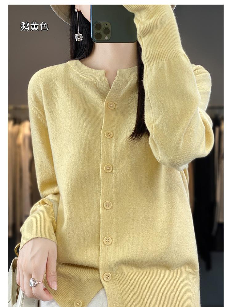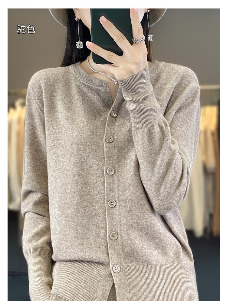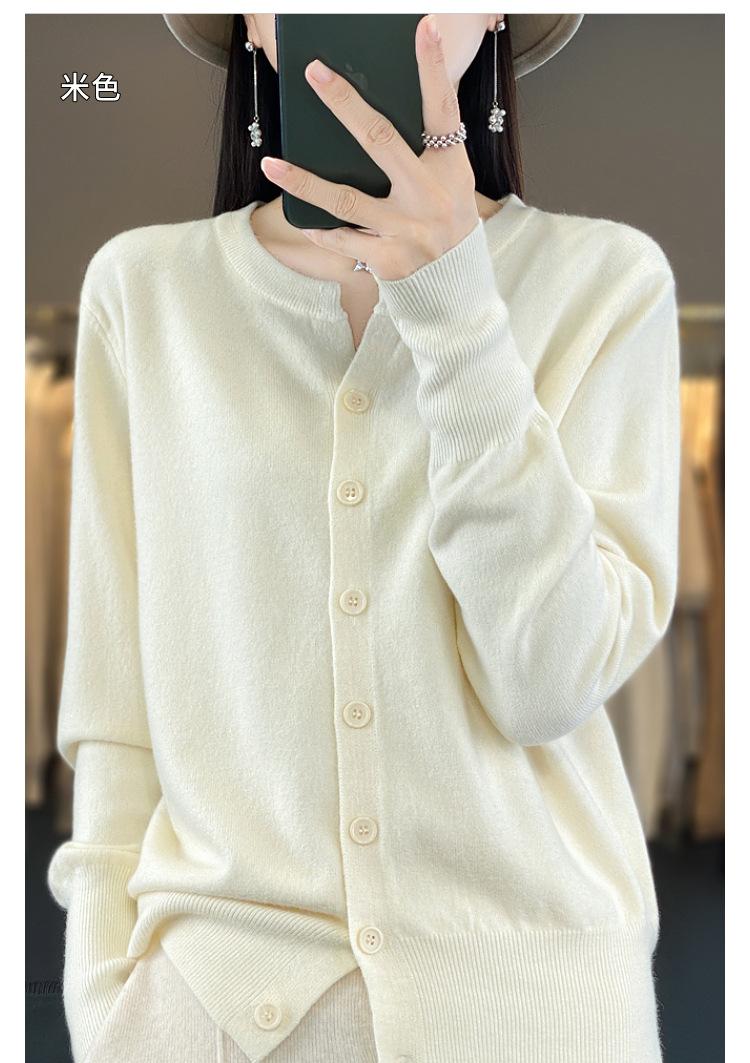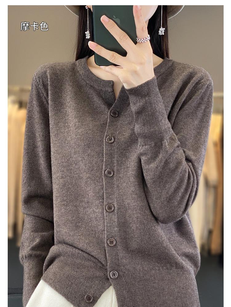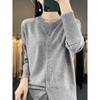 Chaqueta cárdigan de cuello redondo para mujer, suéter holgado de manga larga sin cachemira, color liso, combinable, para otoño e invierno.