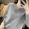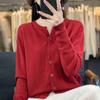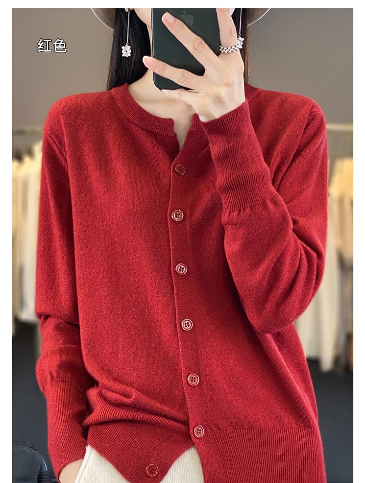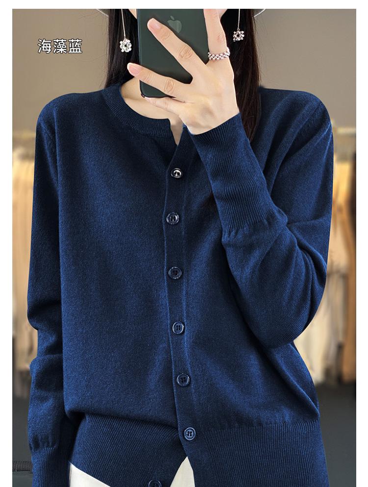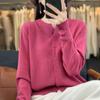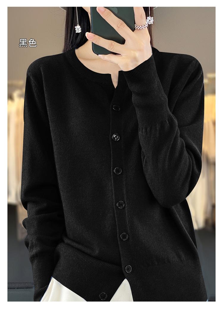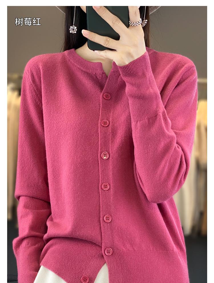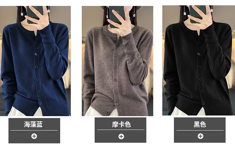 Chaqueta cárdigan de cuello redondo para mujer, suéter holgado de manga larga sin cachemira, color liso, combinable, para otoño e invierno.