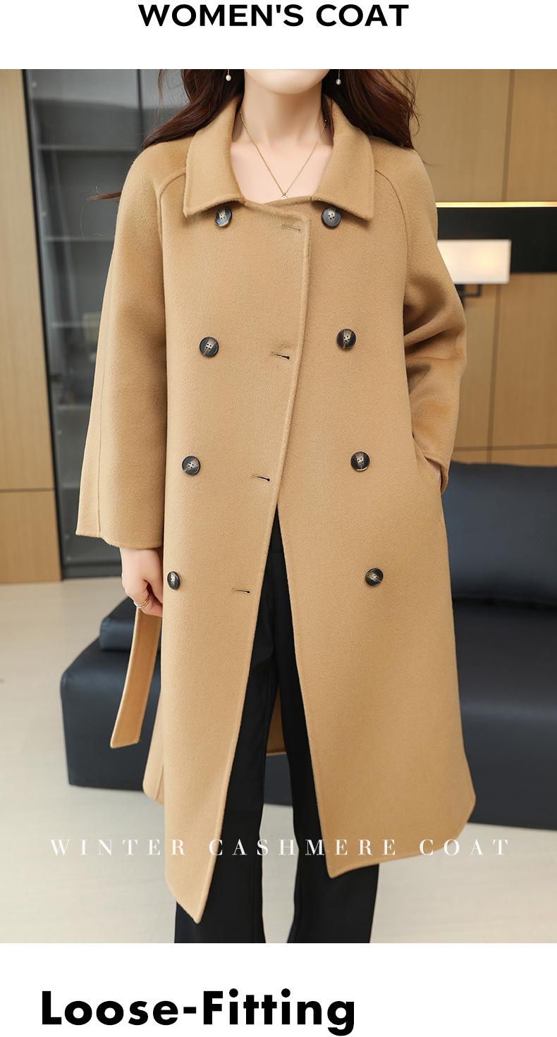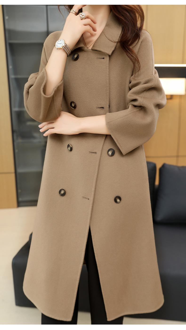 Abrigo de Lana de Doble Vista Nuevo de Otoño e Invierno para Mujer, Moda, Largo, de Doble Botonadura, Holgado, Moderno, Extranjero, Elegante, Abrigo de Lana