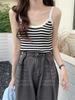 Chaleco exterior de punto de seda helada a rayas de color contrastante, con tirantes pequeños, para mujer, de verano, con base interior, ajustado, corto, sin mangas, estilo Spice Girl