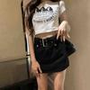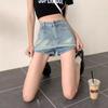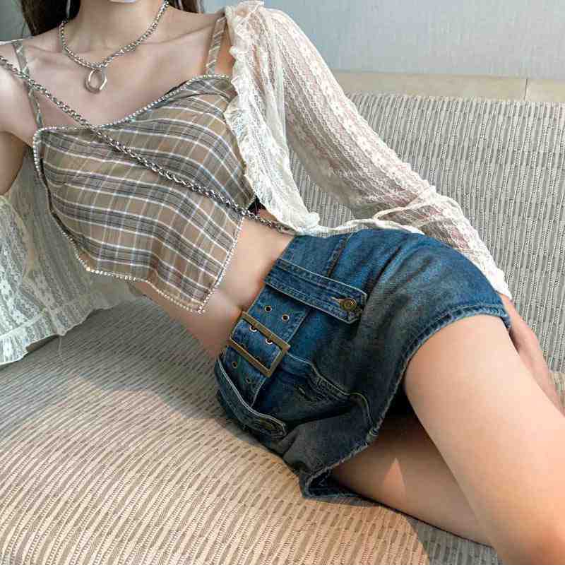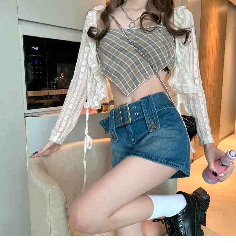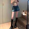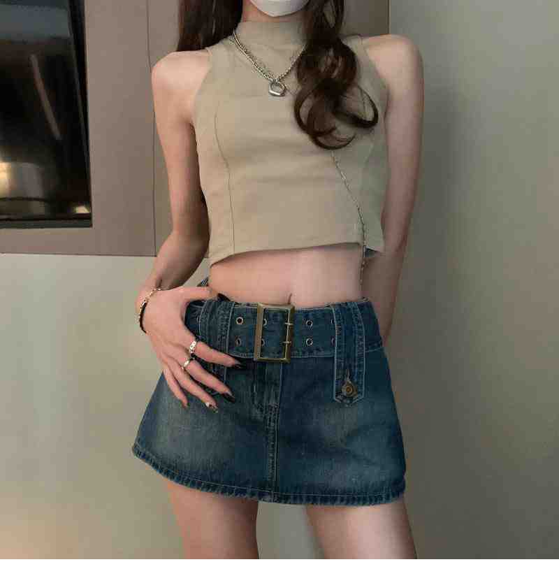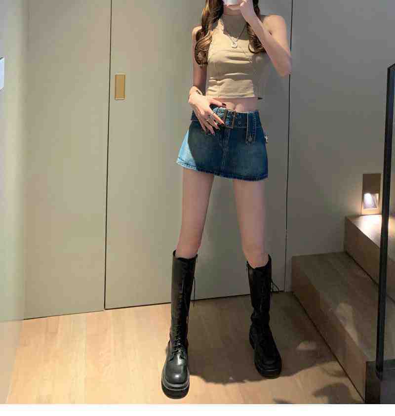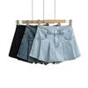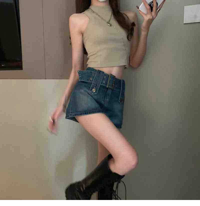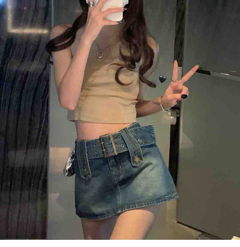 Falda de Mezclilla Azul Vintage para Mujer Primavera y Otoño Caliente Sexy Falda de Cadera Pequeña Cintura Alta Línea A Pantalones Cortos