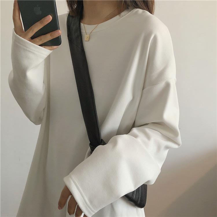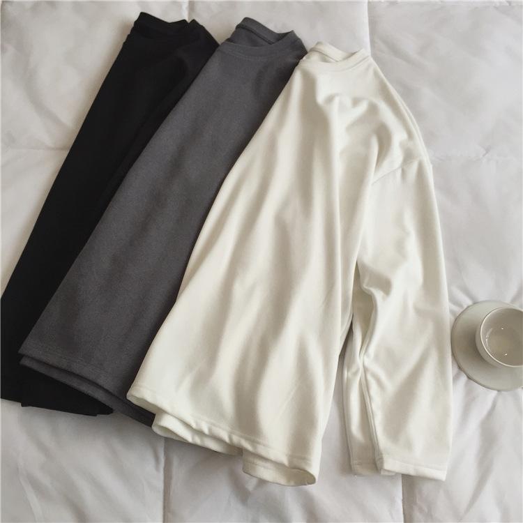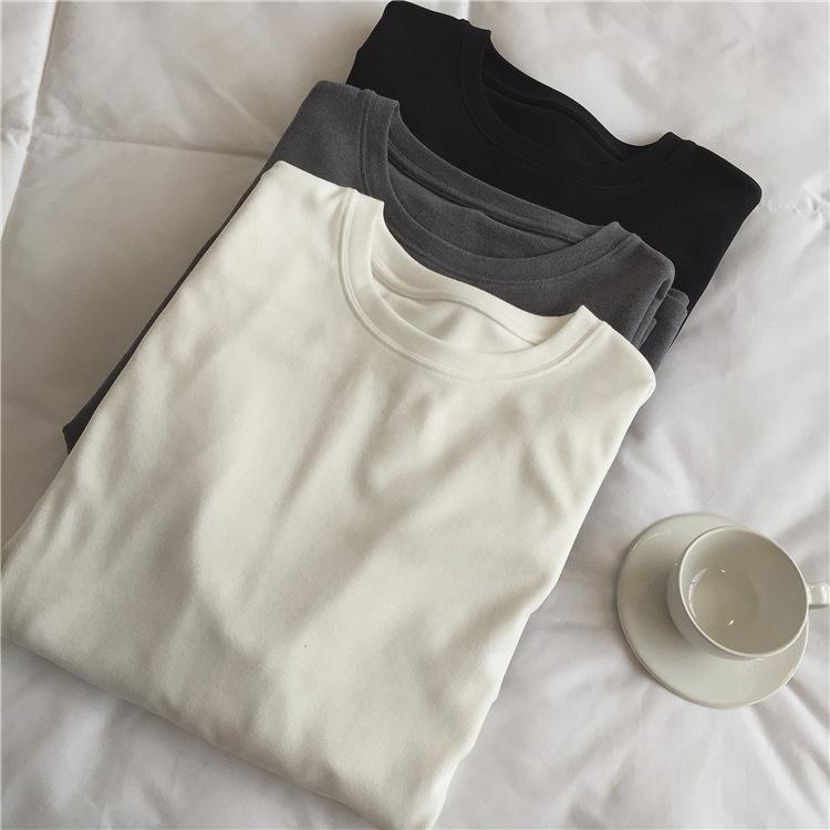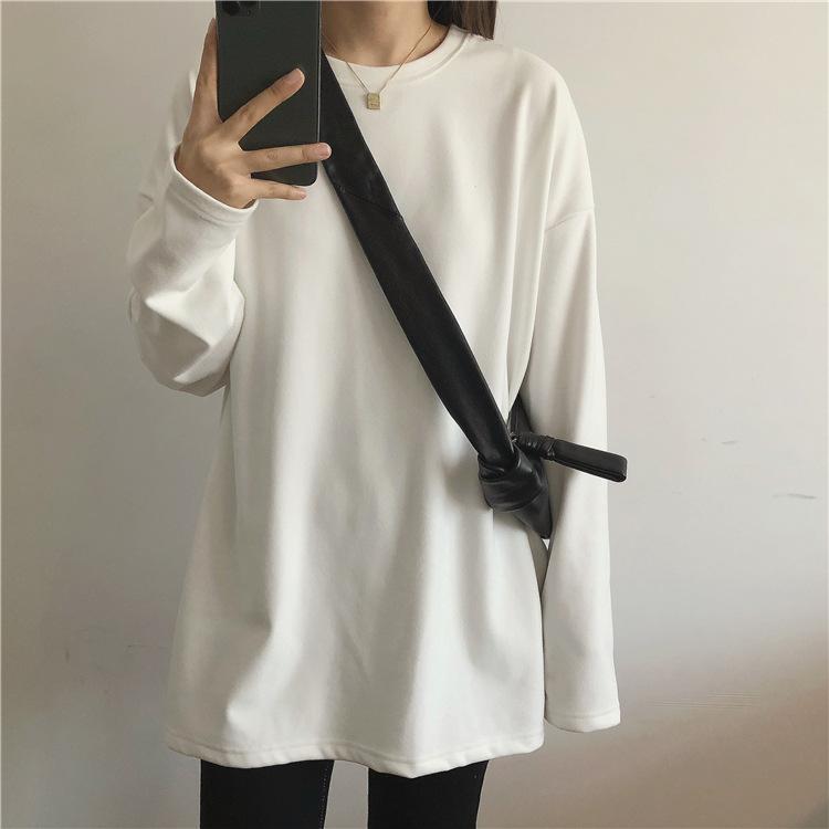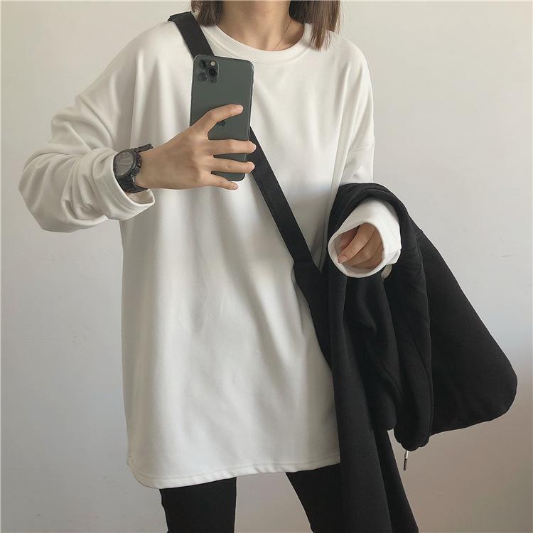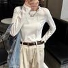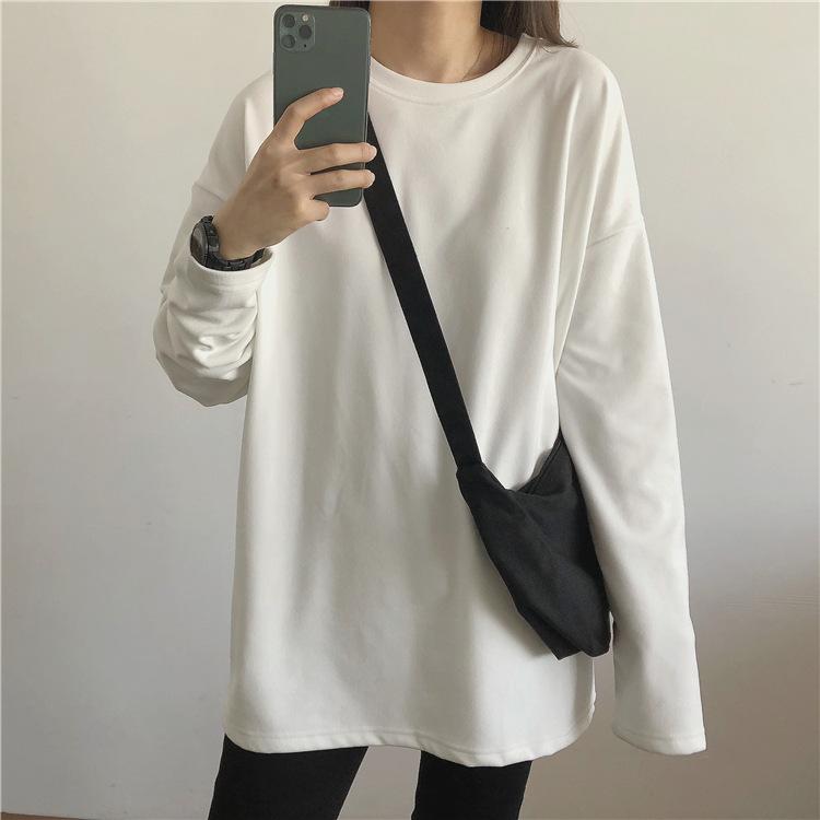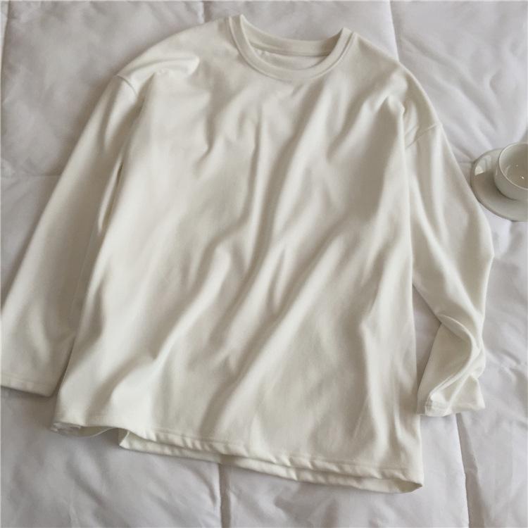 Camiseta de manga larga blanca de terciopelo de doble cara para mujer, otoño e invierno 2024, nueva camisa holgada de alta gama con base interior apilada
