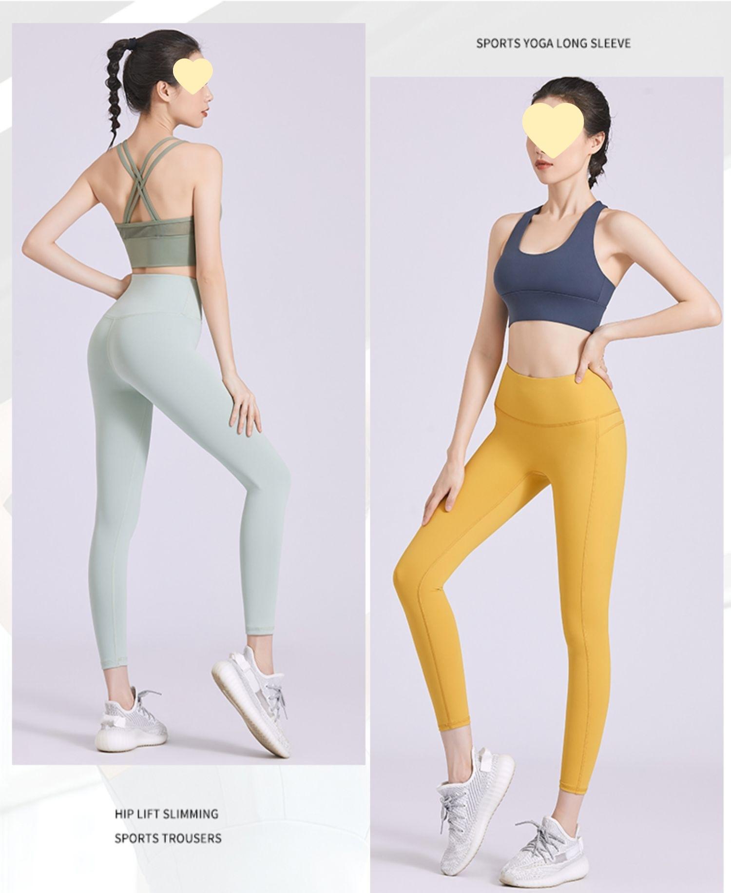 Pantalones de yoga para mujer, cintura alta, cadera alta, elásticos, entrenamiento profesional, correr, ajustados, ropa de fitness desnuda.