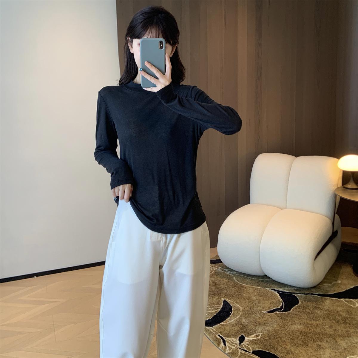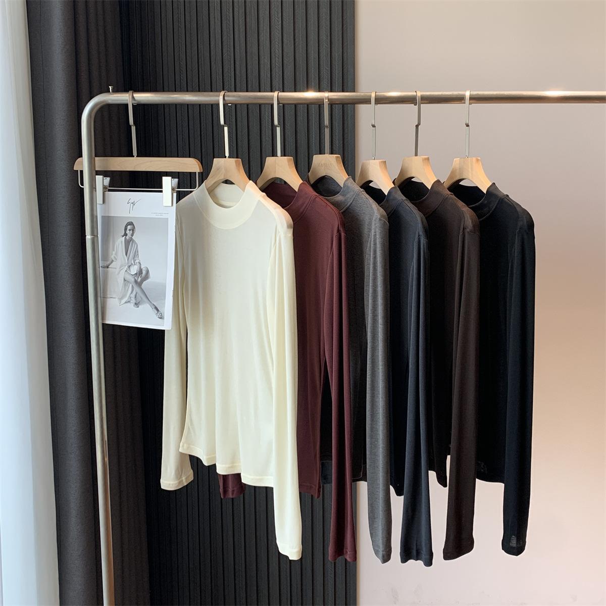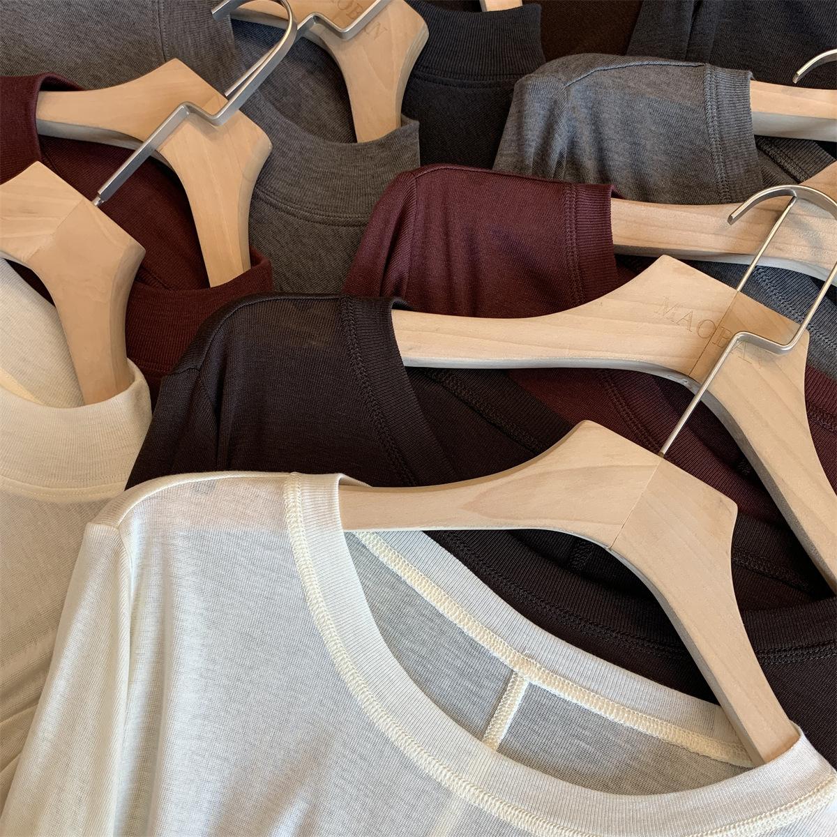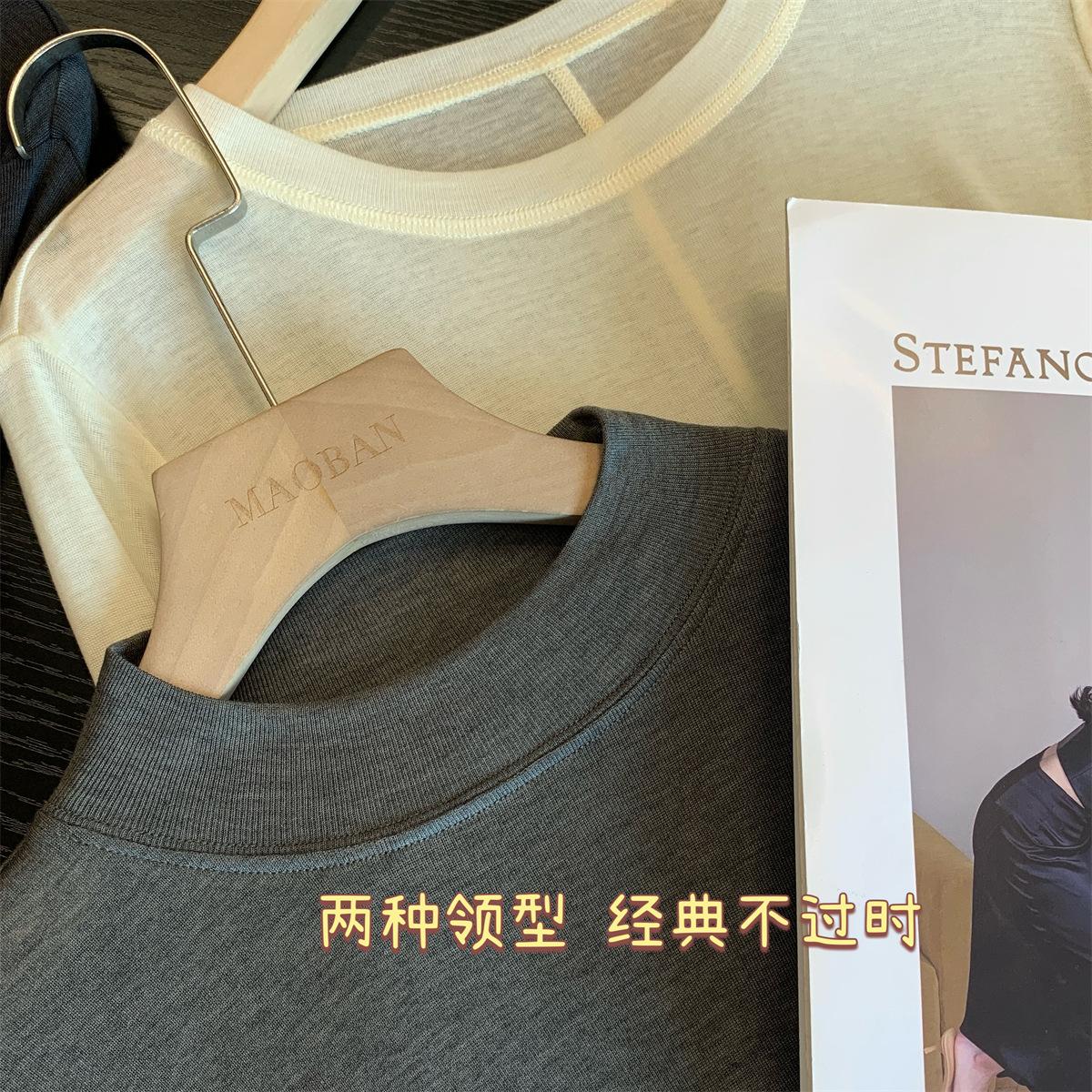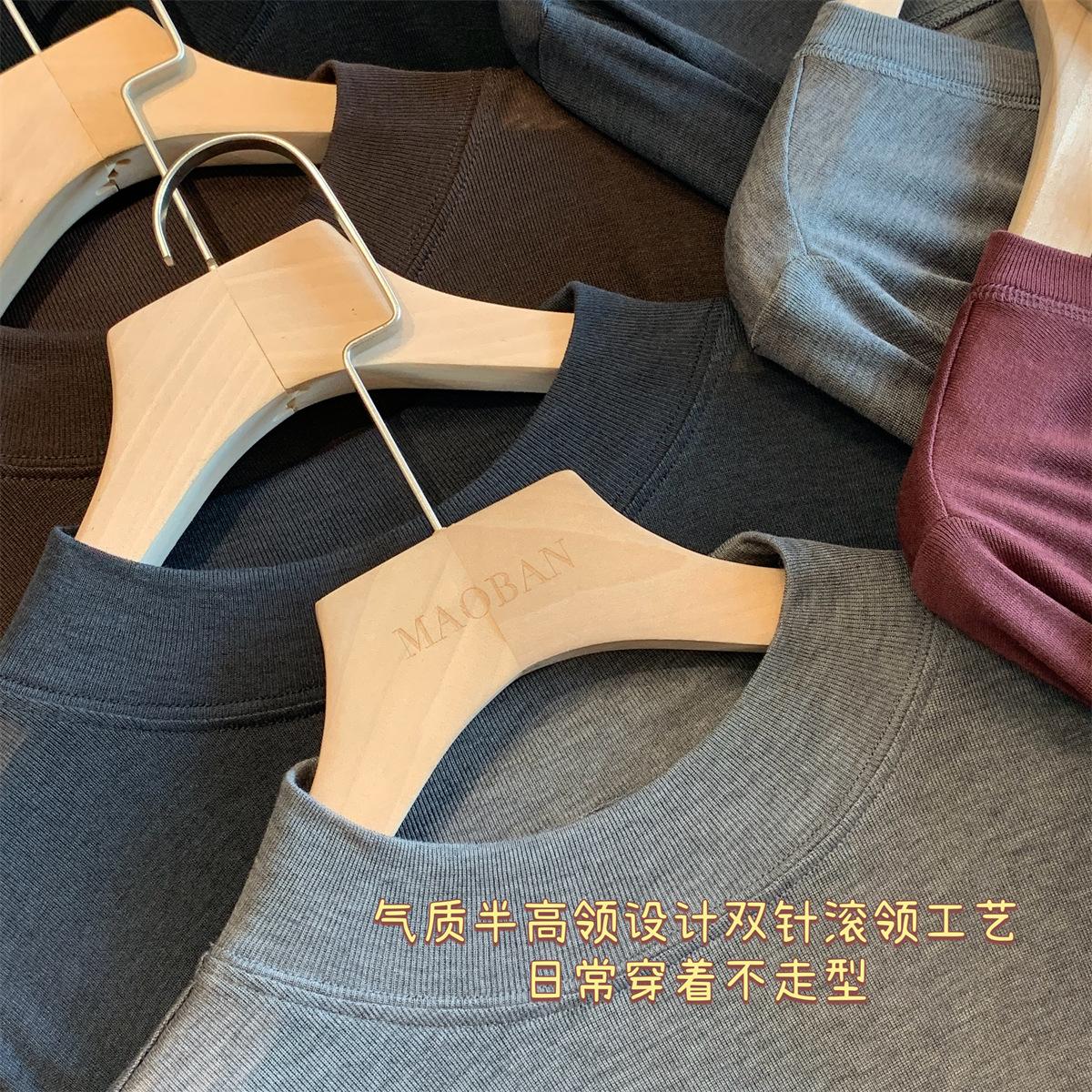 Diseño temperamental de cuello medio alto con tecnología de cuello enrollado de doble aguja, que no perderá la forma al usarlo en la vida diaria.